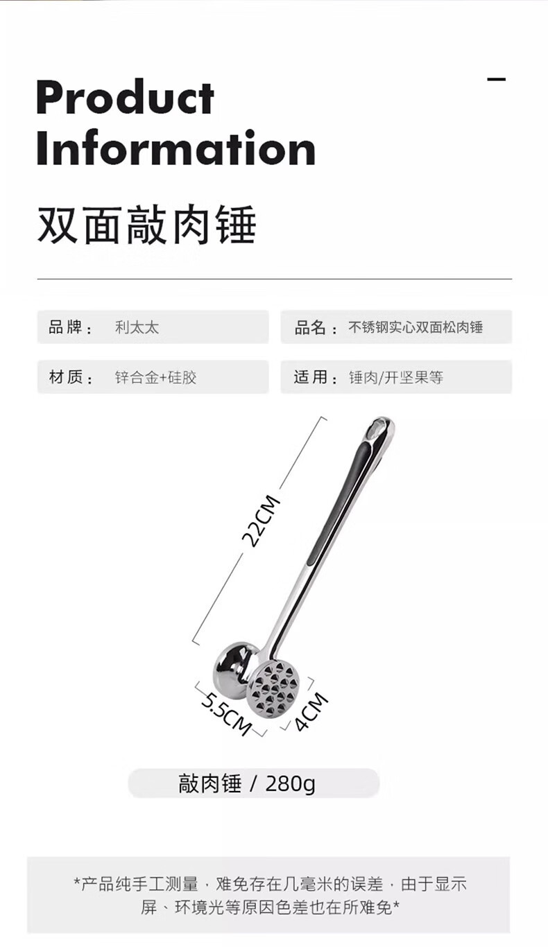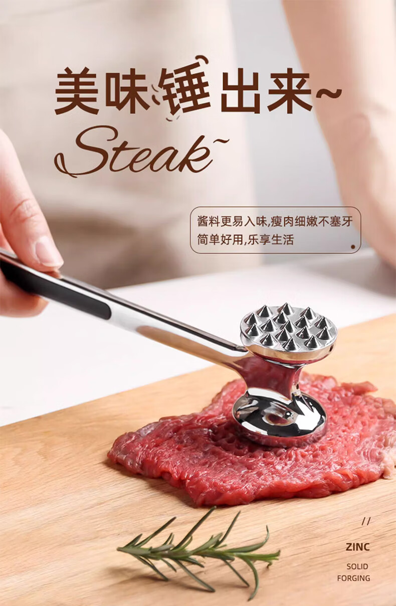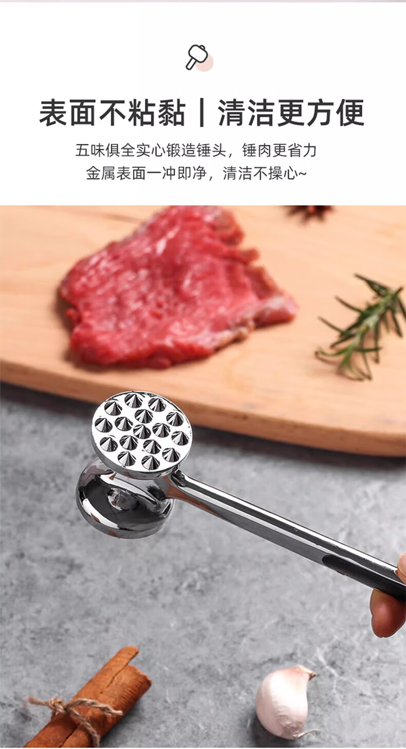 Mrs. Lee's double-sided meat hammer kitchen stainless steel thickened solid meat hammer beef and pork beater loose meat tenderizer hammer tool double-sided meat hammer easy to taste
