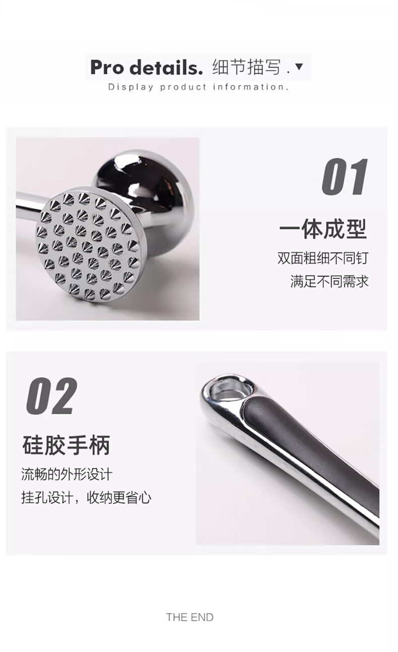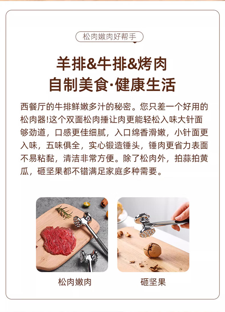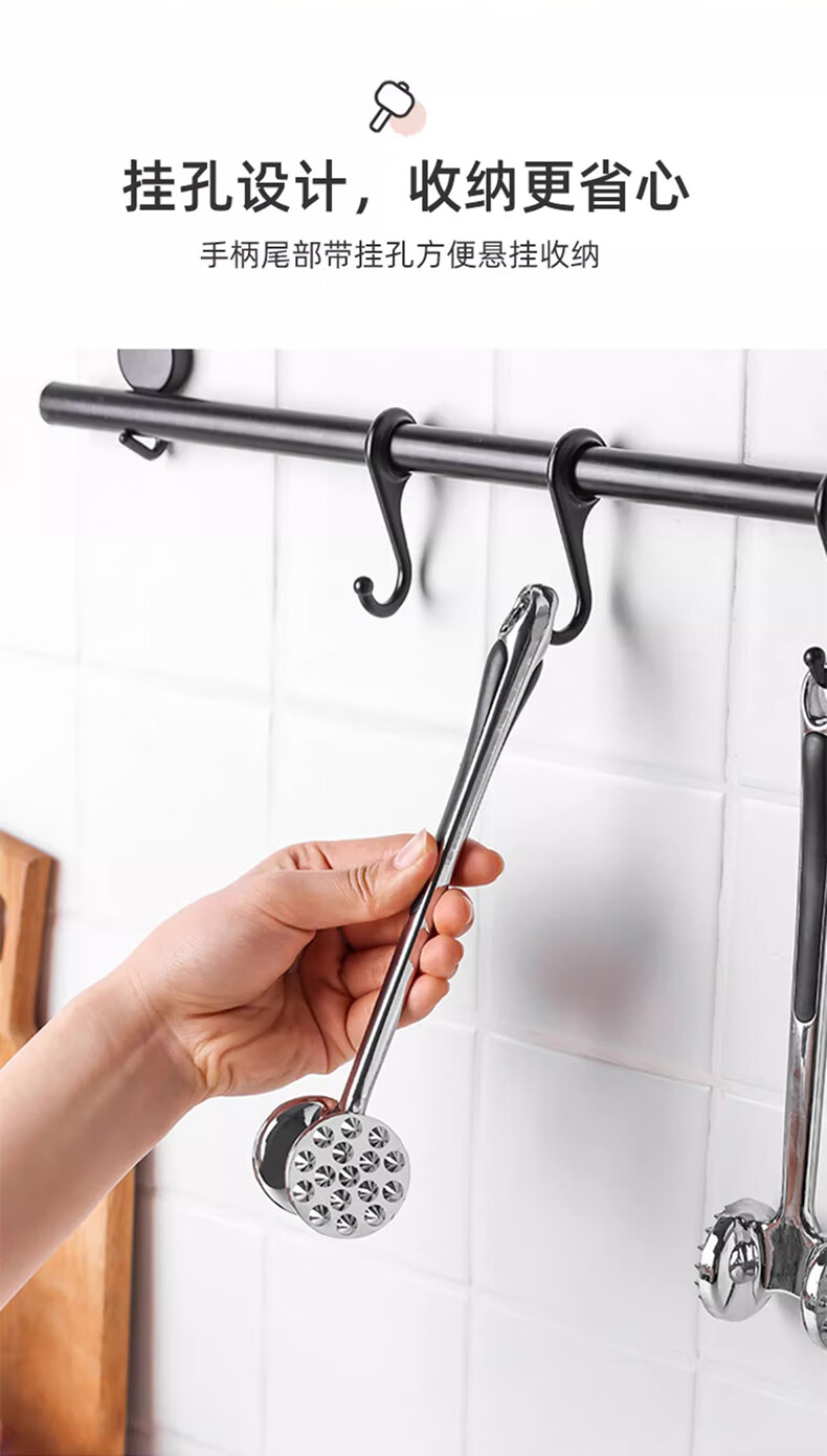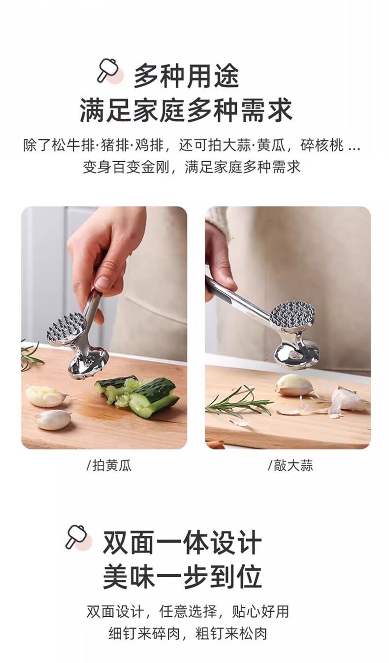 Mrs. Lee's double-sided meat hammer kitchen stainless steel thickened solid meat hammer beef and pork beater loose meat tenderizer hammer tool double-sided meat hammer easy to taste