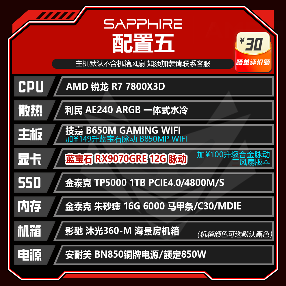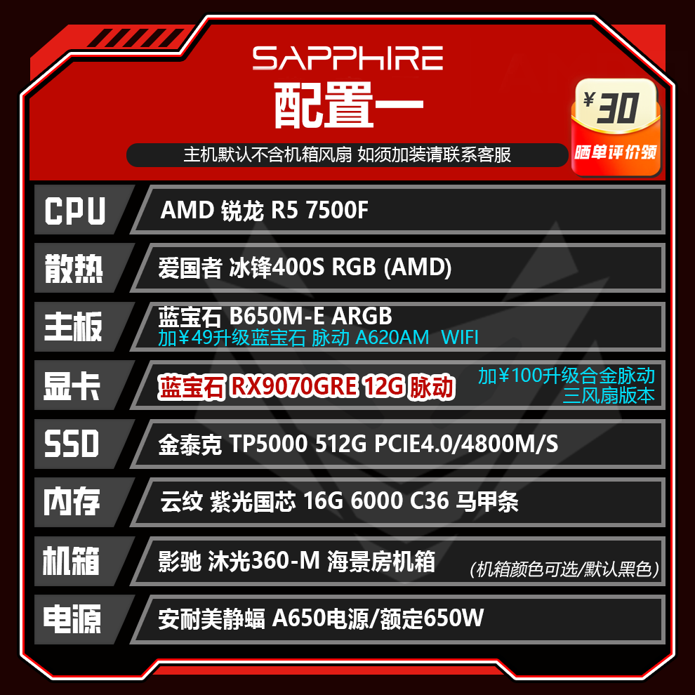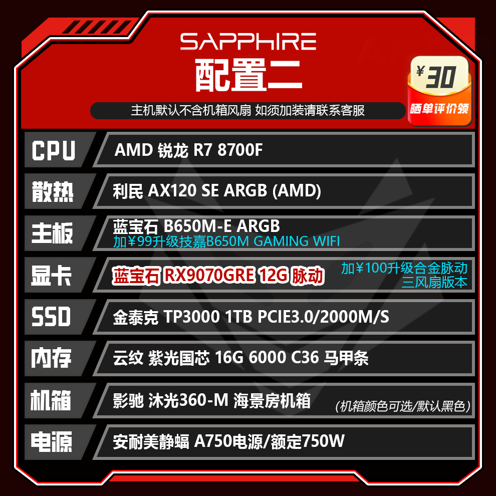 Sapphire RX9070GRE+AMD 9600X/9700X/7800X3D Delta Intrepid Compact 3A game e-sports graphics card sea view room host DIY computer desktop assembly machine configuration four 9700X+9070GRE 12G