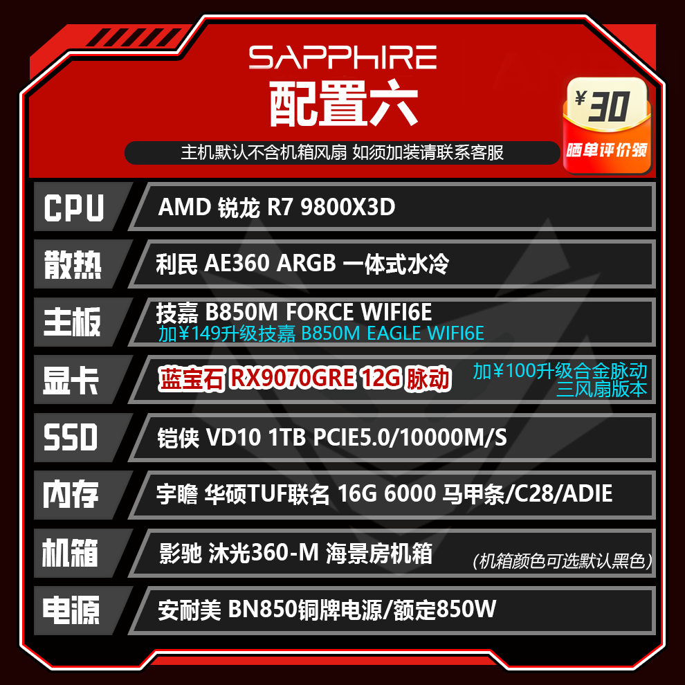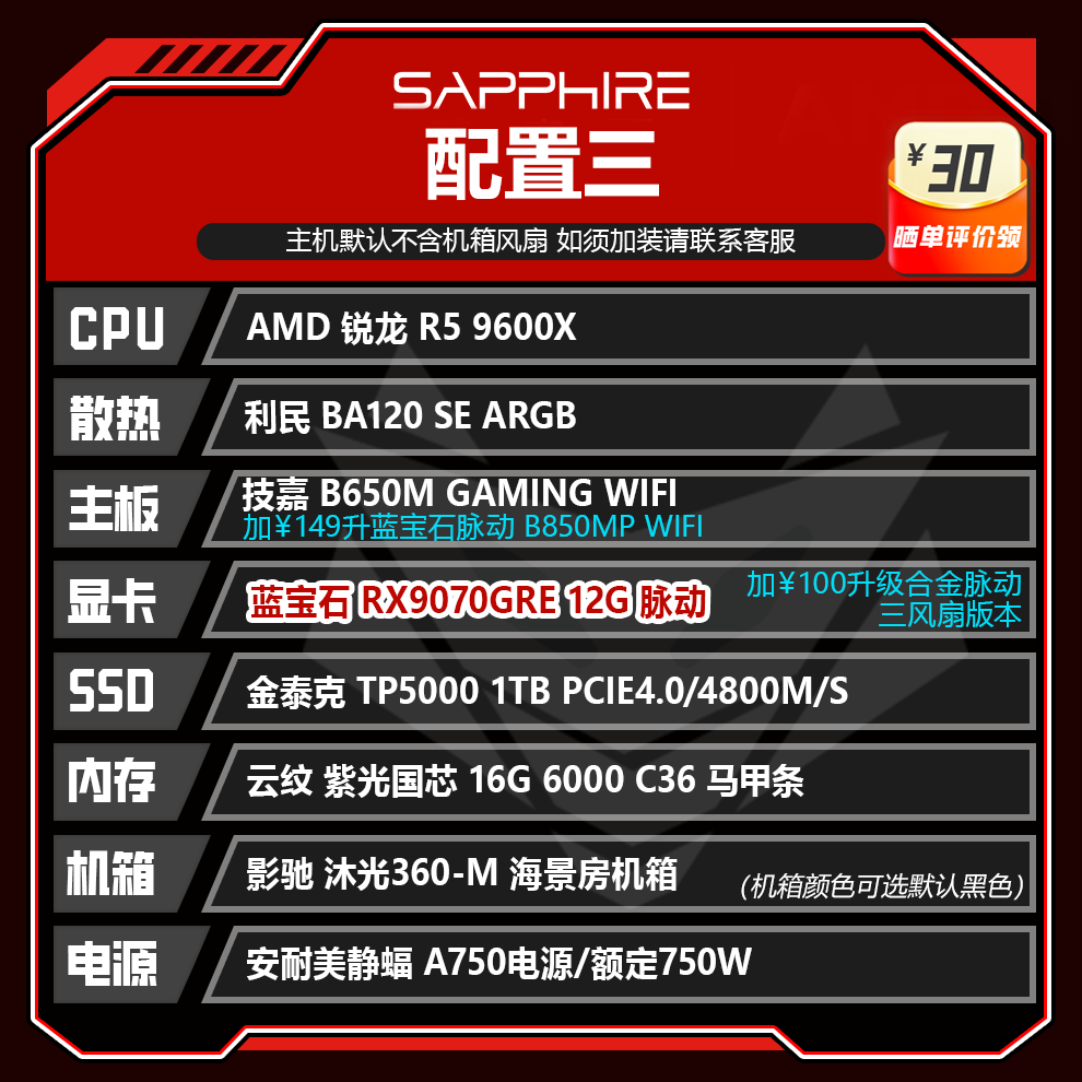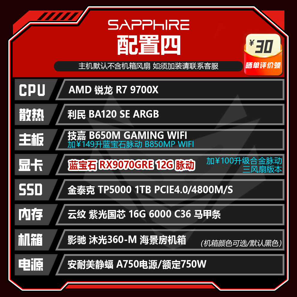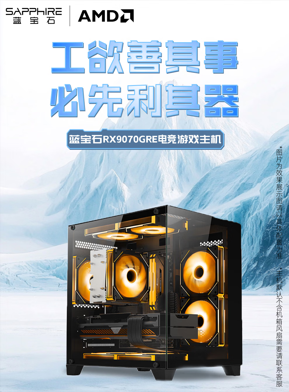 Sapphire RX9070GRE+AMD 9600X/9700X/7800X3D Delta Intrepid Compact 3A game e-sports graphics card sea view room host DIY computer desktop assembly machine configuration four 9700X+9070GRE 12G