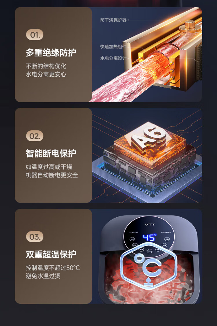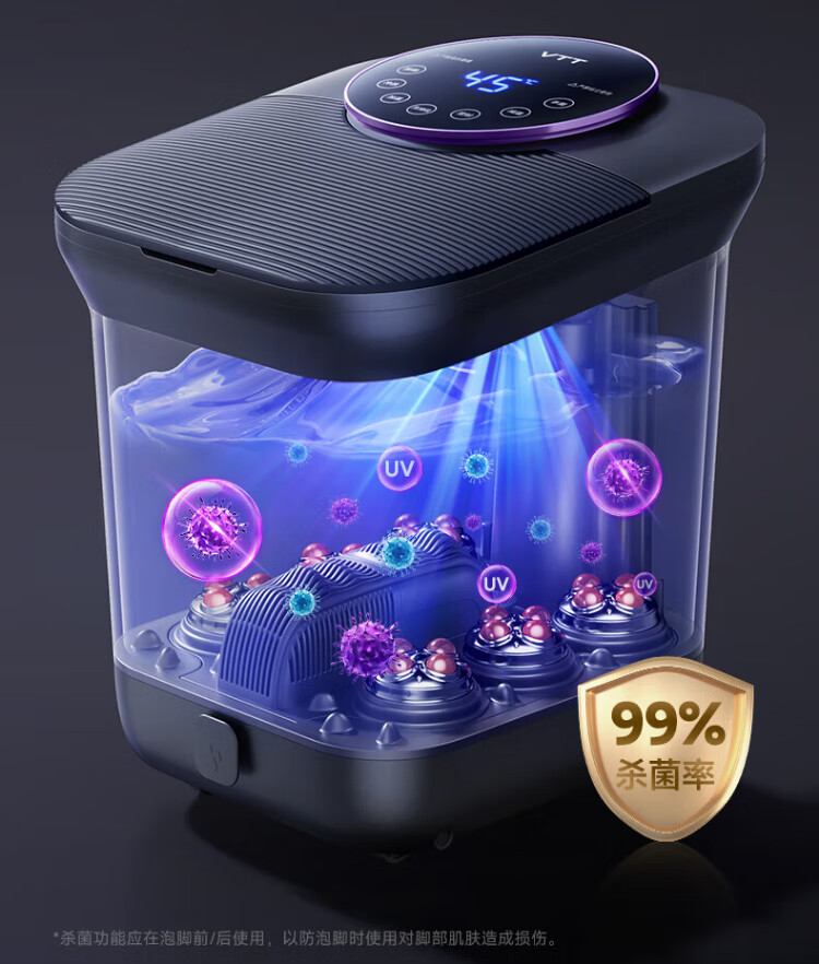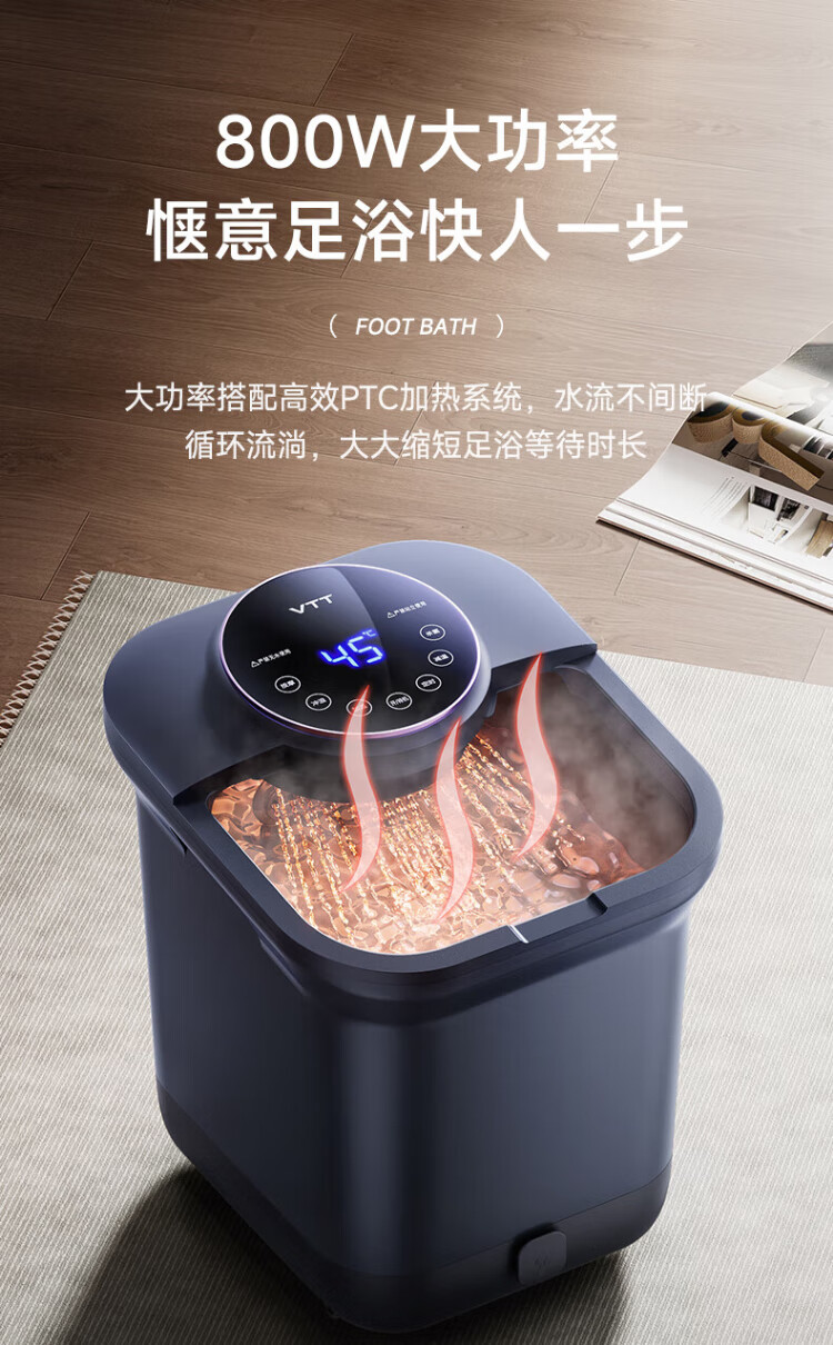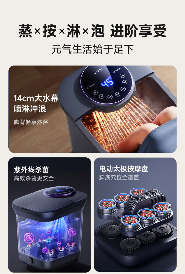 VTT Germany foot bath fully automatic heating massager electric foot bath high depth foot bath household practical foot bath birthday gift for the elderly, parents, parents, star-level sterilization deluxe version double-head water curtain spray + double speed heating + anti-leakage VTT official recommendation model for the whole family to enjoy warmth