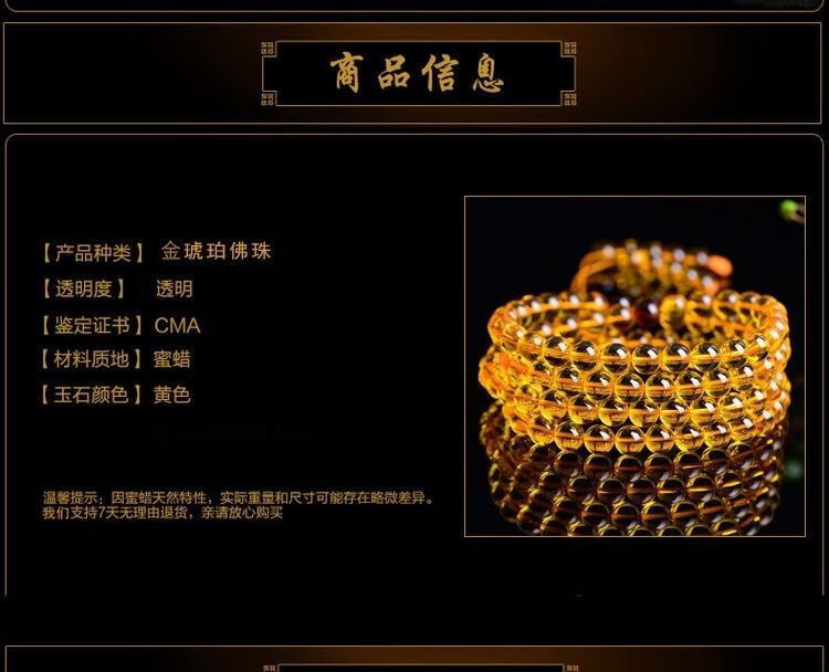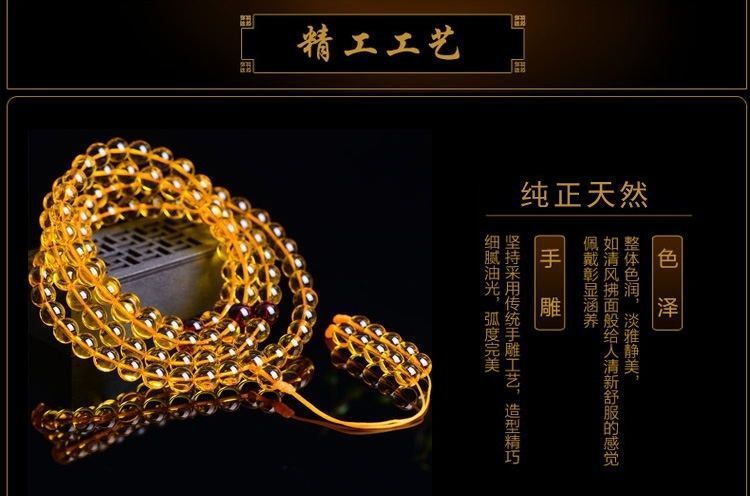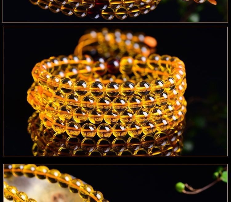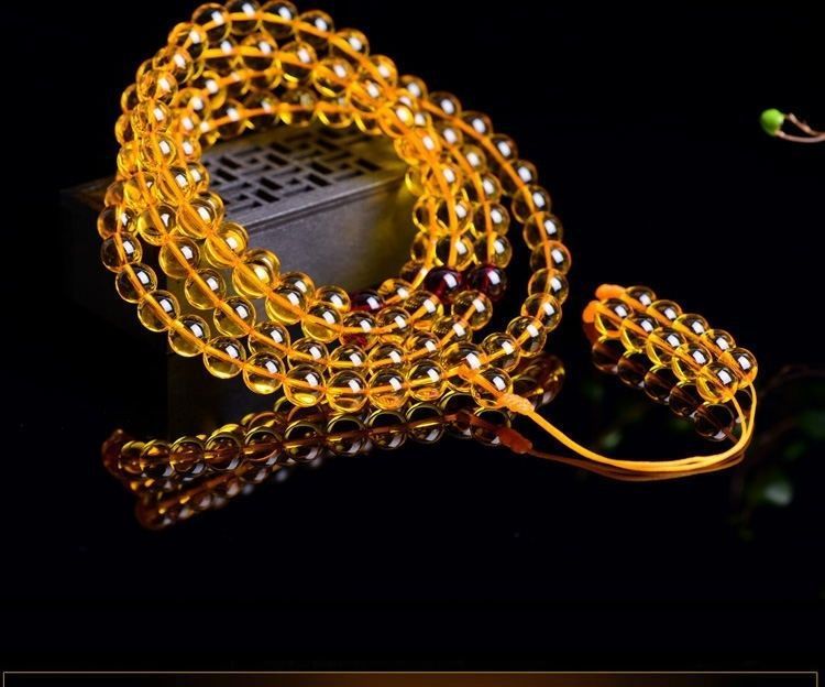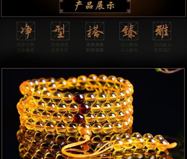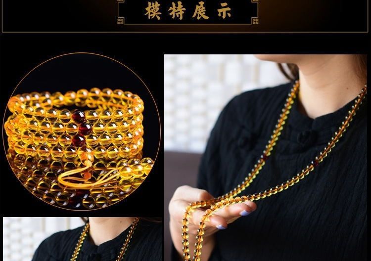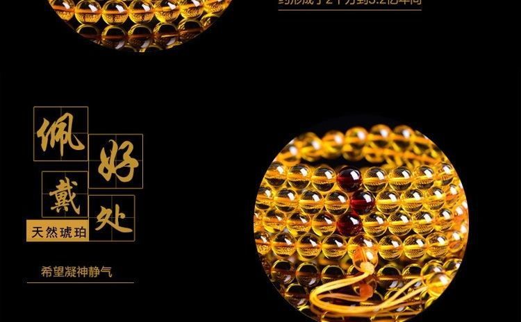 Brahma-made sea amber beeswax pendant, natural gold amber Buddha beads 108 bracelets, amber pendant, sweater chain for men and women, extra small gold amber 6mm, 108 pieces
