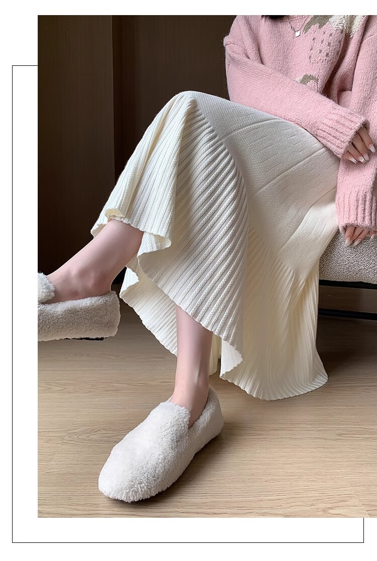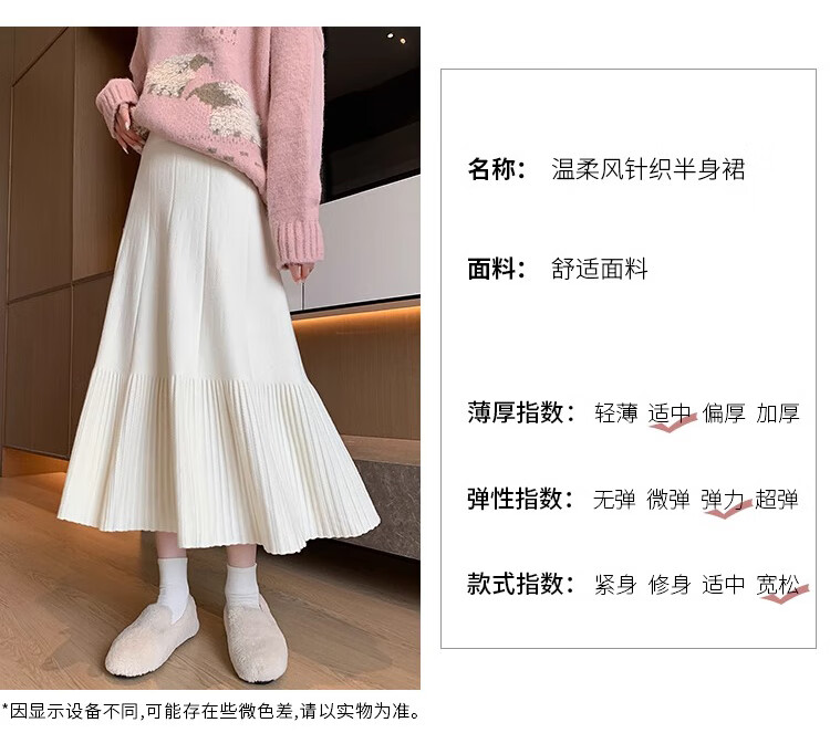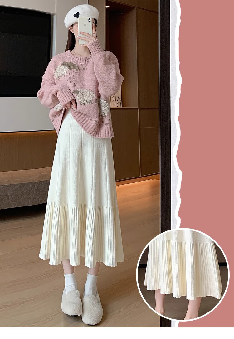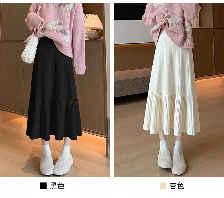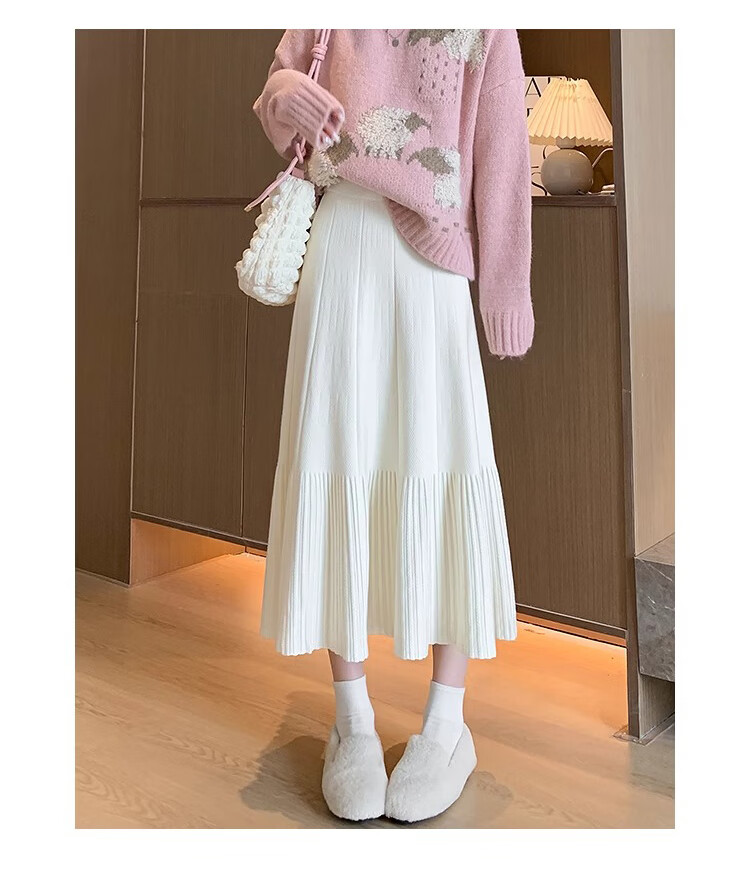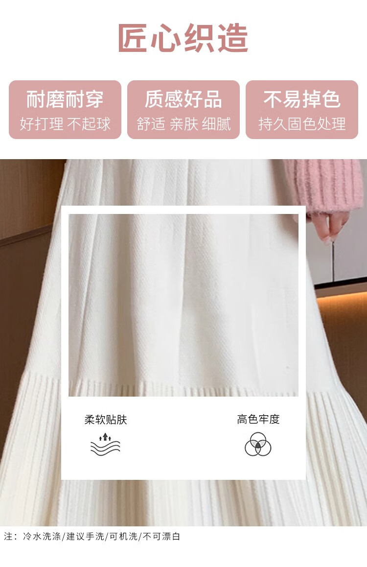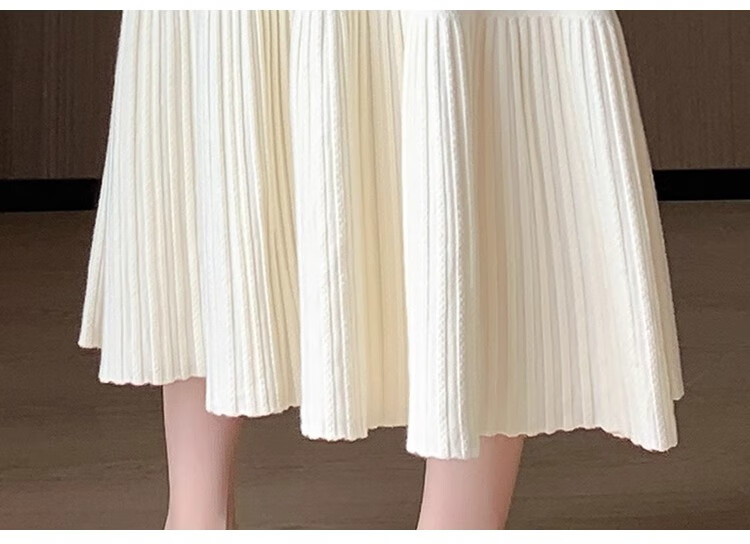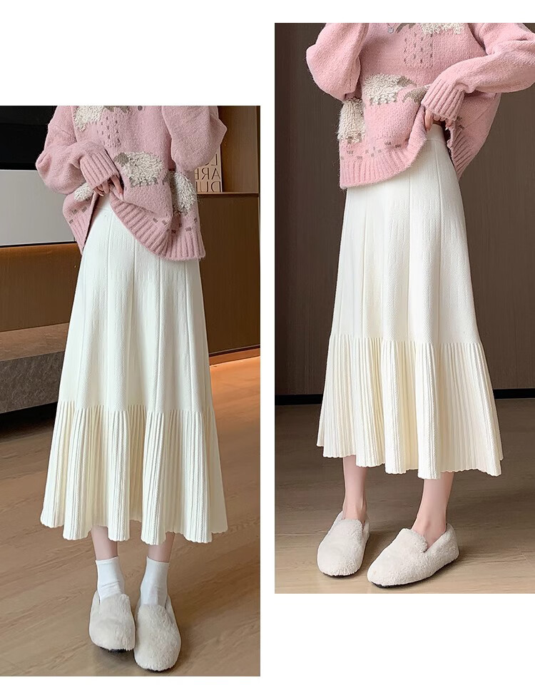 Yijian knitted pleated skirt for women in autumn and winter, small, high-waisted, slim, mid-length, a-line umbrella skirt, long skirt, versatile knitted pleated skirt, off-white - one size fits all (recommended 80-120 Jin Jin equals 0.5 kg)