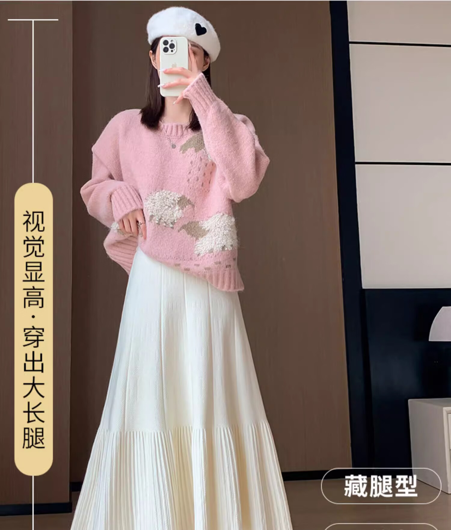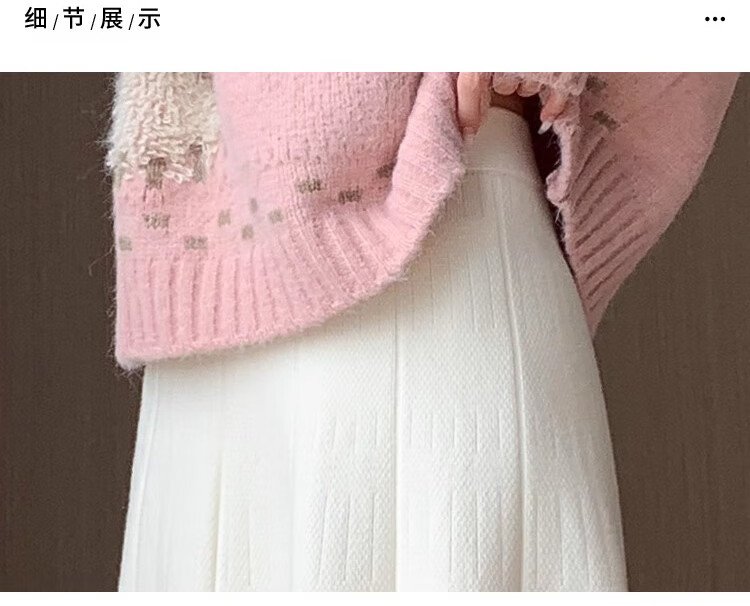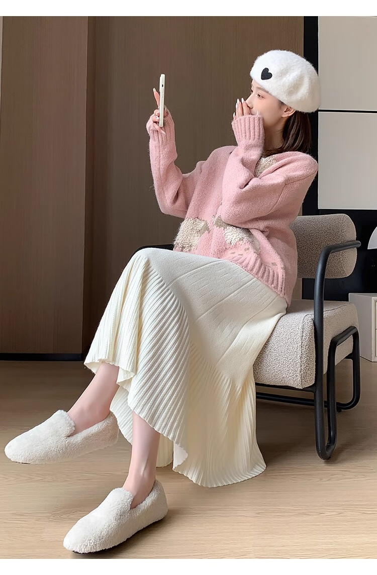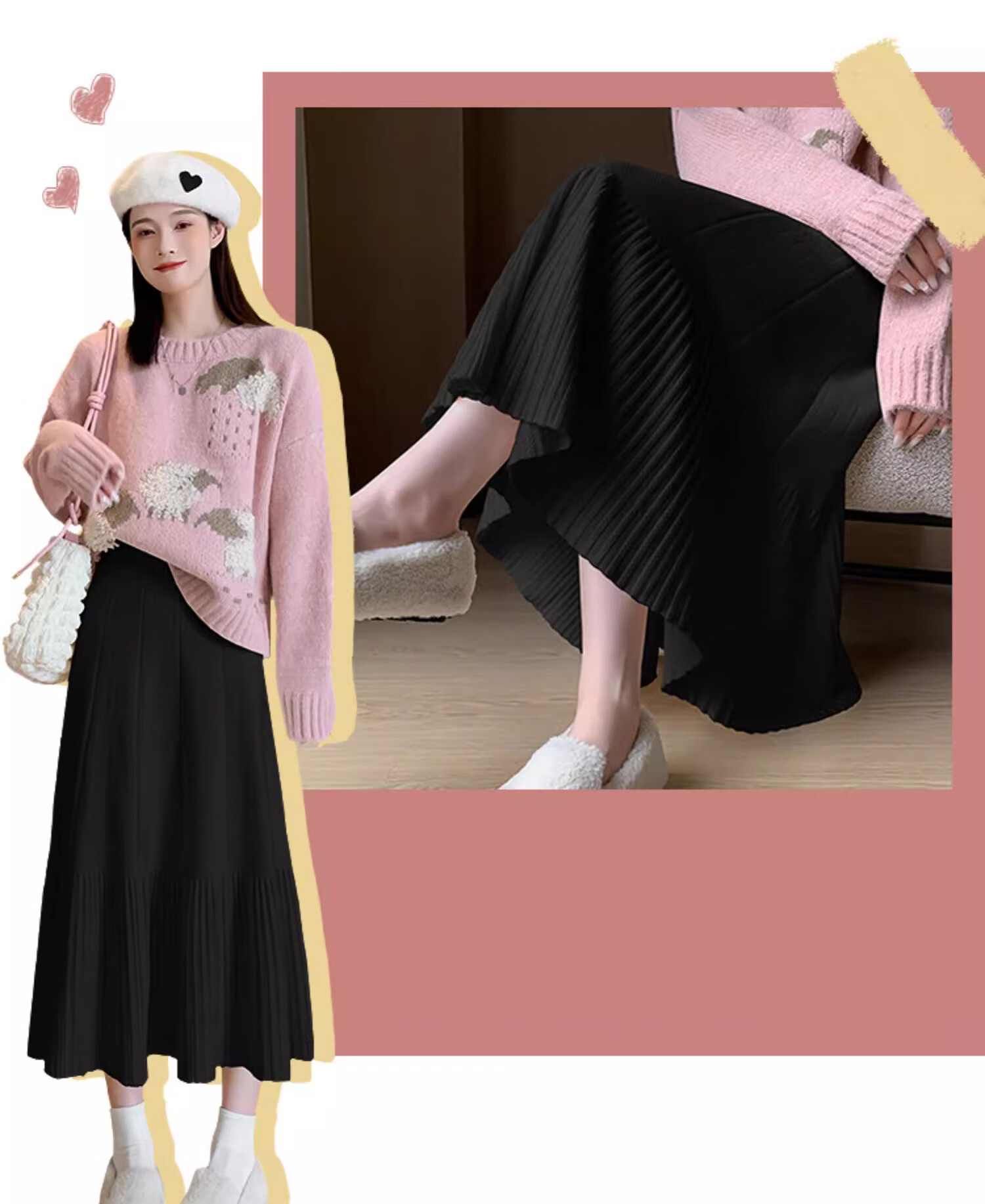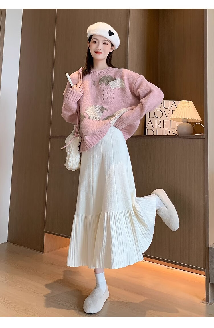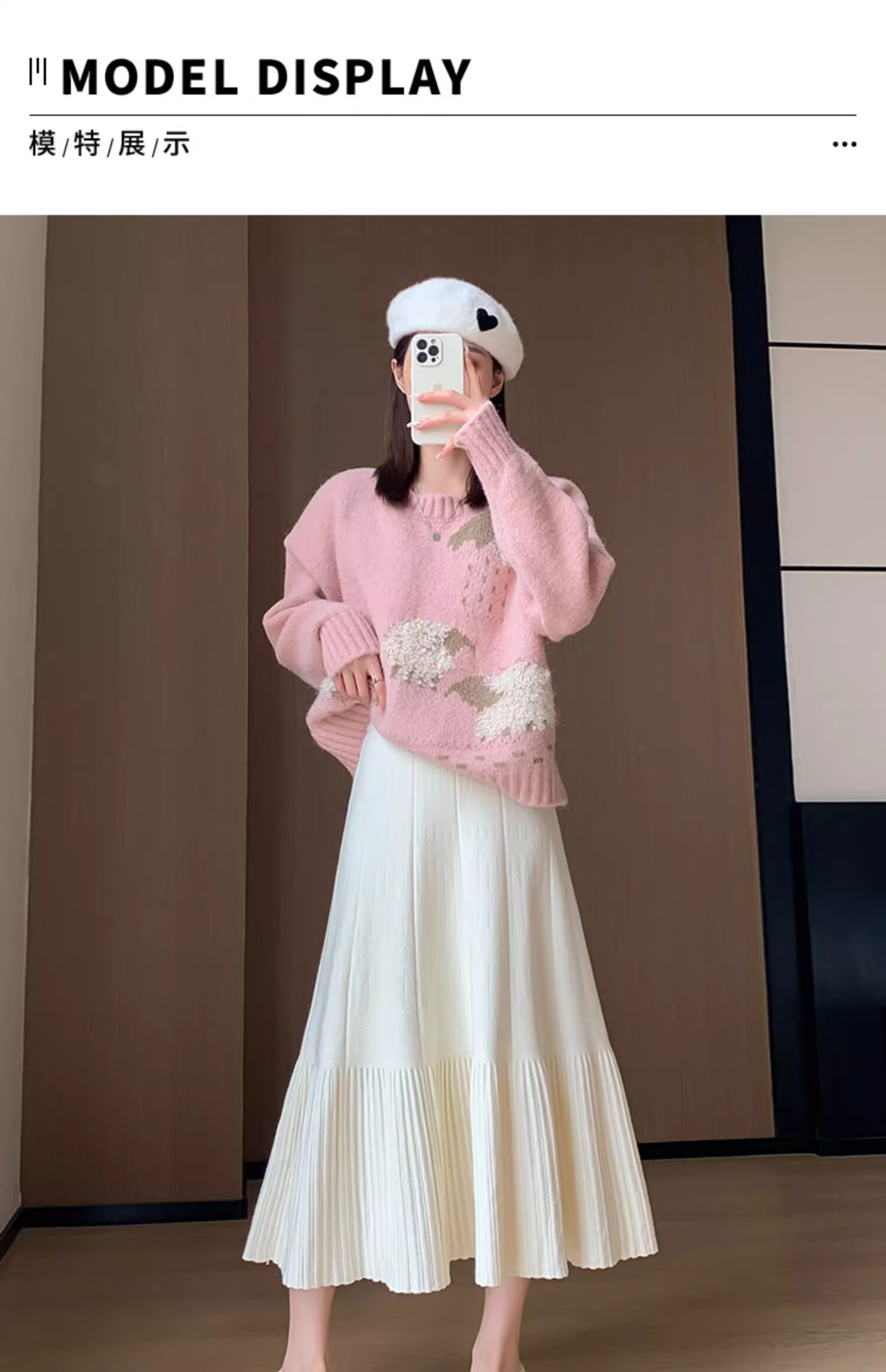 Yijian knitted pleated skirt for women in autumn and winter, small, high-waisted, slim, mid-length, a-line umbrella skirt, long skirt, versatile knitted pleated skirt, off-white - one size fits all (recommended 80-120 Jin Jin equals 0.5 kg)