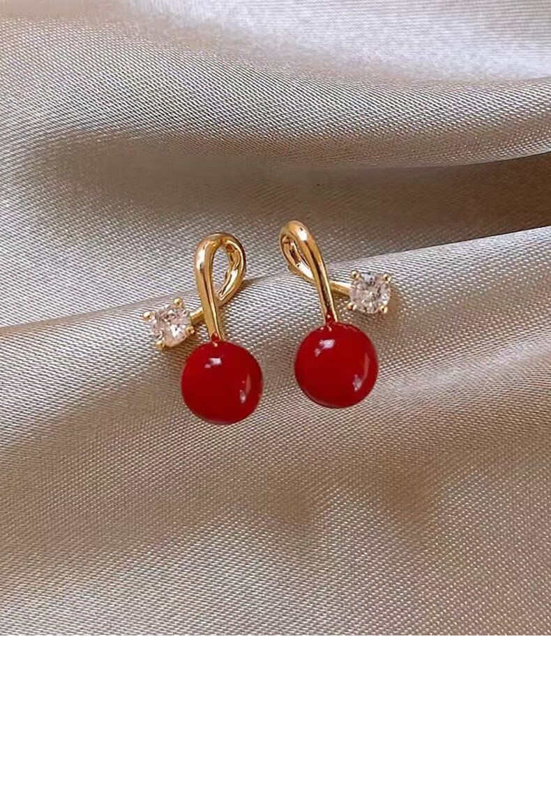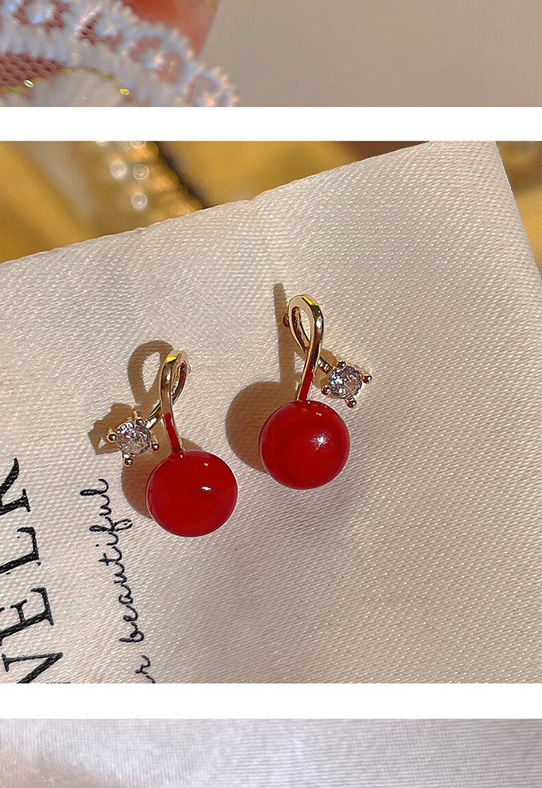 Bai Qixin red acacia earrings imitation zircon earrings for women versatile niche design light luxury high-end temperament new year earrings red acacia earrings a pair