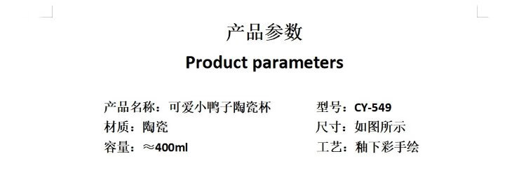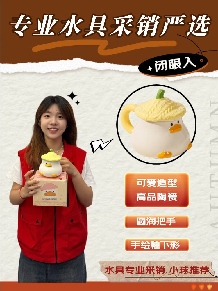 Hand-painted cartoon duck mug underglaze color stamped cute water cup coffee cup household ceramic cup breakfast cup yellow 1 piece 400ml