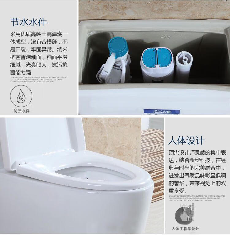American Standard One-piece Toilet Siphonic Toilet Water Saving Silent Anti-odor Pumping Super Swirl Siphonic Toilet with PP Cover 400mm