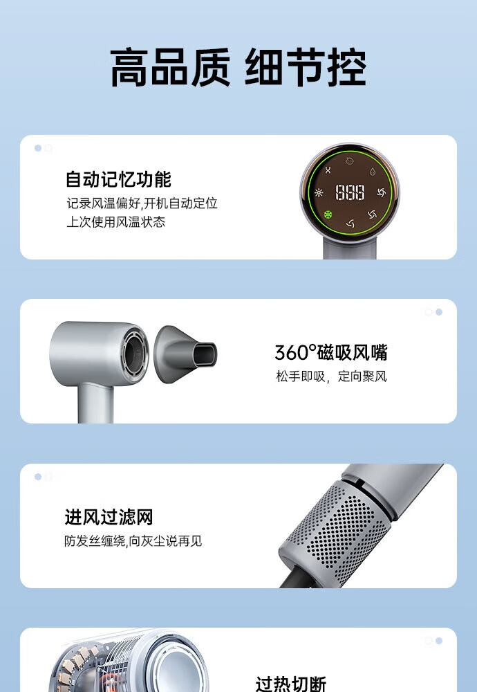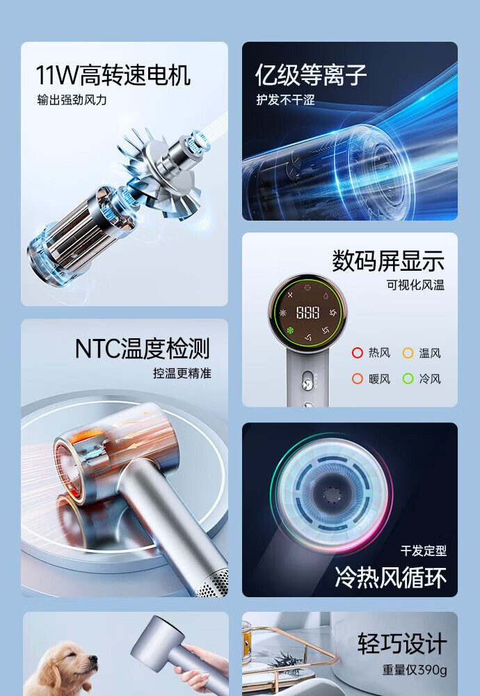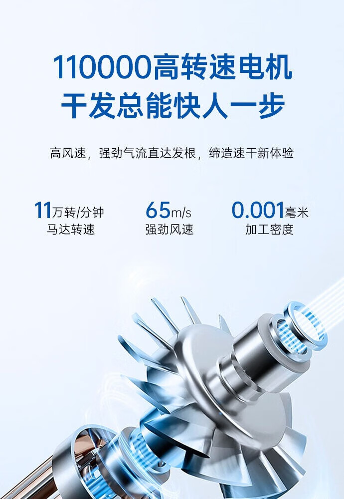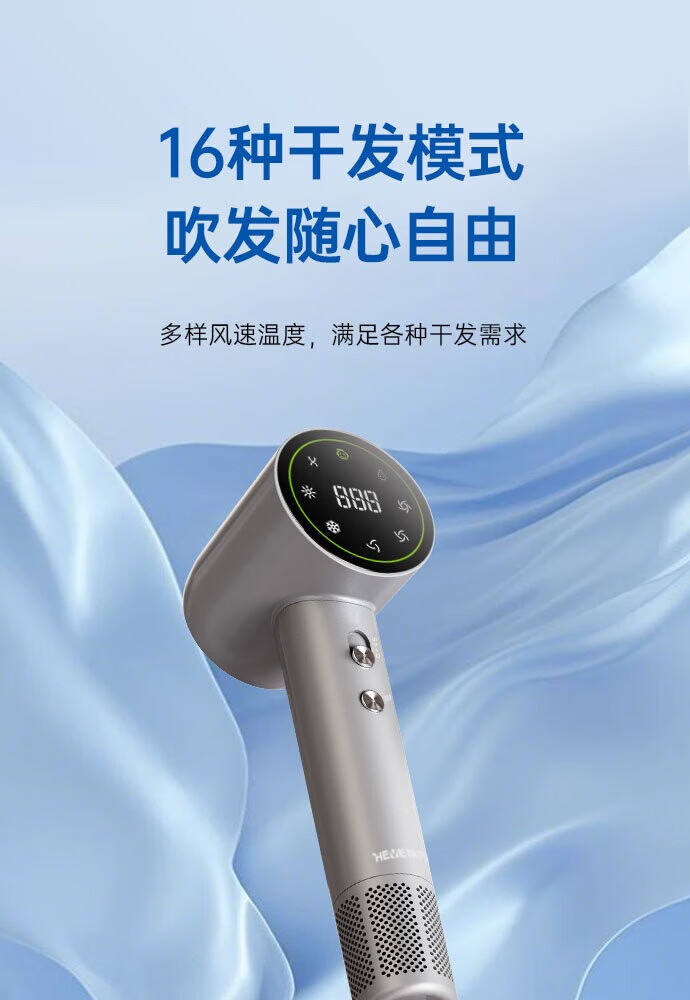 Hewei Intelligent High-speed Hair Dryer Plasma Negative Ion Strong Wind-Free Hair Care Home Silent Hair Care Styling Mid-Autumn Festival Gift Home Appliance HFA301C Starry Sky Gray