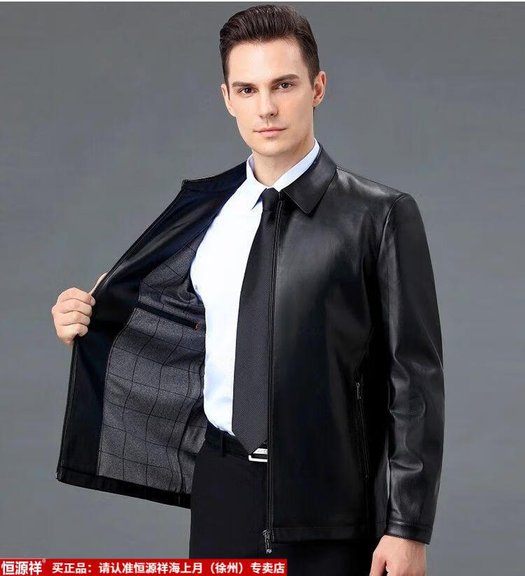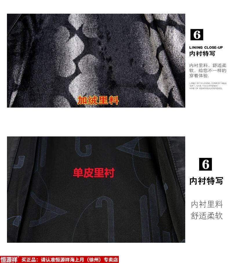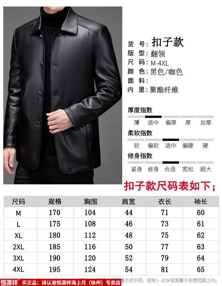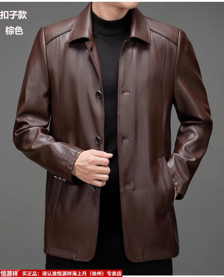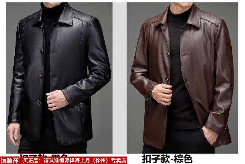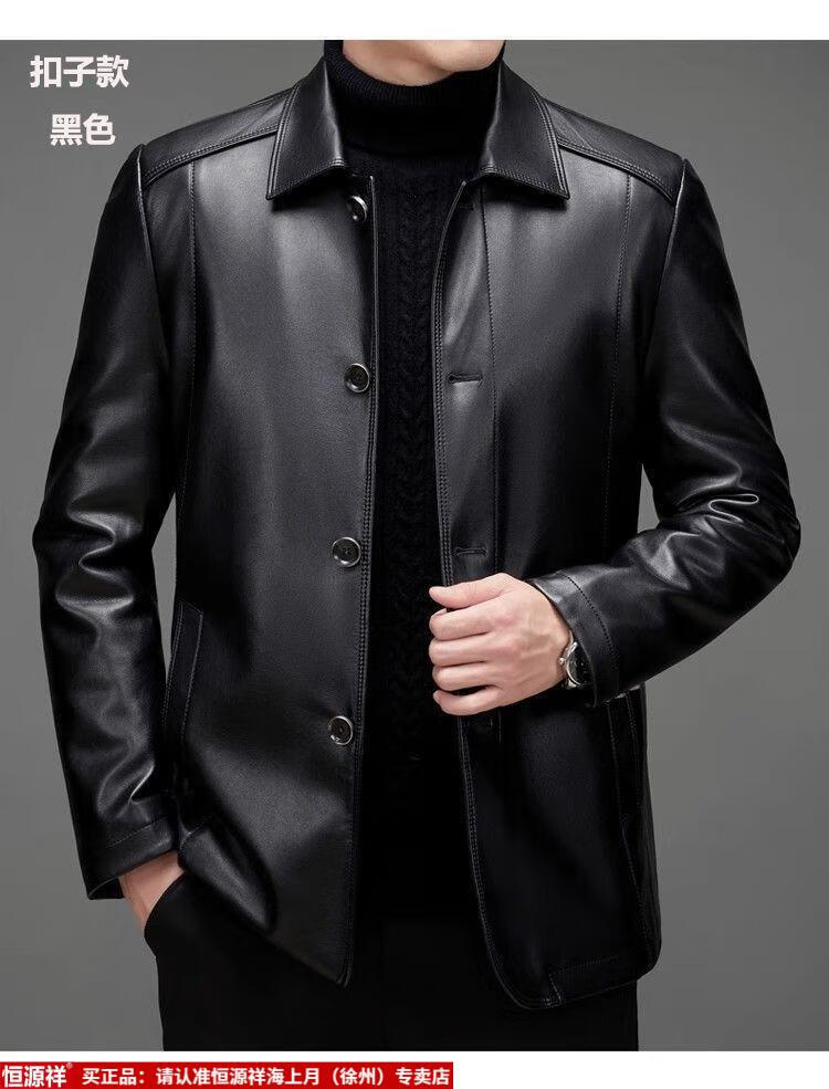 Hengyuanxiang high-end new men's genuine leather jacket autumn and winter leather jacket spring and autumn coat middle-aged velvet thickened men's clothing button style - black velvet 3XL 190 156 Jin Jin equals 0.5 kg to 180 Jin Jin equals 0.5 kg