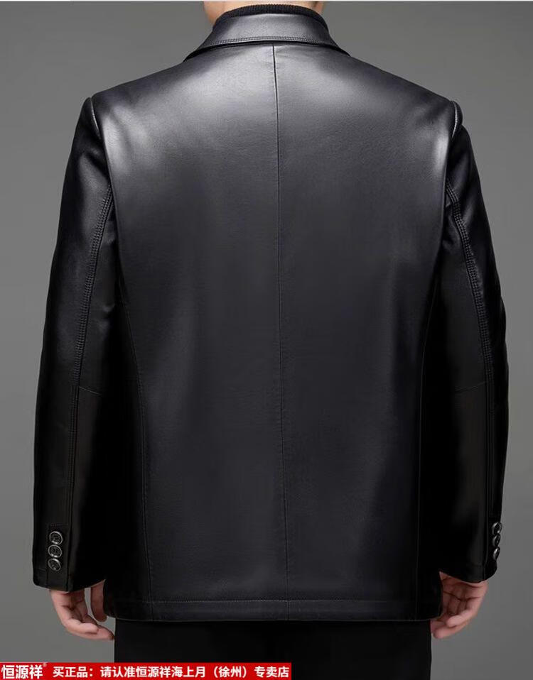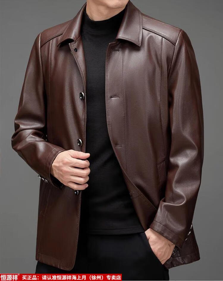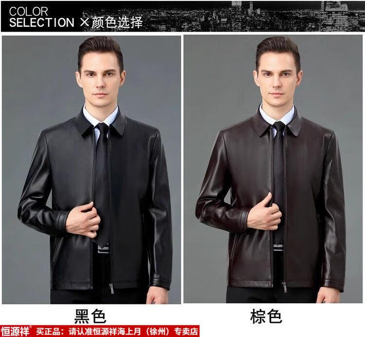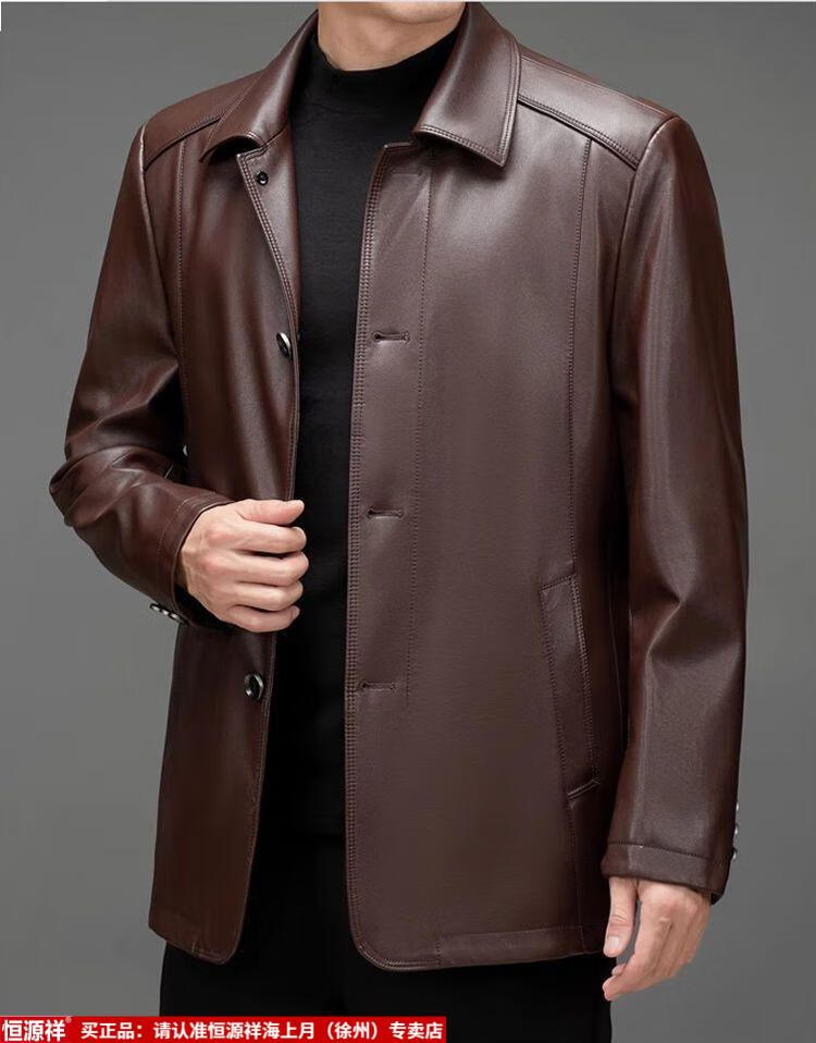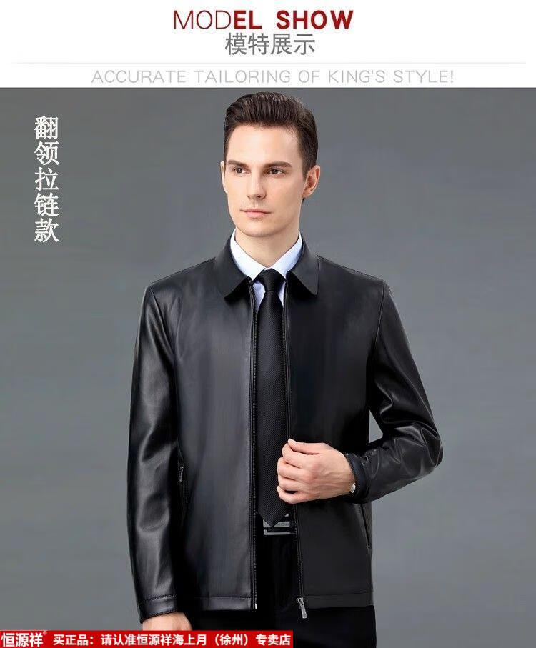 Hengyuanxiang high-end new men's genuine leather jacket autumn and winter leather jacket spring and autumn coat middle-aged velvet thickened men's clothing button style - black velvet 3XL 190 156 Jin Jin equals 0.5 kg to 180 Jin Jin equals 0.5 kg
