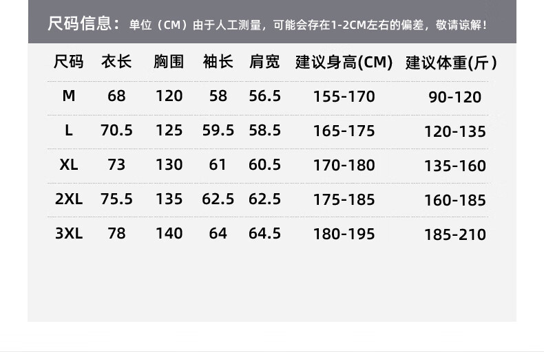 China (cm) 165 / 88-90 170 / 96-98 175 / 108-110 180 / 118-122 185 / 126-130