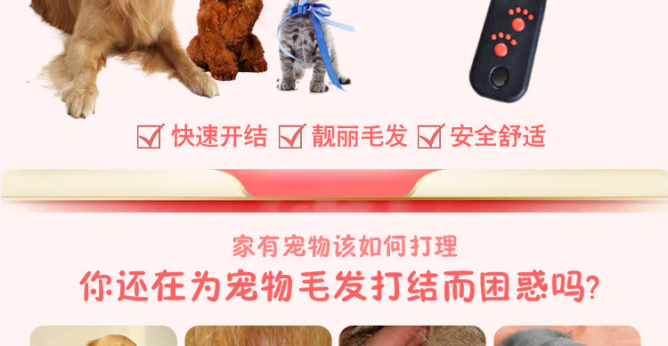 OUOETY pet comb Teddy comb dog grooming comb loose knot comb knot opener knife knot comb knot opener artifact universal red