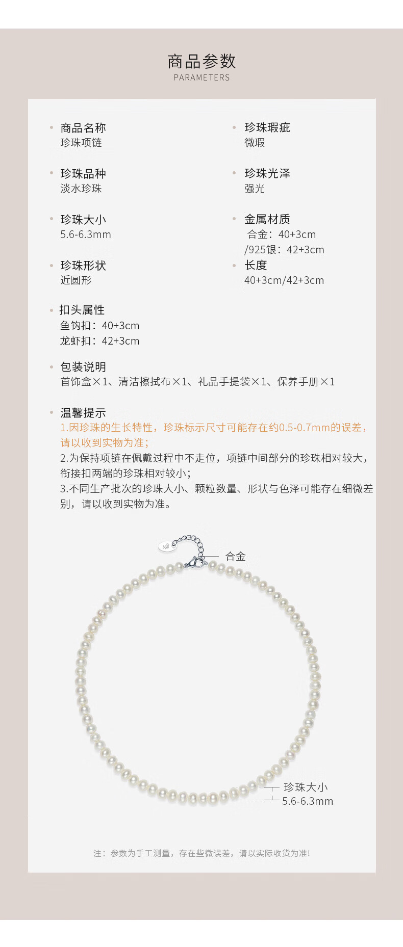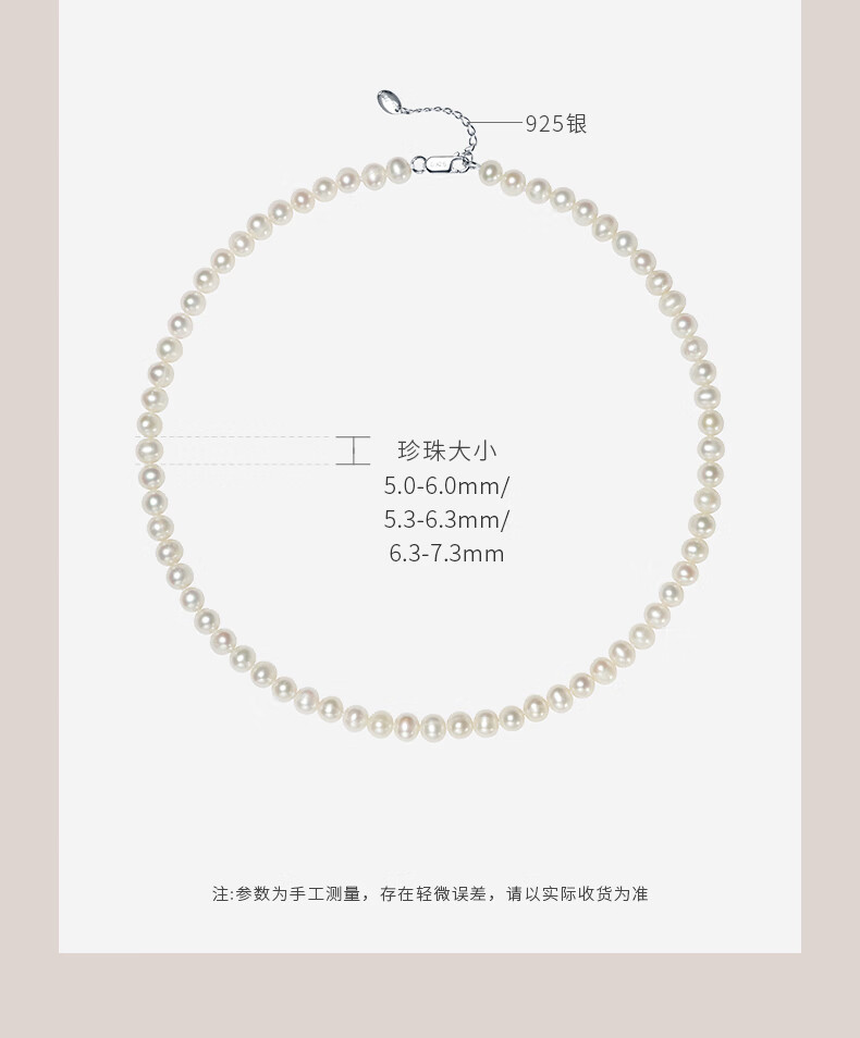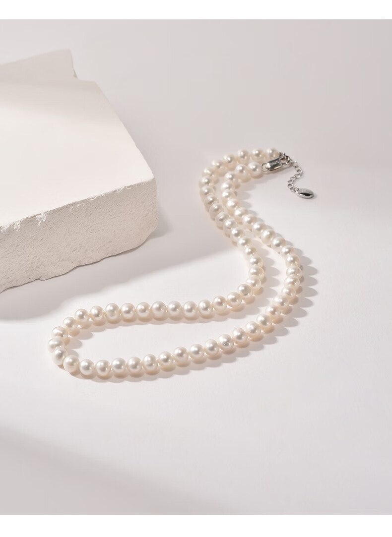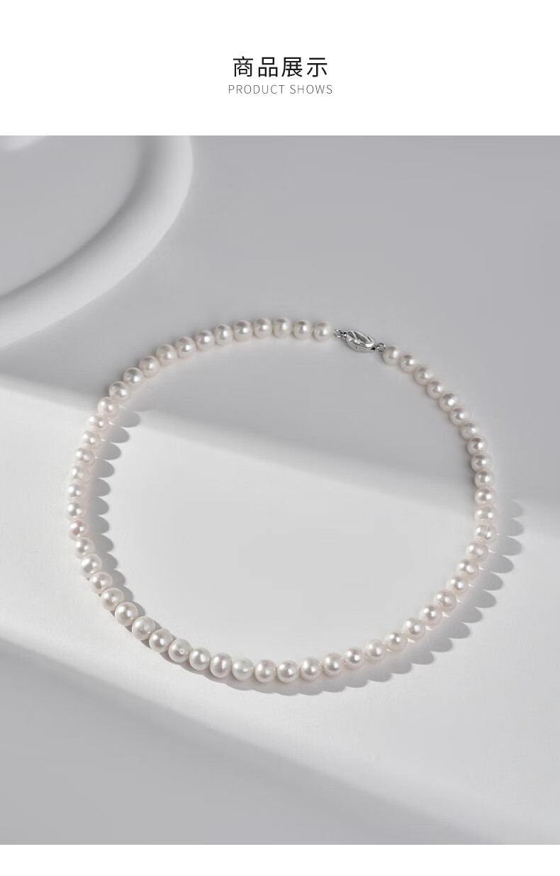 Jingrun Pearl Necklace Jingshu Natural Freshwater Pearl Necklace Highlight Classic Versatile Full Bead Chain Birthday Gift for Women to Wear Jingmei/Nearly Round/5.3-6.3mm42+3cm Lobster Clasp