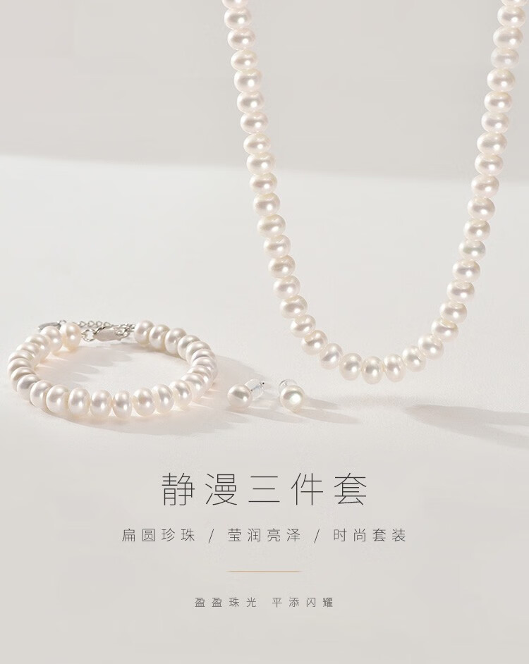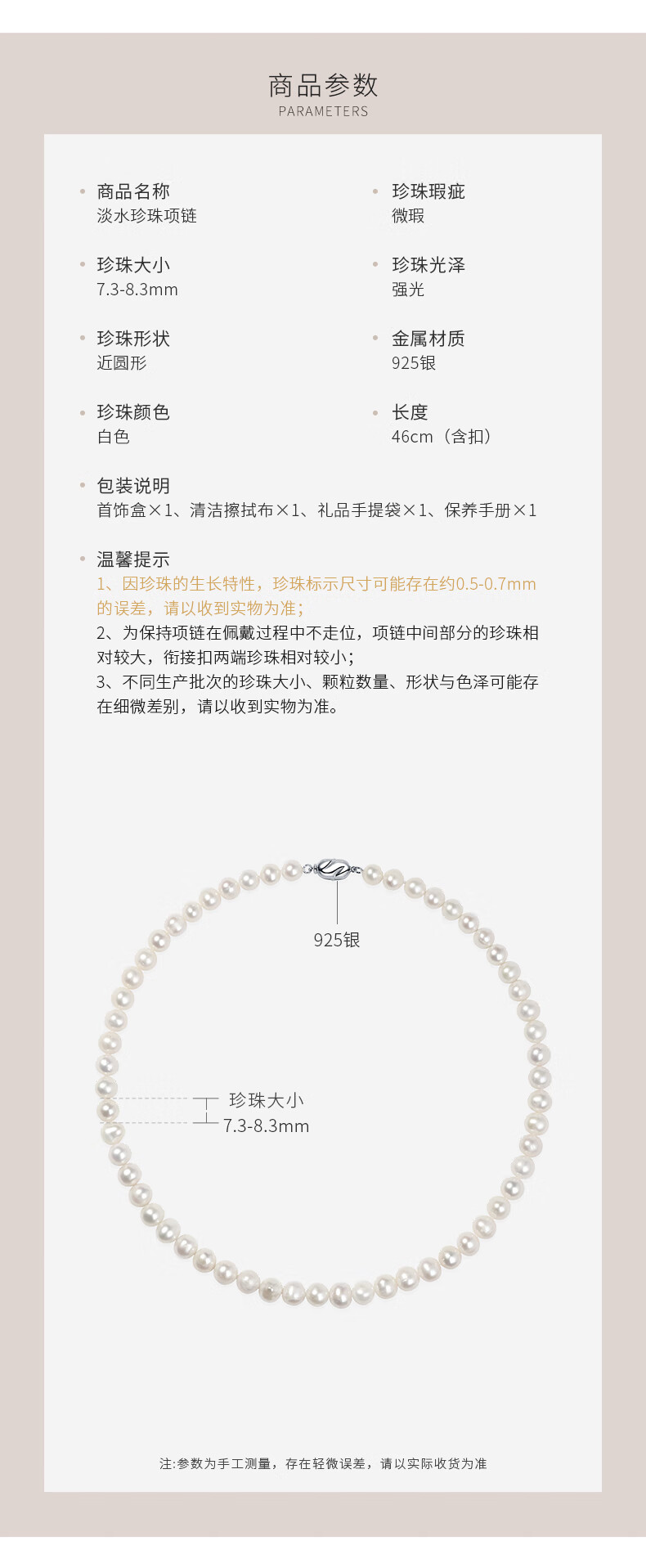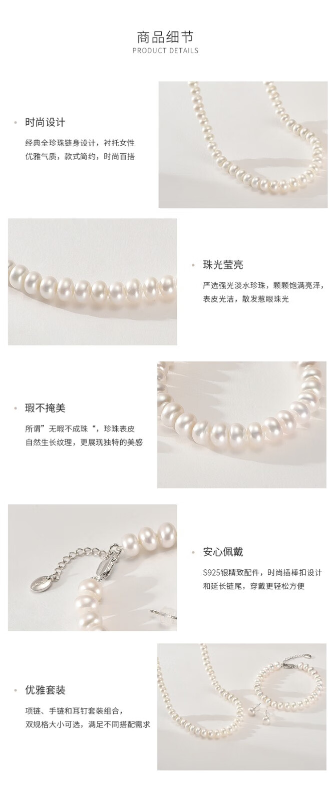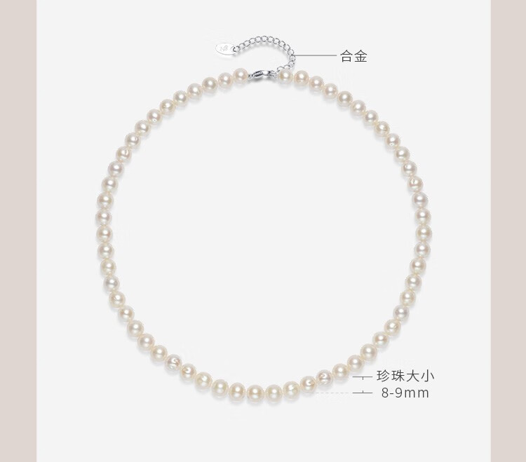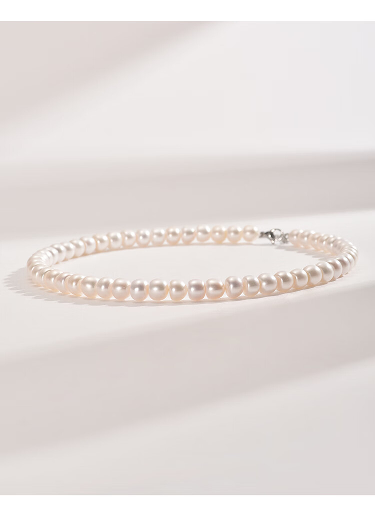 Jingrun Pearl Necklace Jingshu Natural Freshwater Pearl Necklace Highlight Classic Versatile Full Bead Chain Birthday Gift for Women to Wear Jingmei/Nearly Round/5.3-6.3mm42+3cm Lobster Clasp