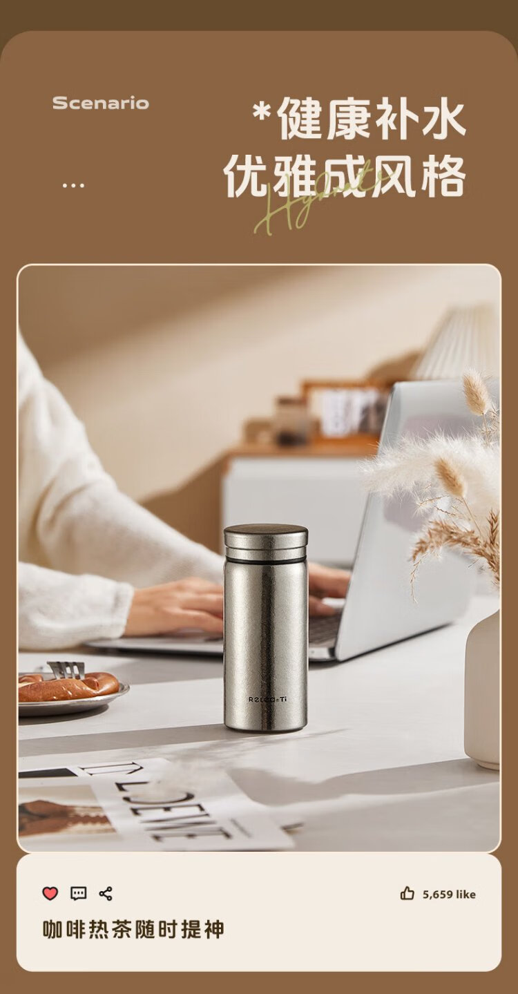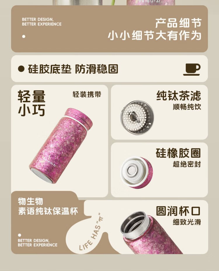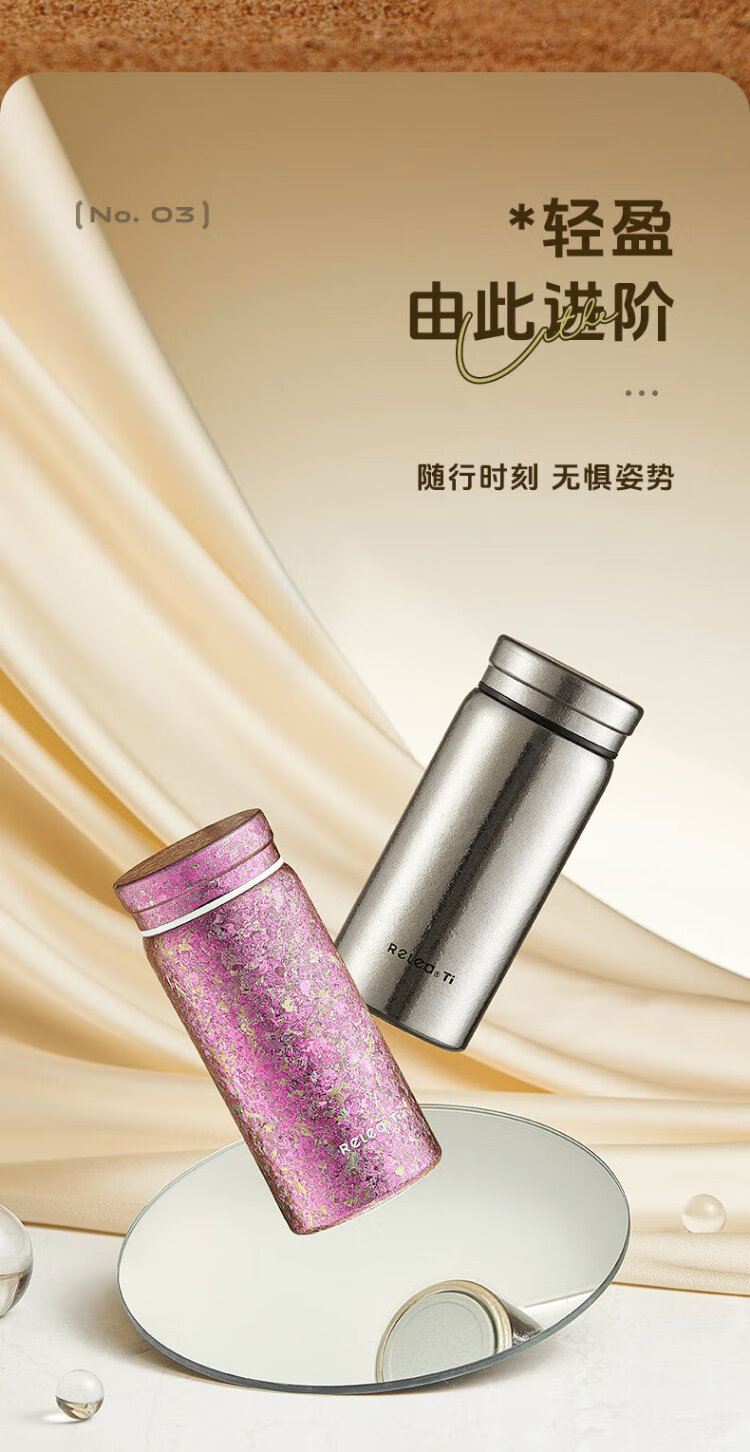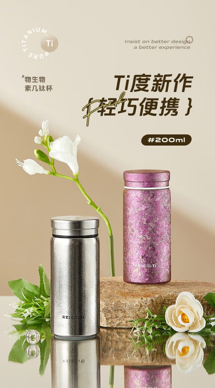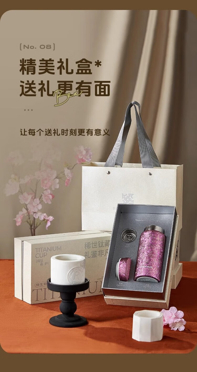 Wusheng Pure Titanium Insulated Cup Titanium Cup Women's High-Looking Water Cup Mini Pocket Cup Holiday Gift for Girlfriend Birthday Gift Box Chunjian Powder Gift Box Internal and External Pure Titanium 200ml