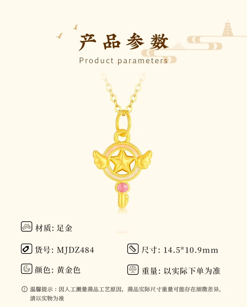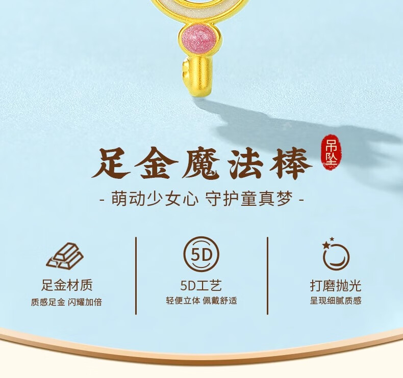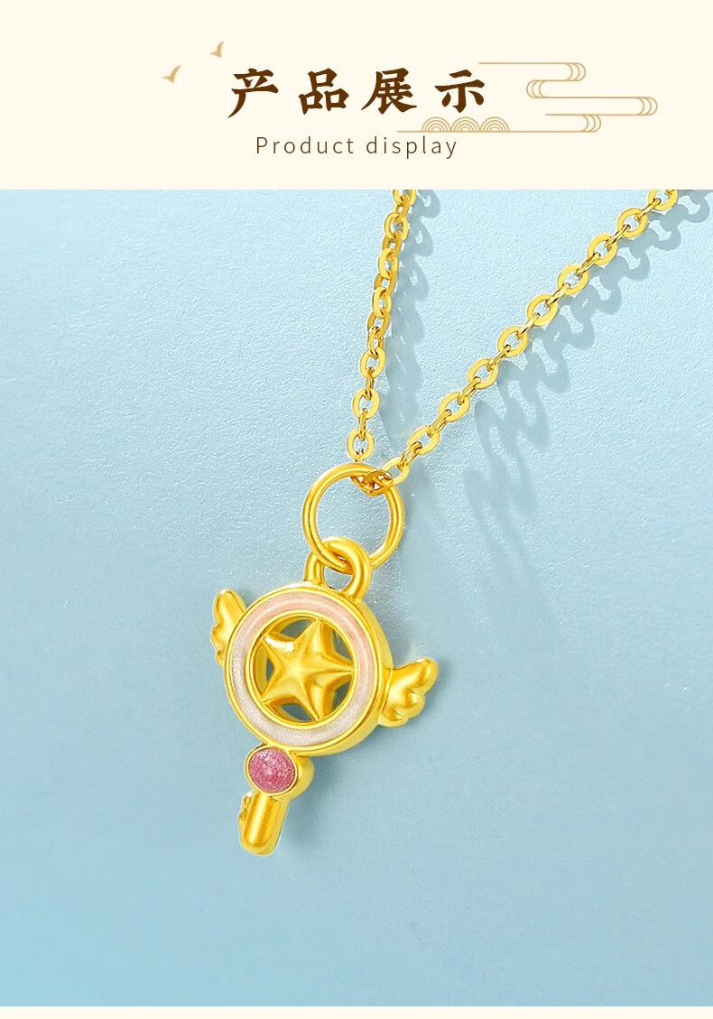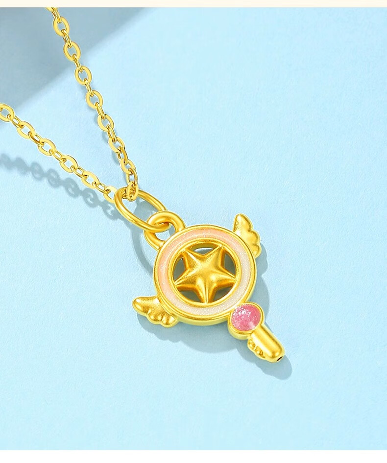 CHINA GOLD Magic Wand Gold Necklace Women's Foot Gold Pendant Girl's Birthday Gift for Girlfriend and Wife Gold Weight Approximately 0.7g With Silver Chain Magic Wand Gold Pendant