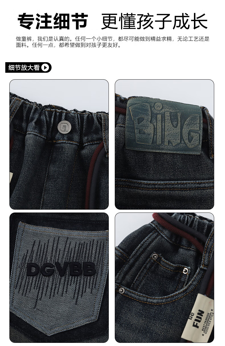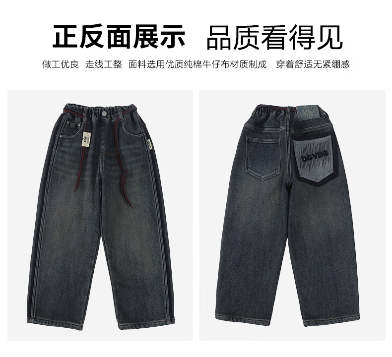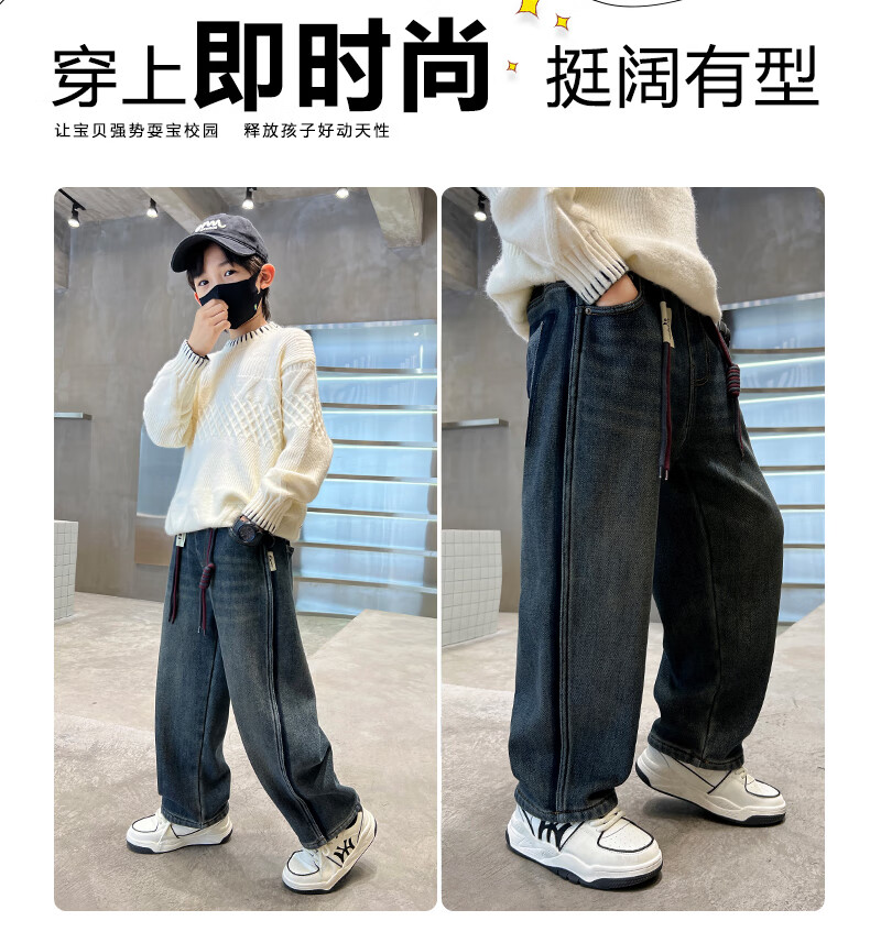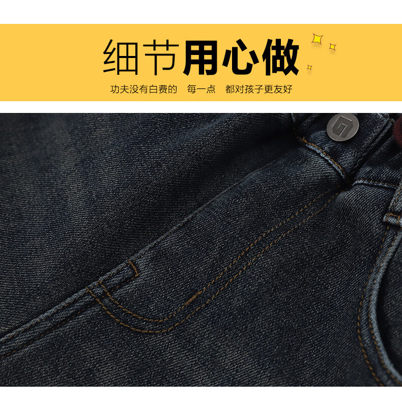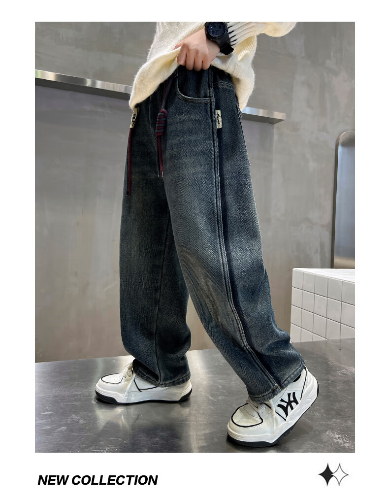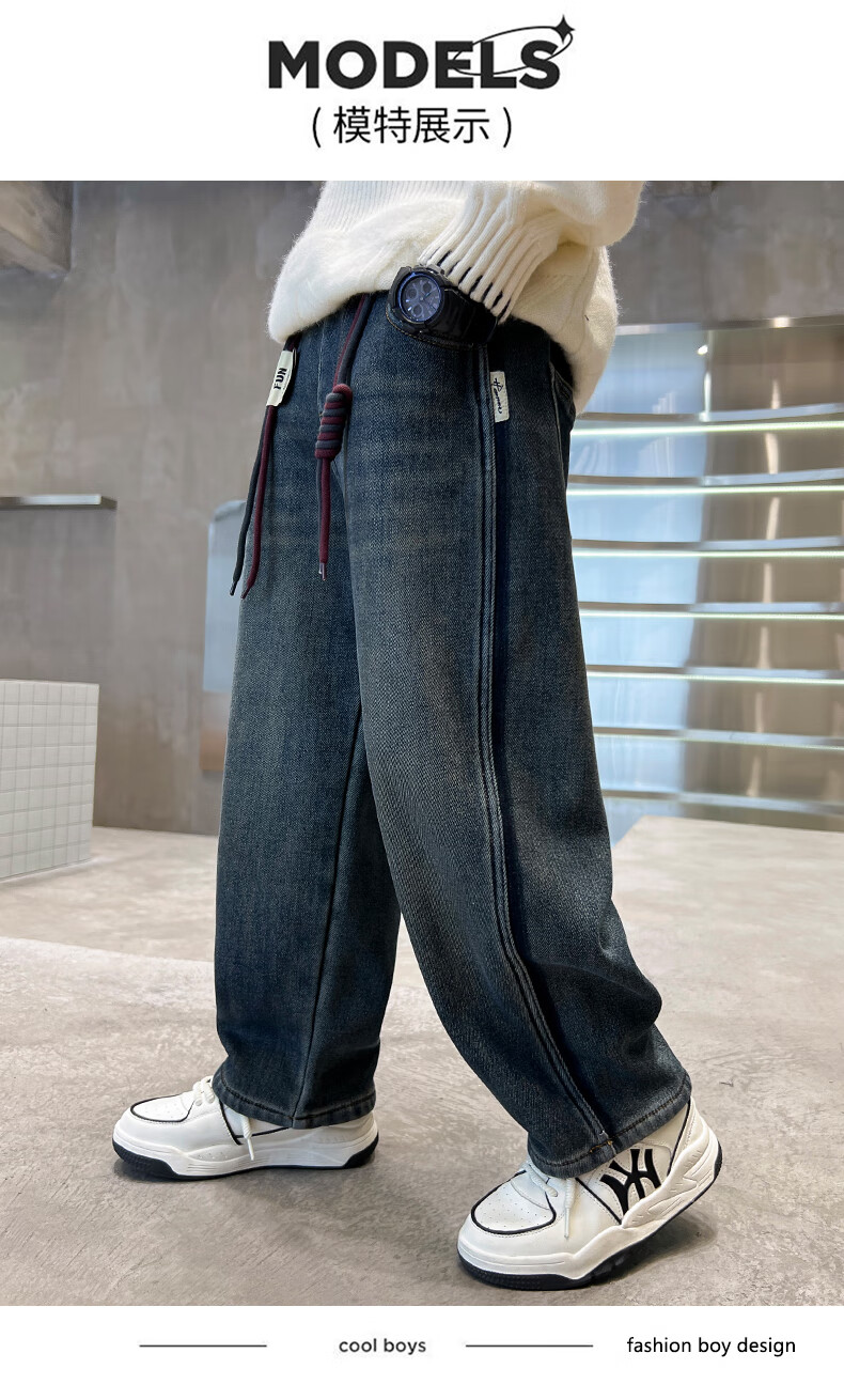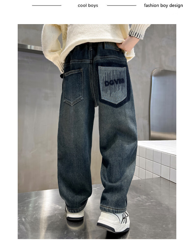 Doudou Kingdom Boys Jeans Autumn and Winter Medium and Large Children's Pants 2025 Winter New Boys' Velvet Thickened Casual Pants Blue Gray Velvet Style 150 Recommended Height 140cm-150cm