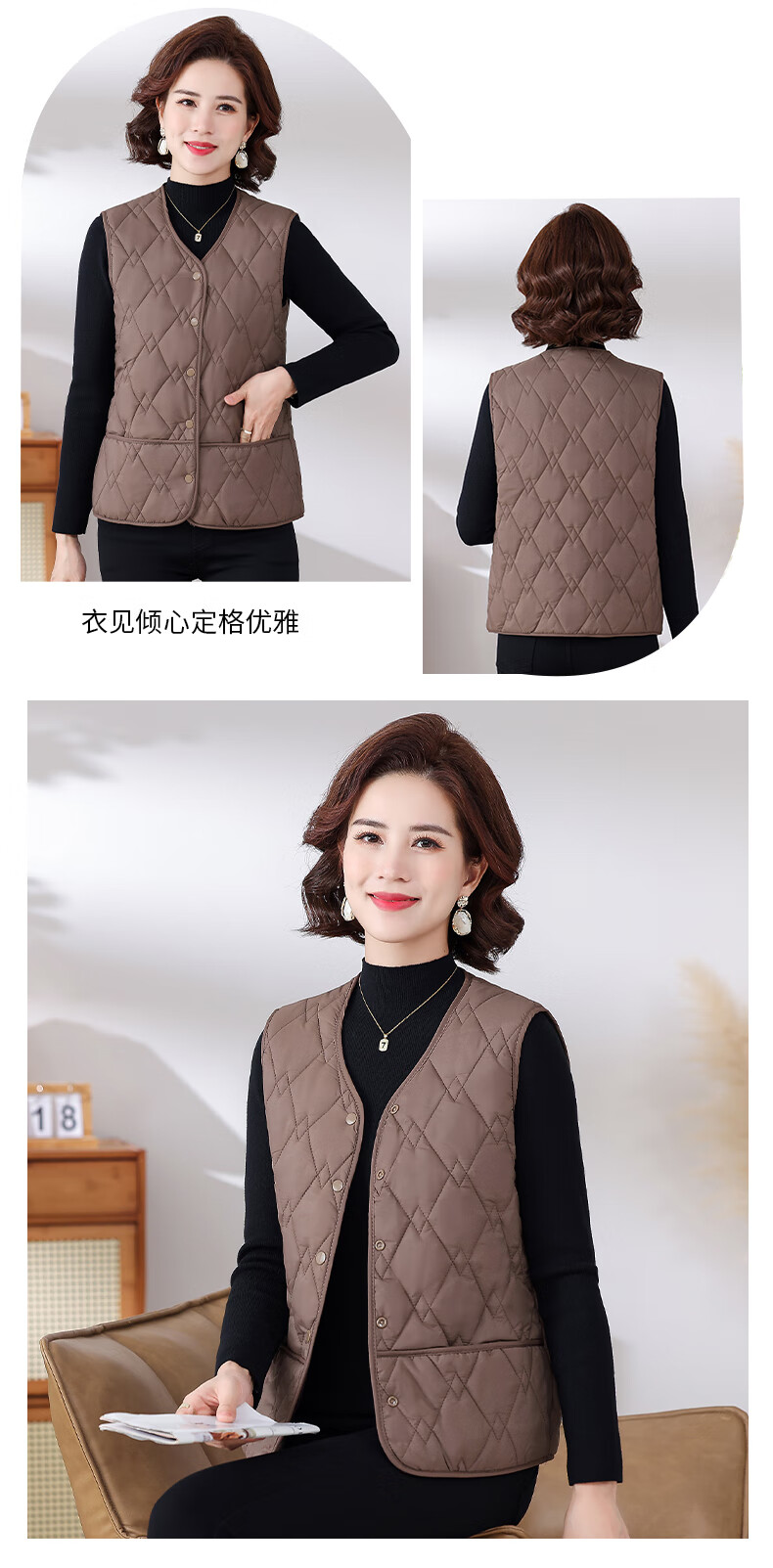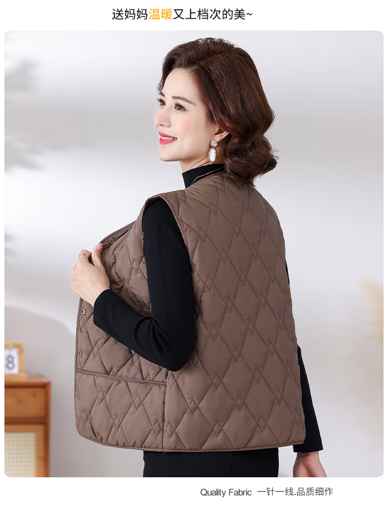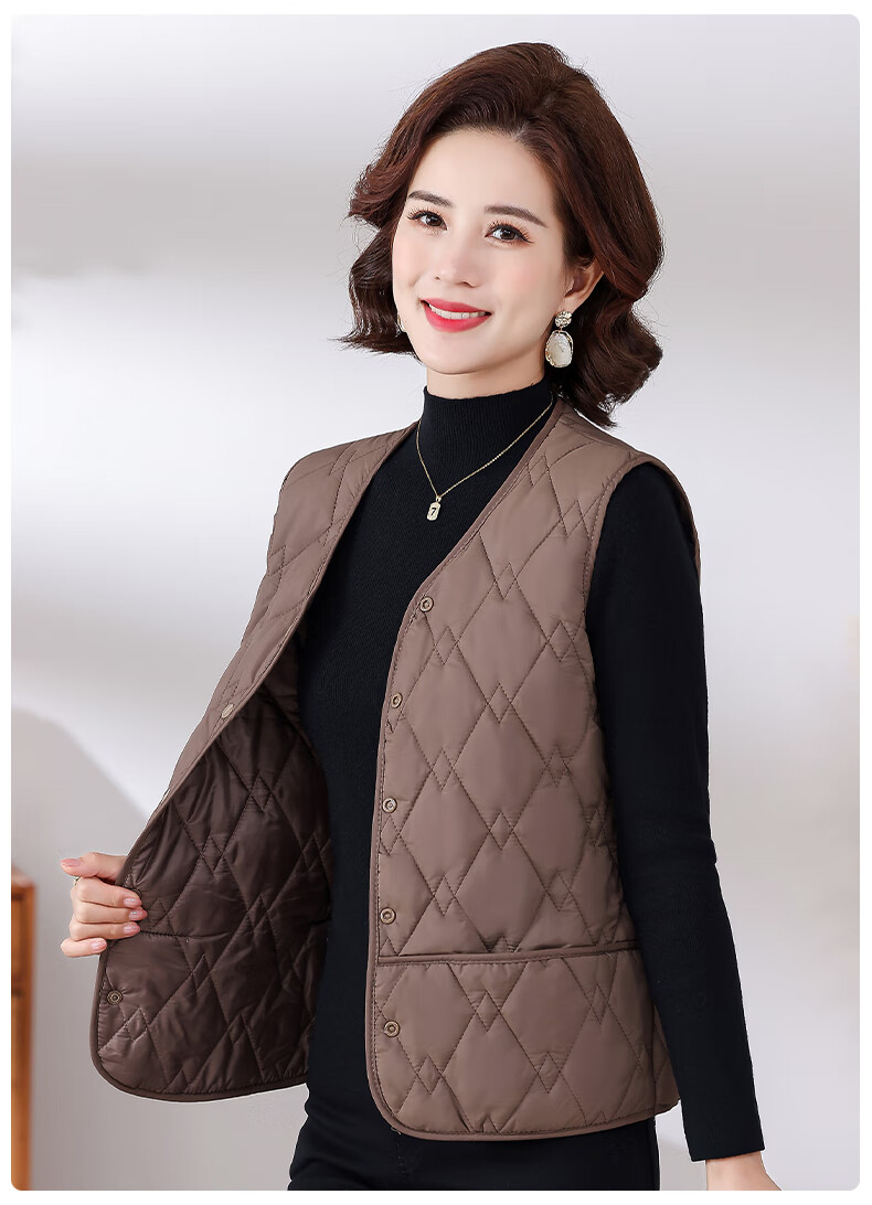 Pierre Cardin Western Style Mom Lightweight Down Jacket Vest Middle-aged and Elderly Ladies Loose Warm Outer Wearing Vest Vest Young Brown 4XL (Recommended 110-125Jin Jin is equal to 0.5kg)