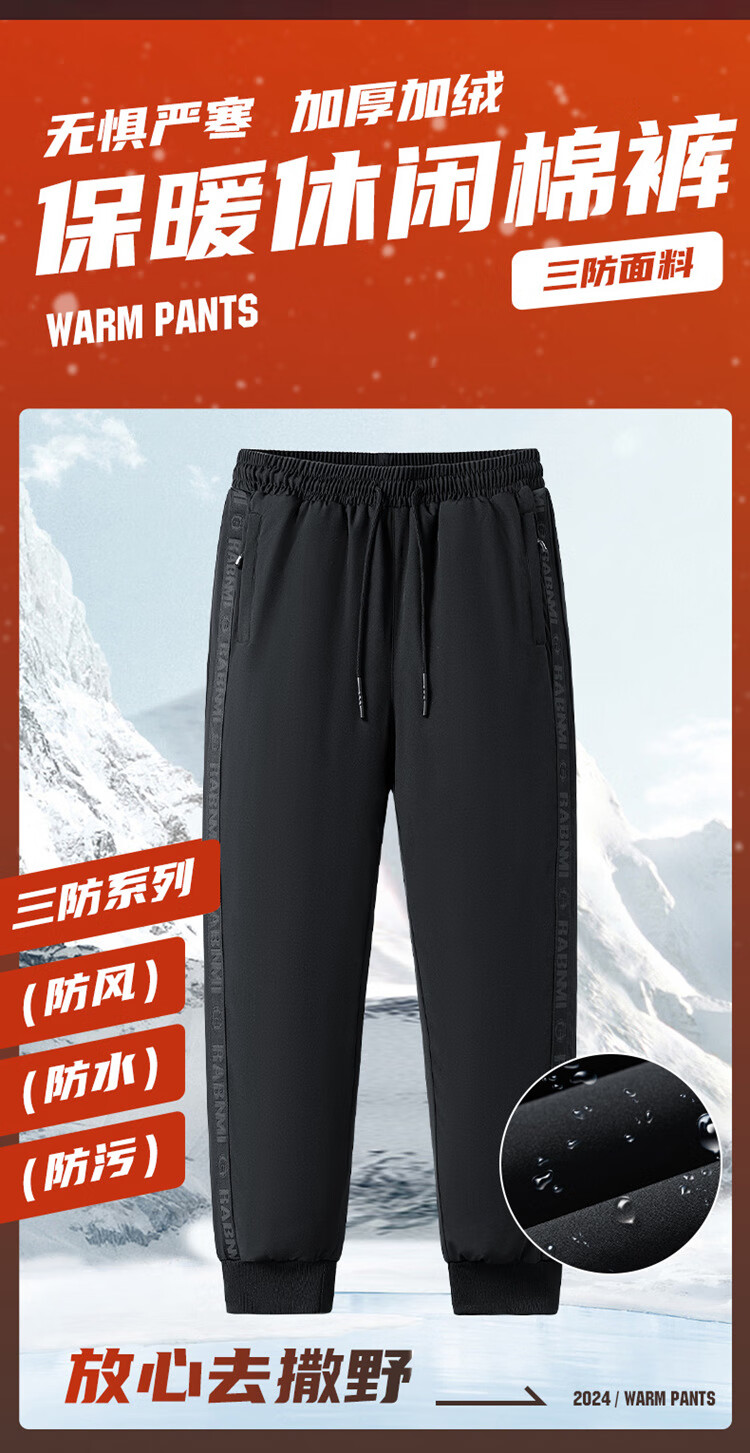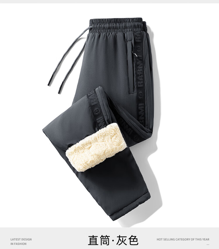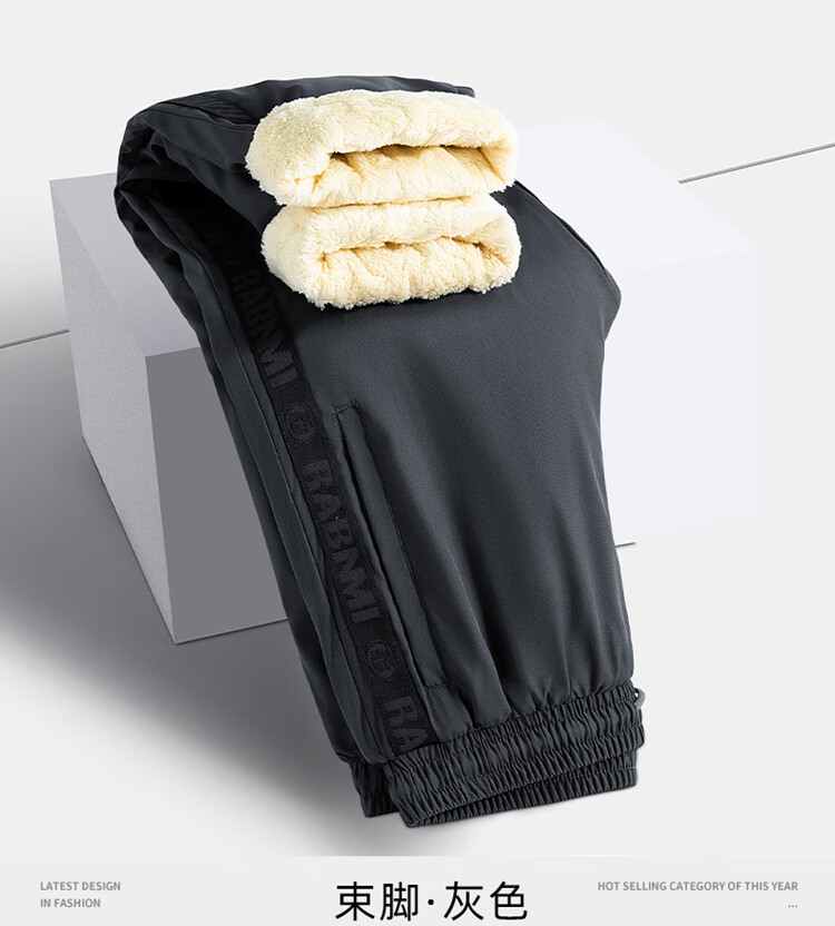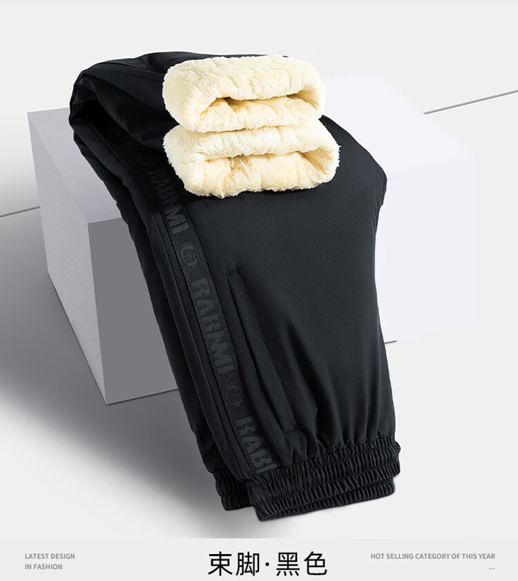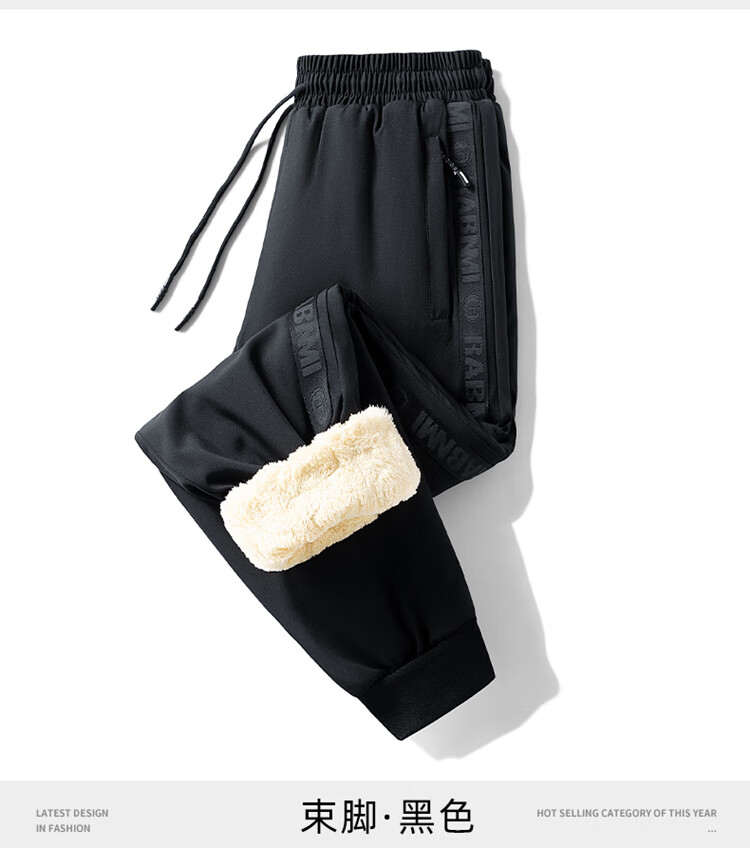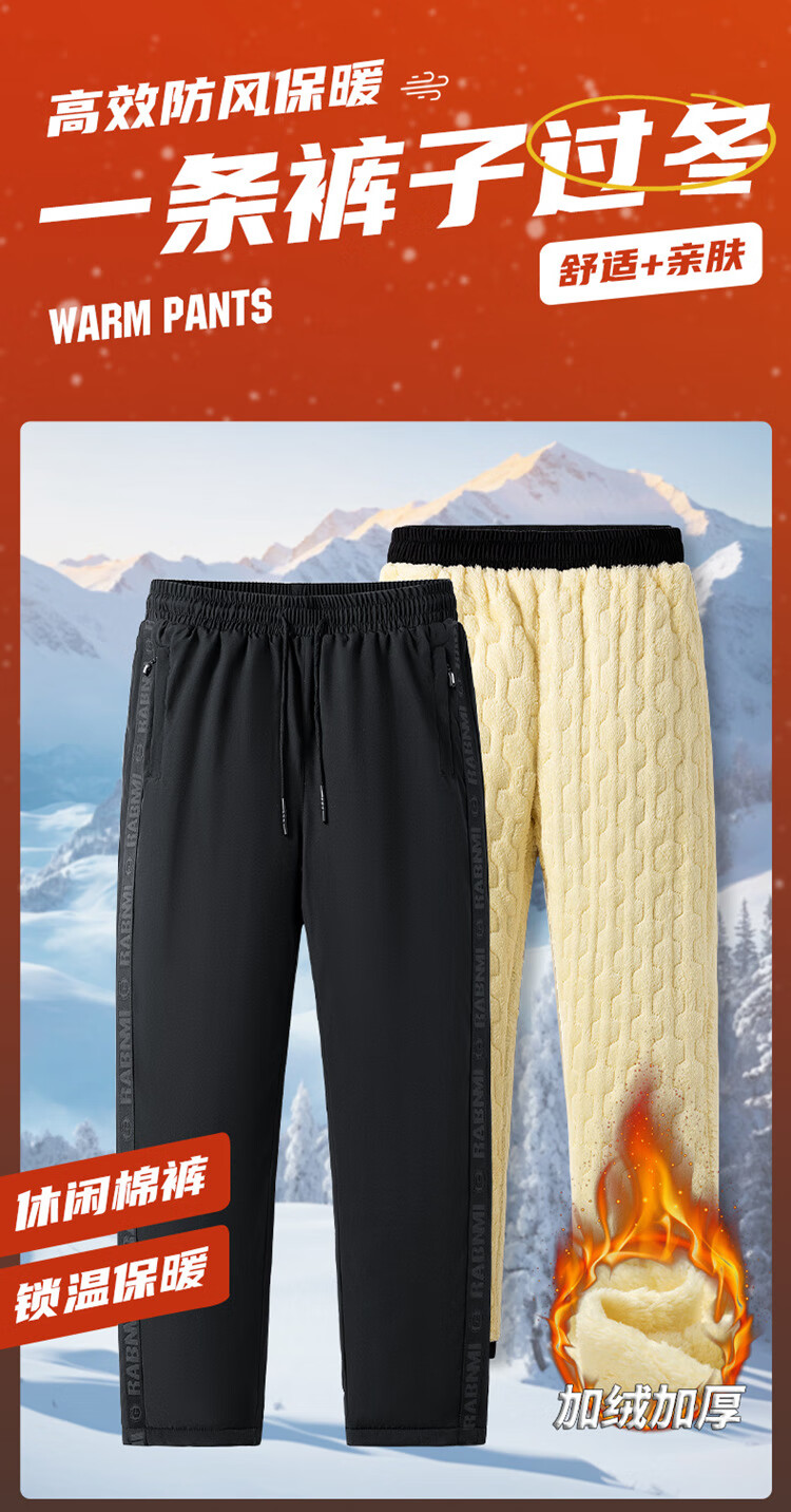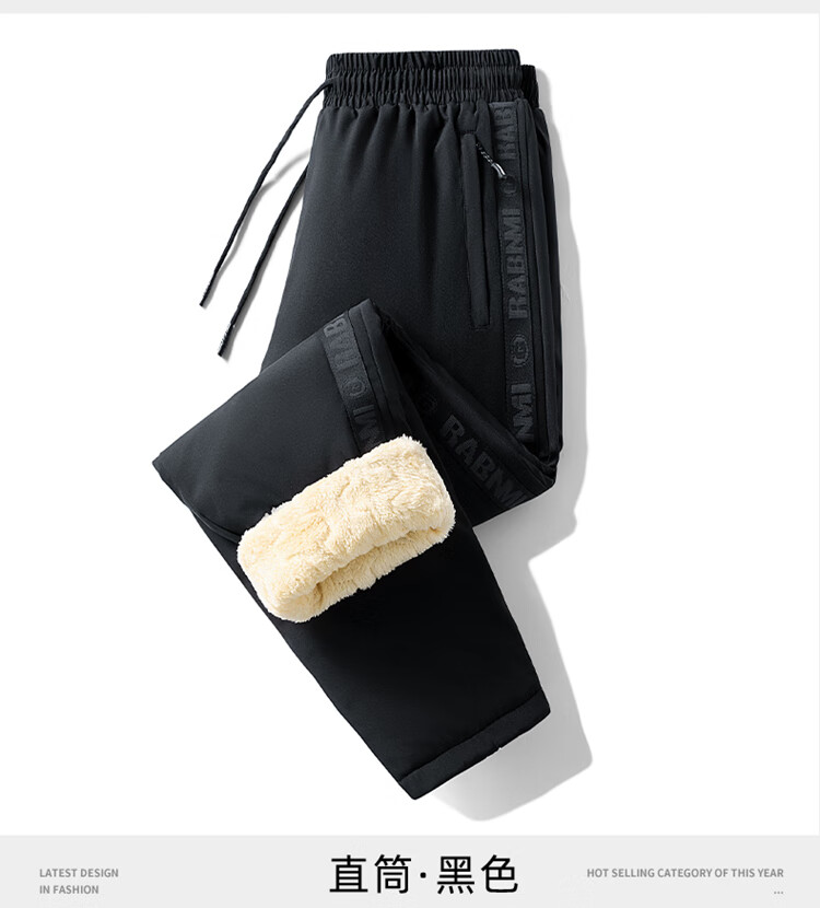 Winter lamb velvet trousers for men, thickened with velvet, windproof, waterproof and warm, outdoor straight cotton pants, large size sweatpants 8373 black leggings, one set M/80-95Jin Jin is equal to about 0.5 kg