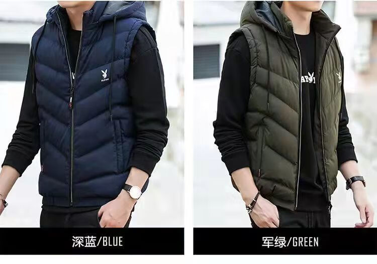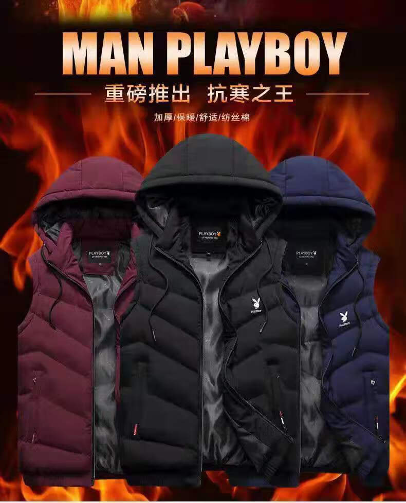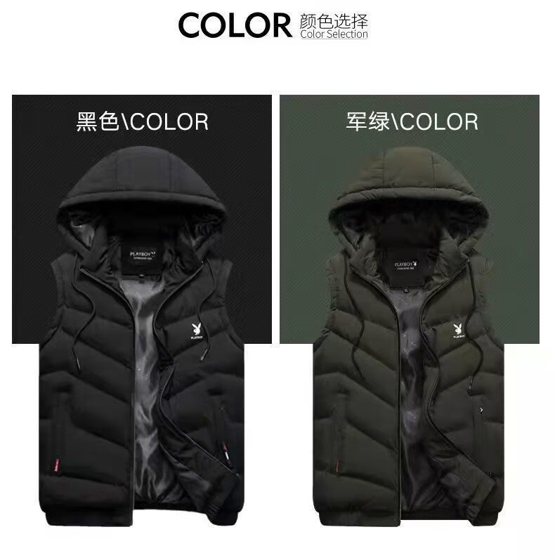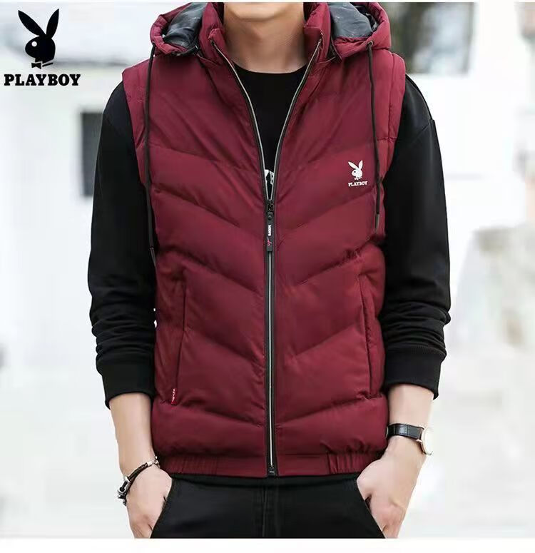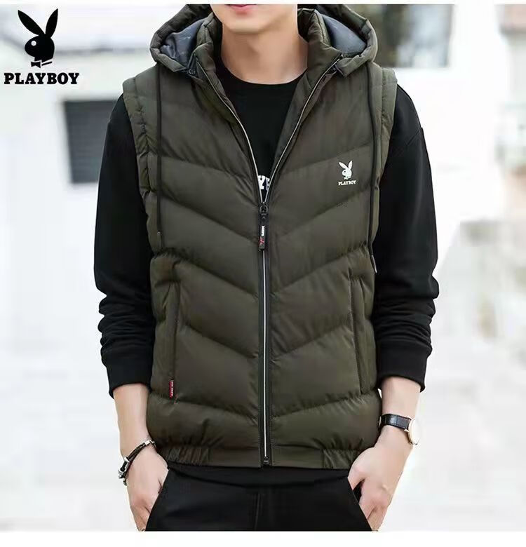 Playboy Playboy Down Cotton Vest Men's Autumn and Winter Jacket Warm and Slim-fitting Korean Style Trendy Handsome Vest Vest 28010# Black 5XL Recommendation (170-185Jin Jin is equal to 0.5kg)