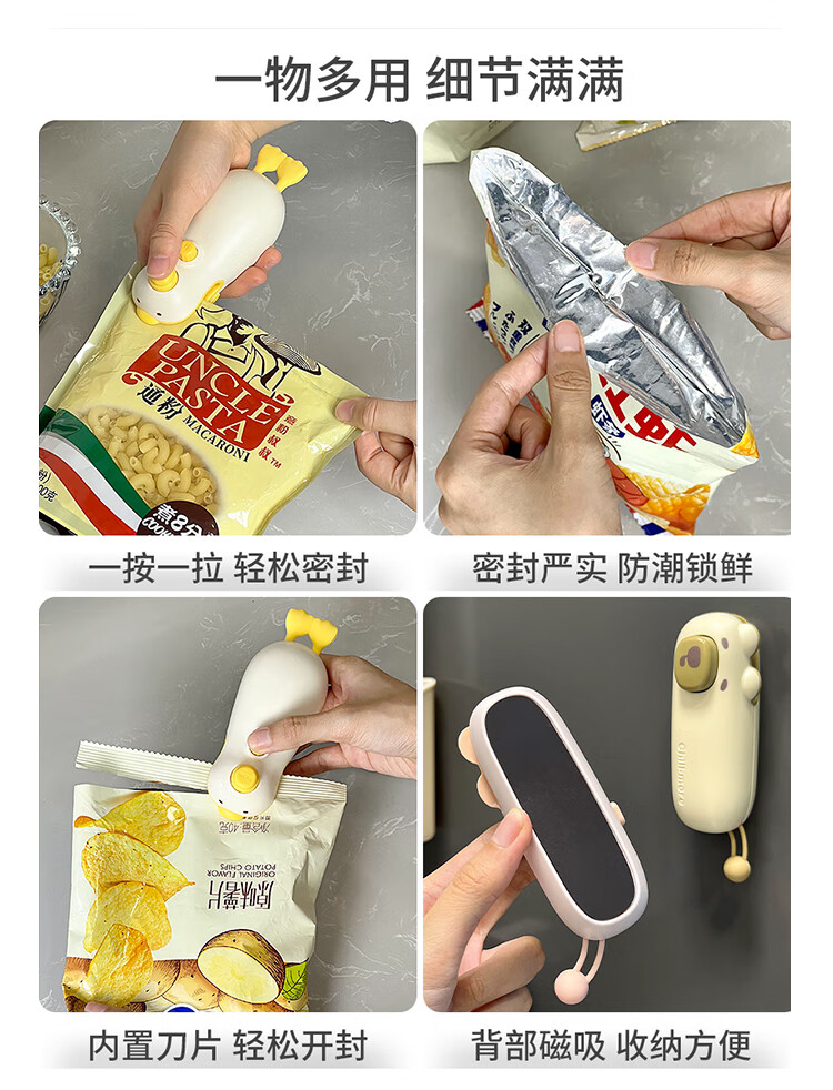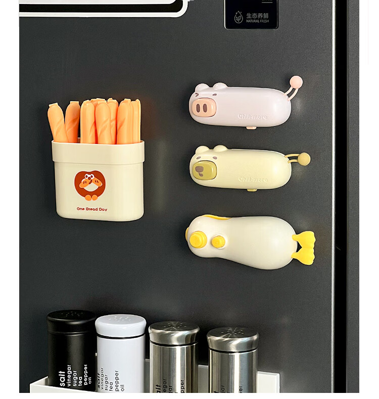 Hualeji cute magnetic food sealing clip kitchen small household vacuum sealing machine snack seasoning sealing clip refrigerator sticker cute sealing clip coffee bear