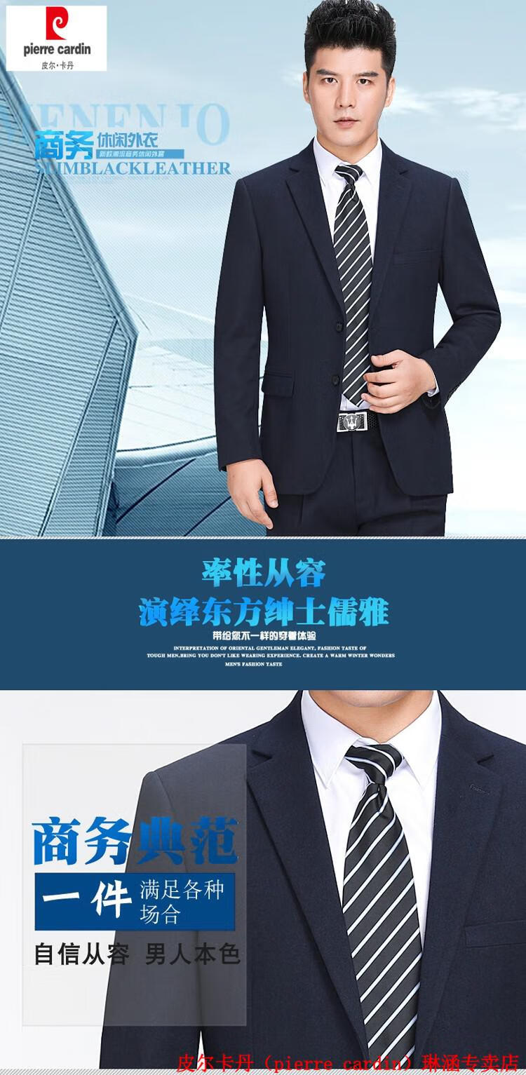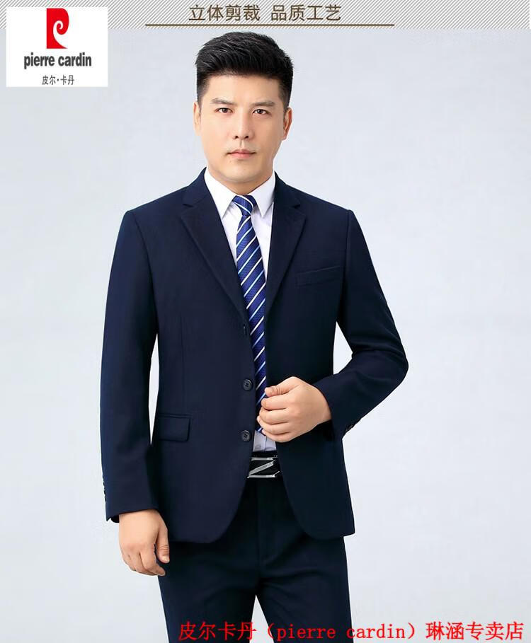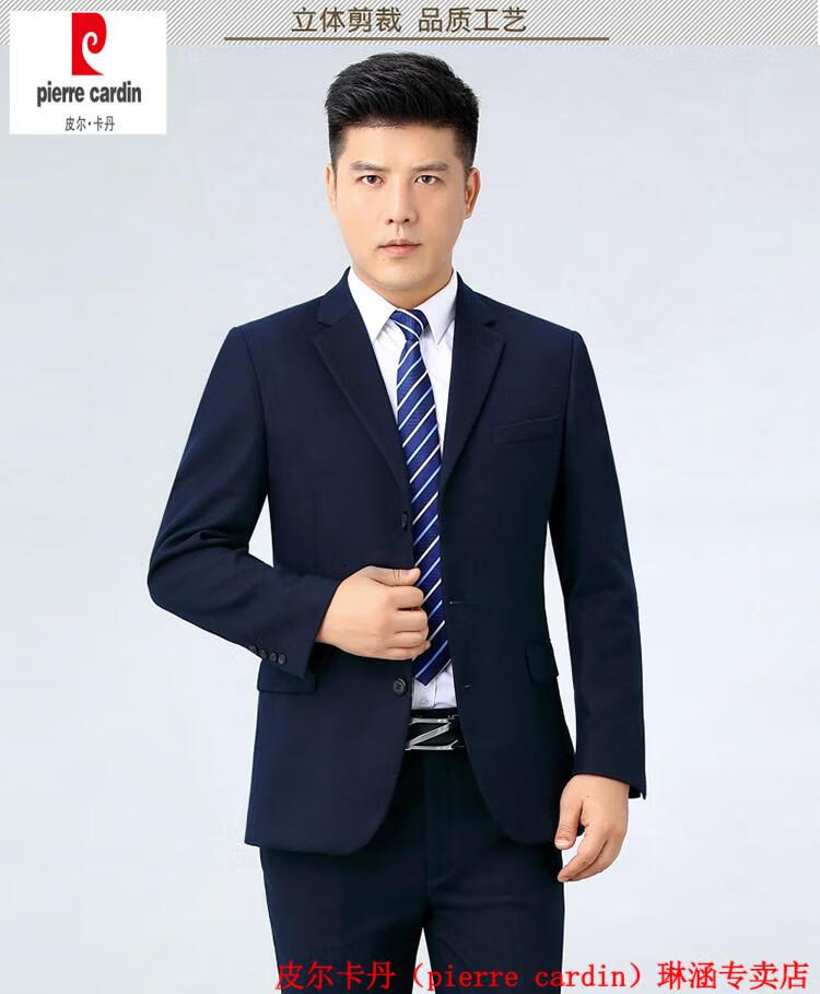 Pierre Cardin high-end brand thickened wool suit suit men's woolen suit middle-aged business administrative high-end professional formal wear thickened woolen navy blue two-button suit + pants 170-M size recommended 100-125 Jin Jin equals 0.5 kg