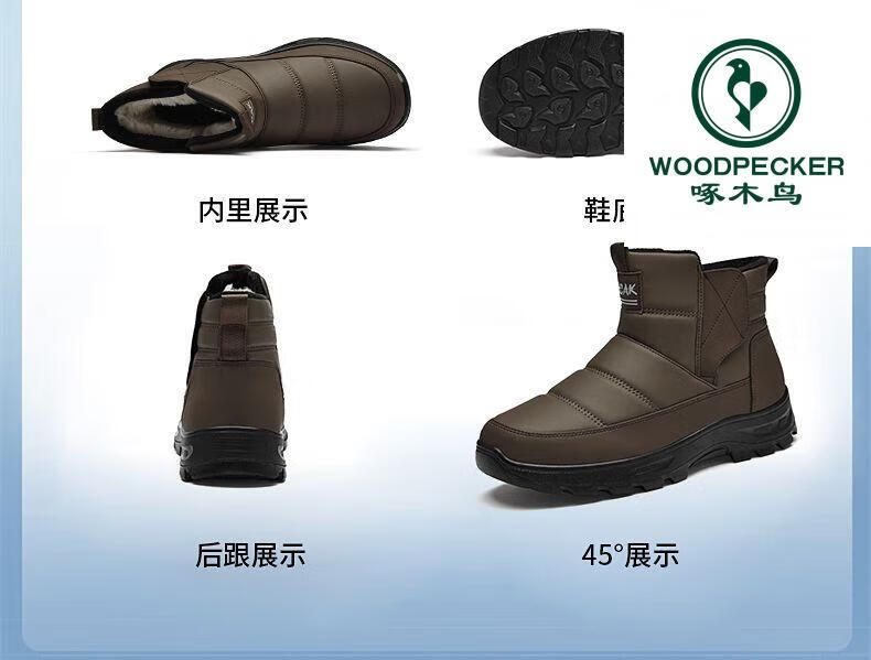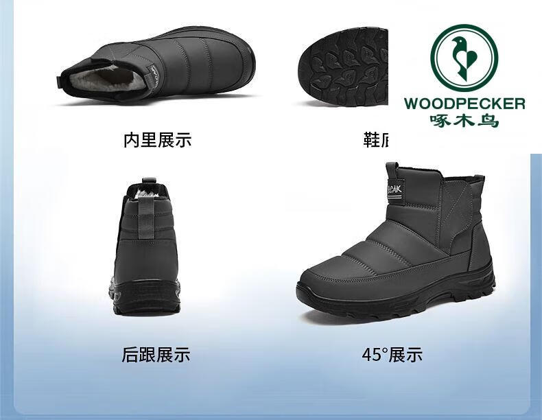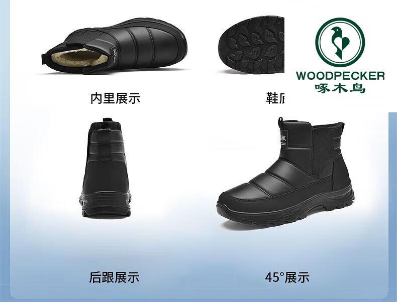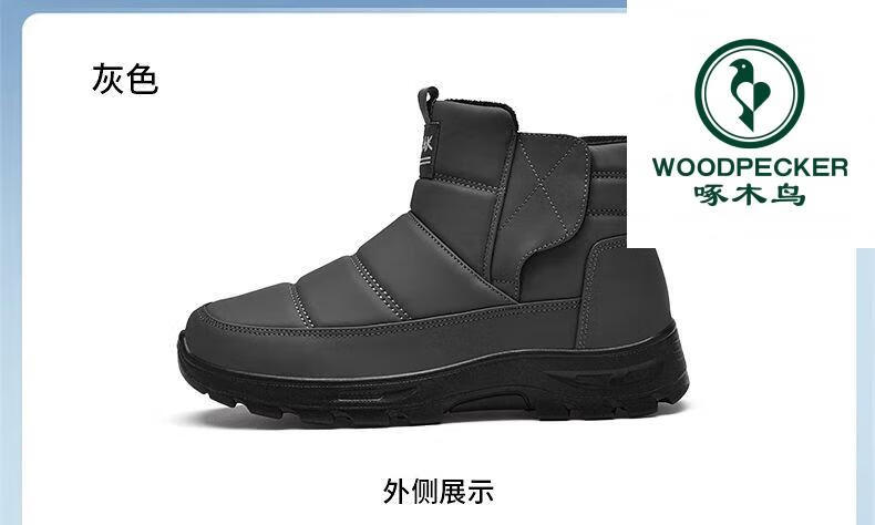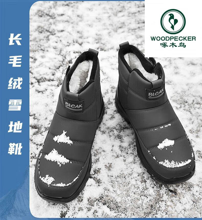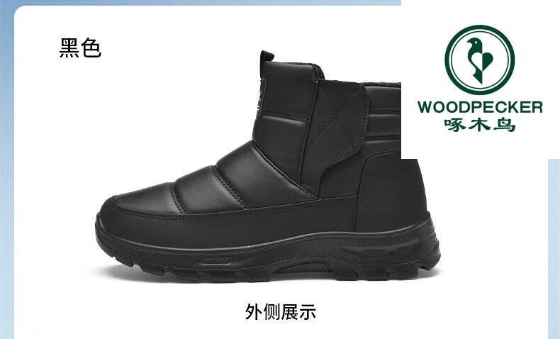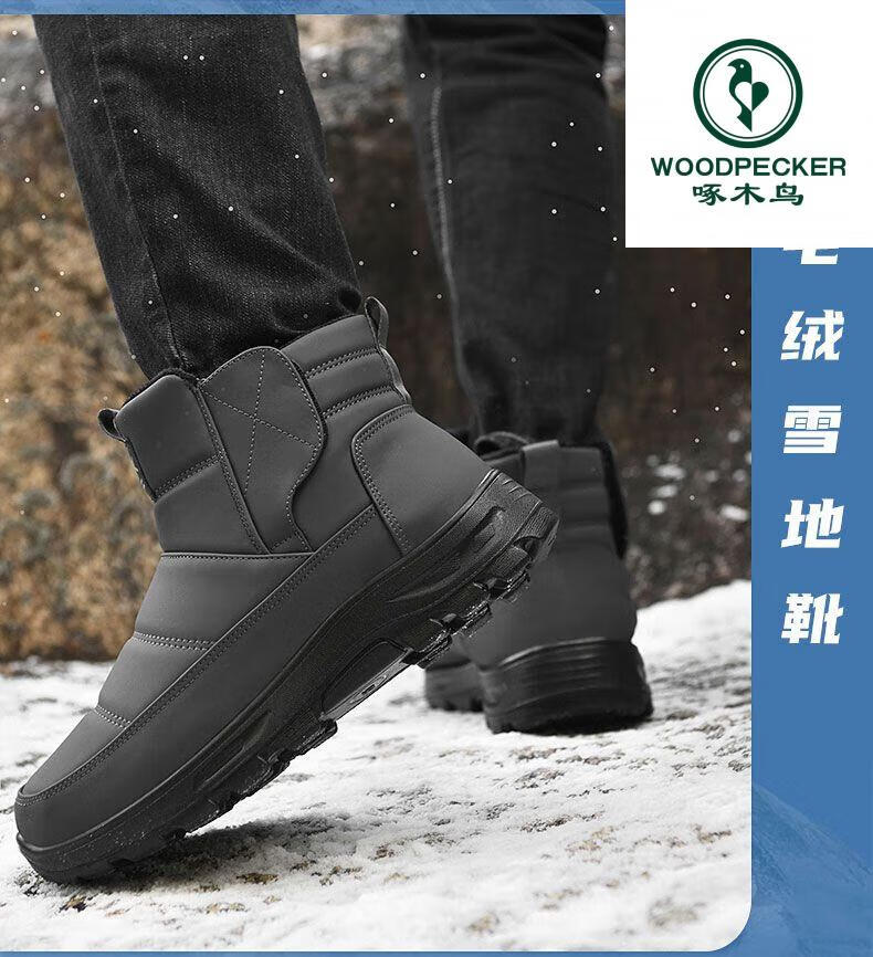 Woodpecker fishing riding anti-ski boots men's old Beijing cloth shoes winter old warm waterproof casual dad shoes black 38