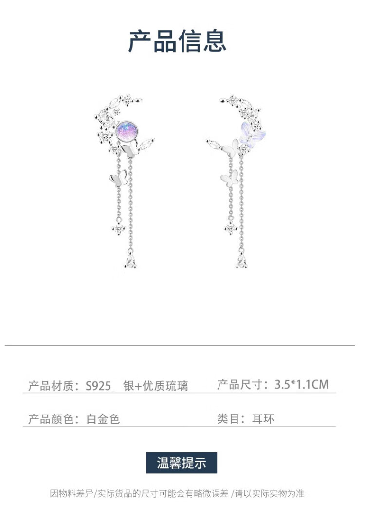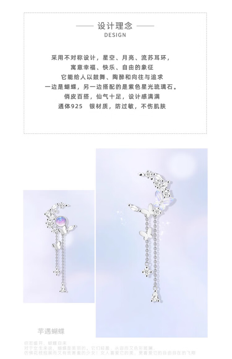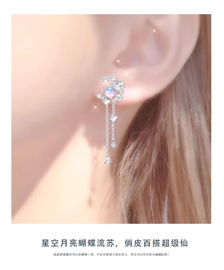 Shiloni light luxury tassel butterfly earrings, earrings for women, 925 silver Chinese Valentine's Day birthday gift for girlfriend and wife, starry sky butterfly earrings with pierced ears, next day delivery