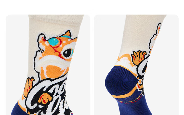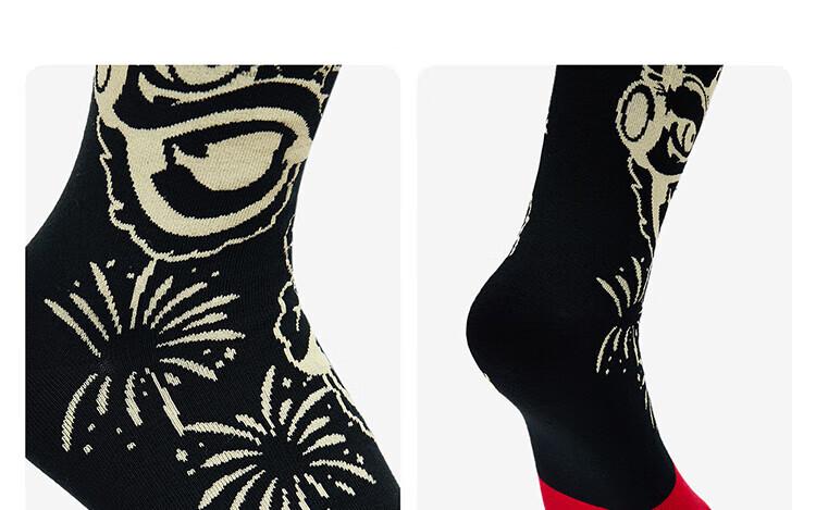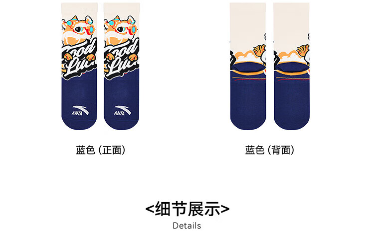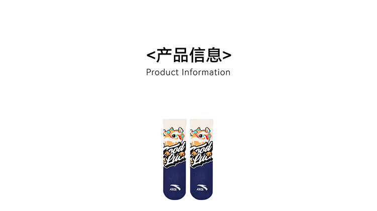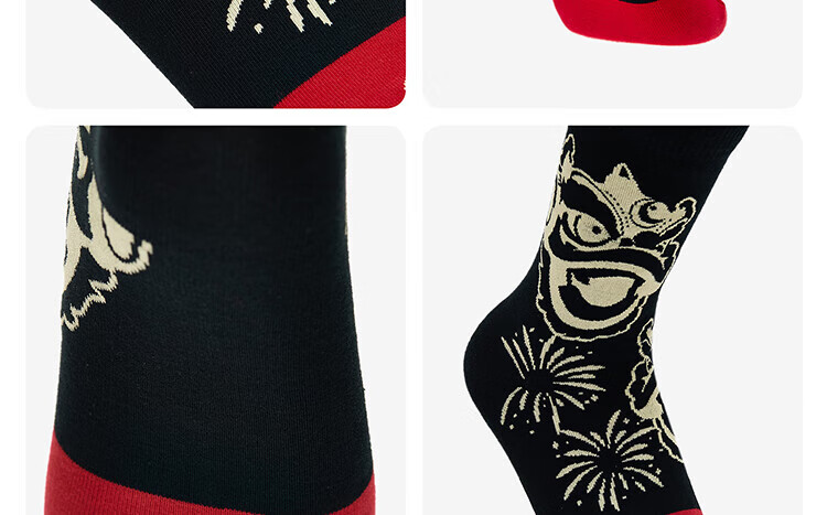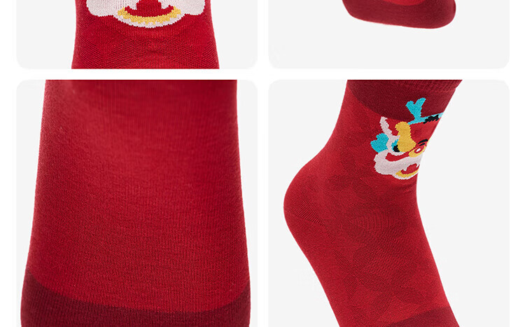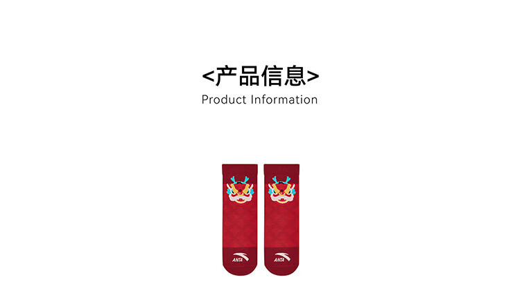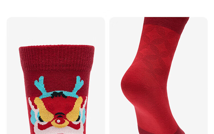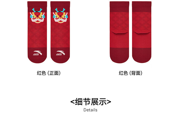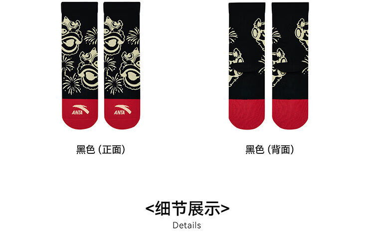 ANTA Children's Socks Antibacterial New Year Long Socks for Boys and Girls 2025 Spring New Year Style Red Trendy Printed Comfort Socks 1 Pair Black XL XL Recommended for 10 years and above