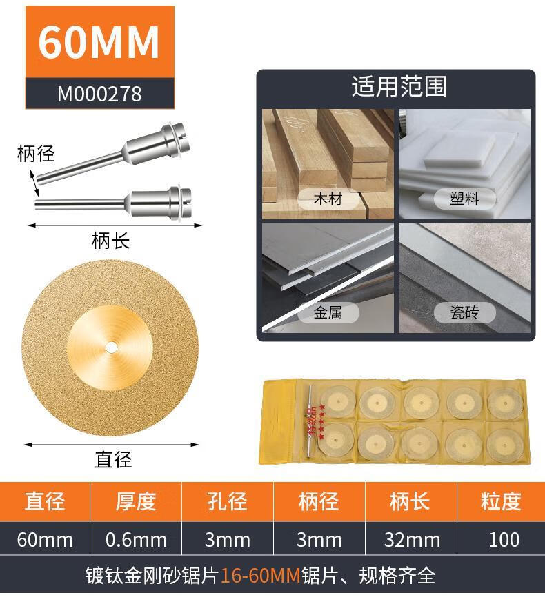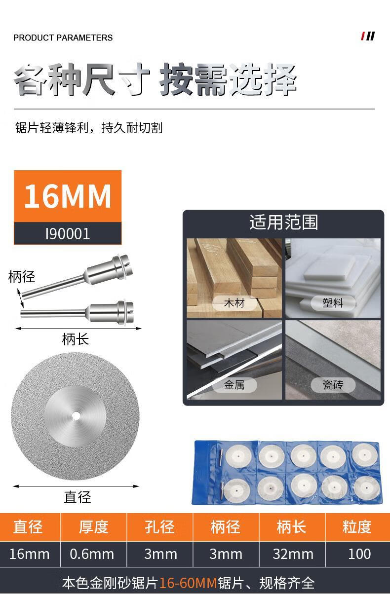 Super-hard emery cutting disc, electric grinding small slicing saw blade, beautiful seam clearing, glass jade polishing wheel grinding disc, emery grinding disc 16mm, 10 pieces + 2 rods