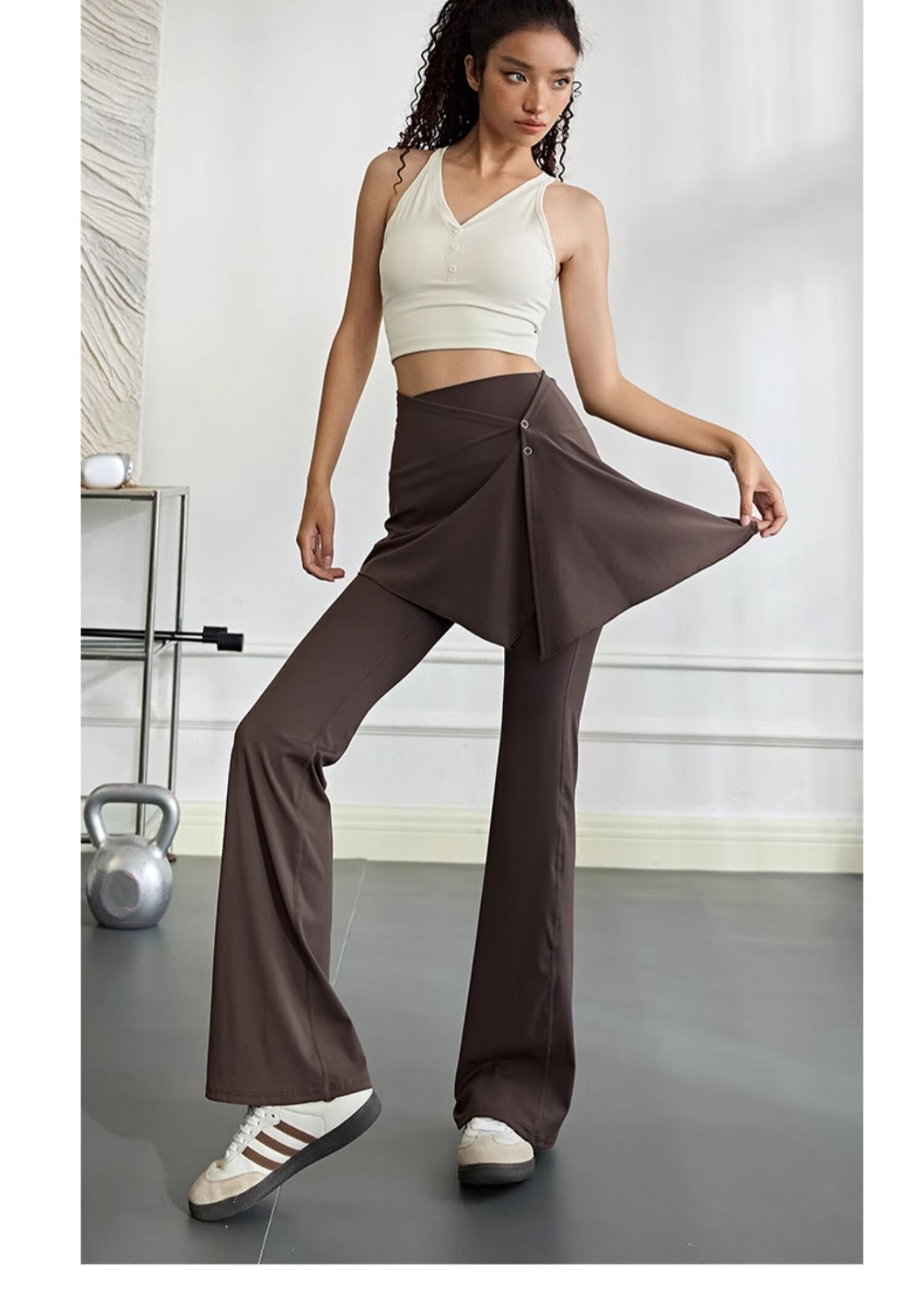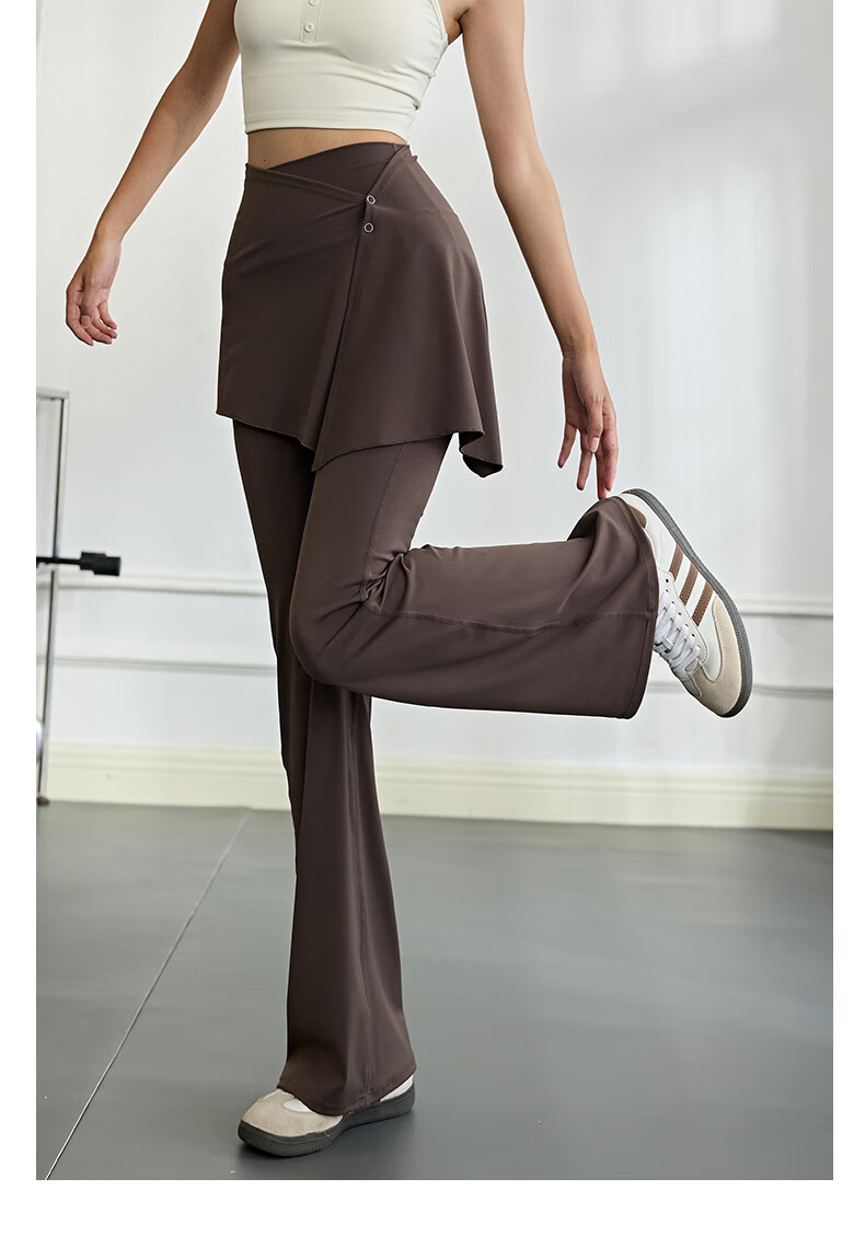 Dcw hip-covering yoga pants women's anti-embarrassment fitness pants skirt can be worn outside Pilates training slimming micro-flared pants new style cranberry pink S
