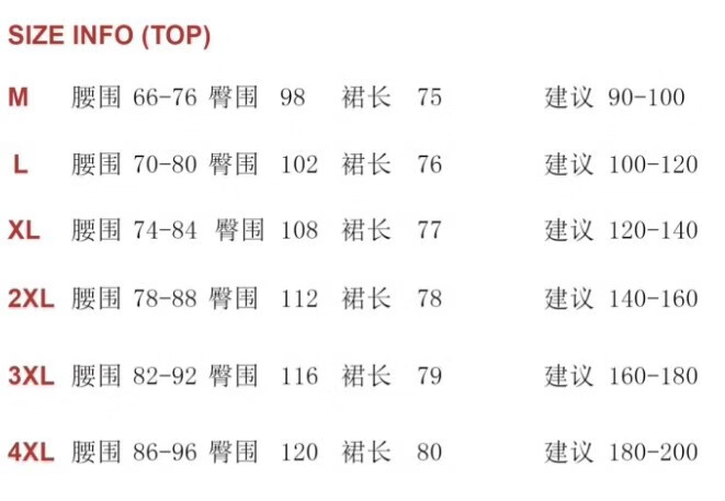 China (cm) 160-165/84-86 165-170 / 88-90 167-172 / 92-96 168-173 / 98-102 170-176 / 106-110