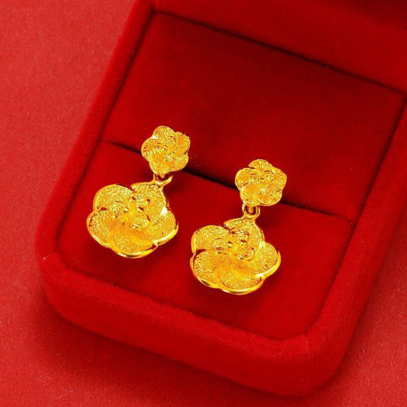GOYN old Phoenix gold store style sand gold earrings tin gold earrings new women's transfer bead earrings 18k gold wedding gift yellow star and moon earrings