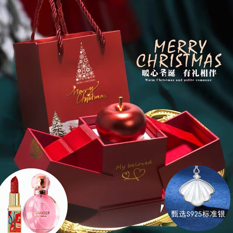 Chaoyan Duixi 520 Valentine's Day gift for girls, friends and wives, romantic and creative high-end necklace, lipstick, perfume gift box, lifting apple box-S925 silver necklace