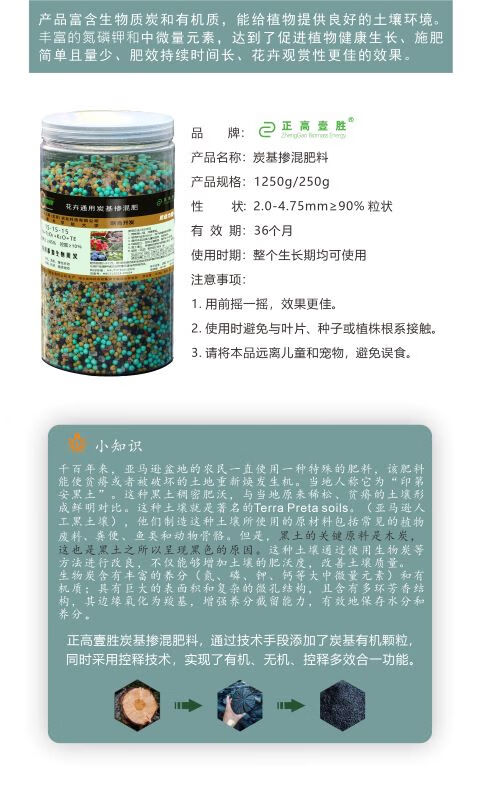ZHENGGAO BIOMASS ENERGY carbon-powered carbon-based blended flower fertilizer for home potted flowers organic and inorganic controlled-release multi-effect disease resistance and stress-resistance synergistic carbon-powered fertilizer No. 1 universal type 1250g