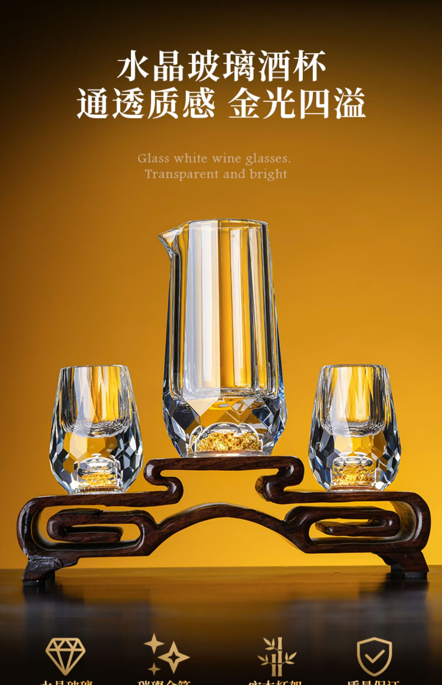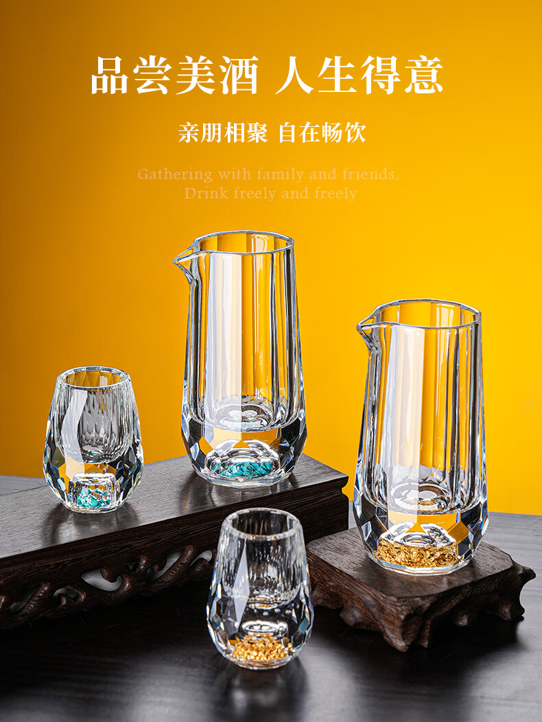 NOTICS crystal diamond faceted gold foil white wine glass set creative turquoise household glass wine dispenser one cup wine cup (1 pot 6 cups) diamond faceted turquoise style
