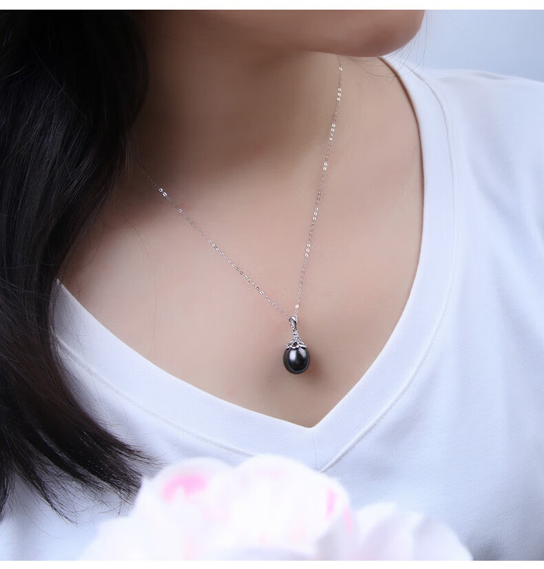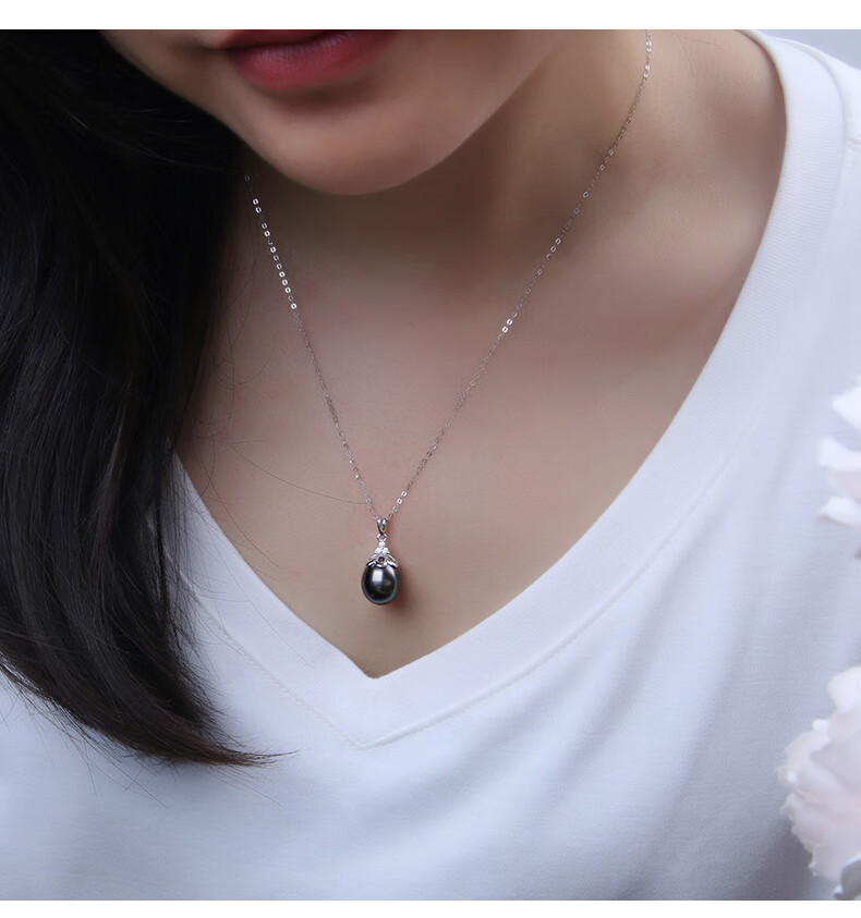 Mi Yan Hai Tahiti Black Pearl Pendant Single Black Pearl Necklace Pendant S925 Silver for Wife and Girlfriend 12-1 10-11mm