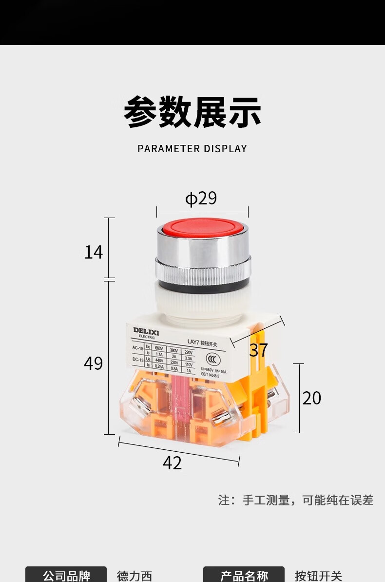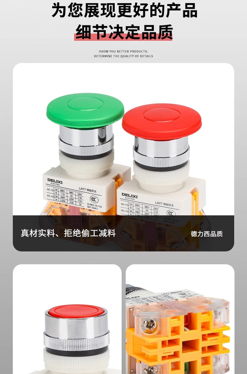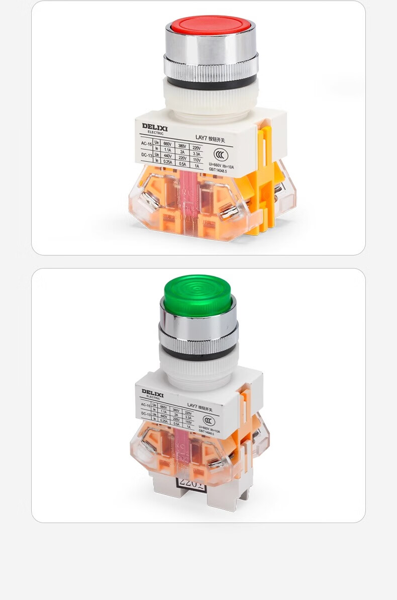 Delixi LAY7-11BN switch button power supply self-resetting push-type self-locking start flat knob with light LAY7-11BN red self-resetting flat button