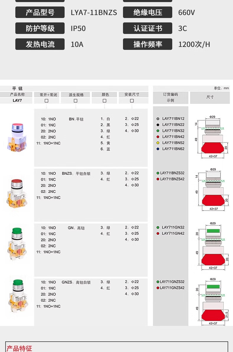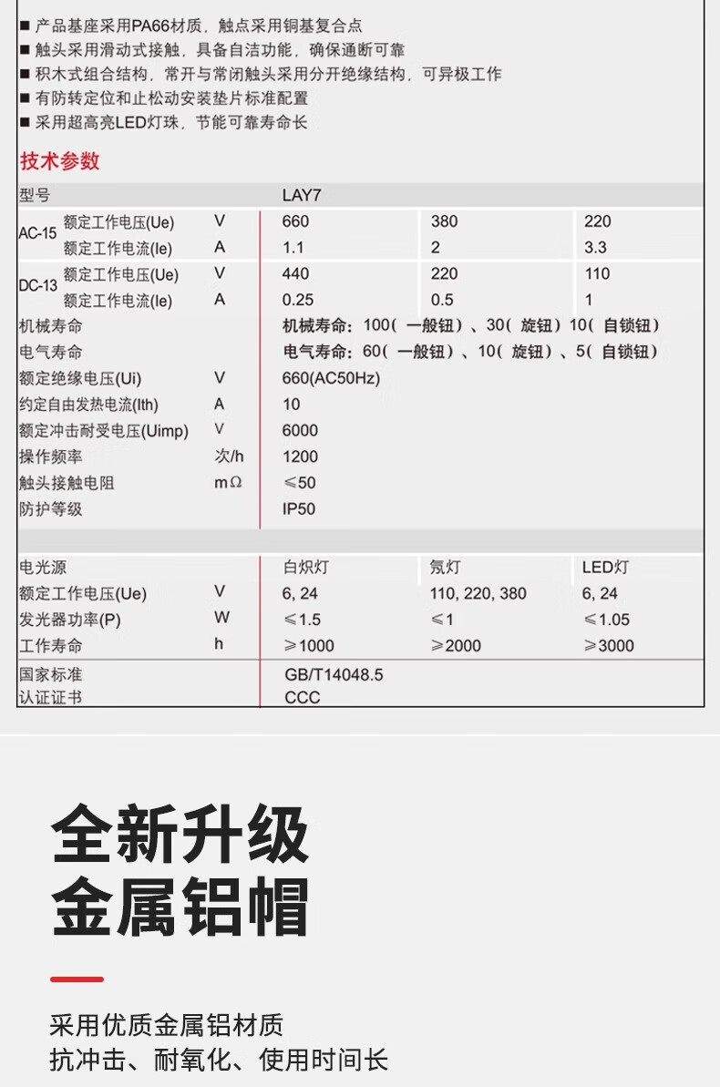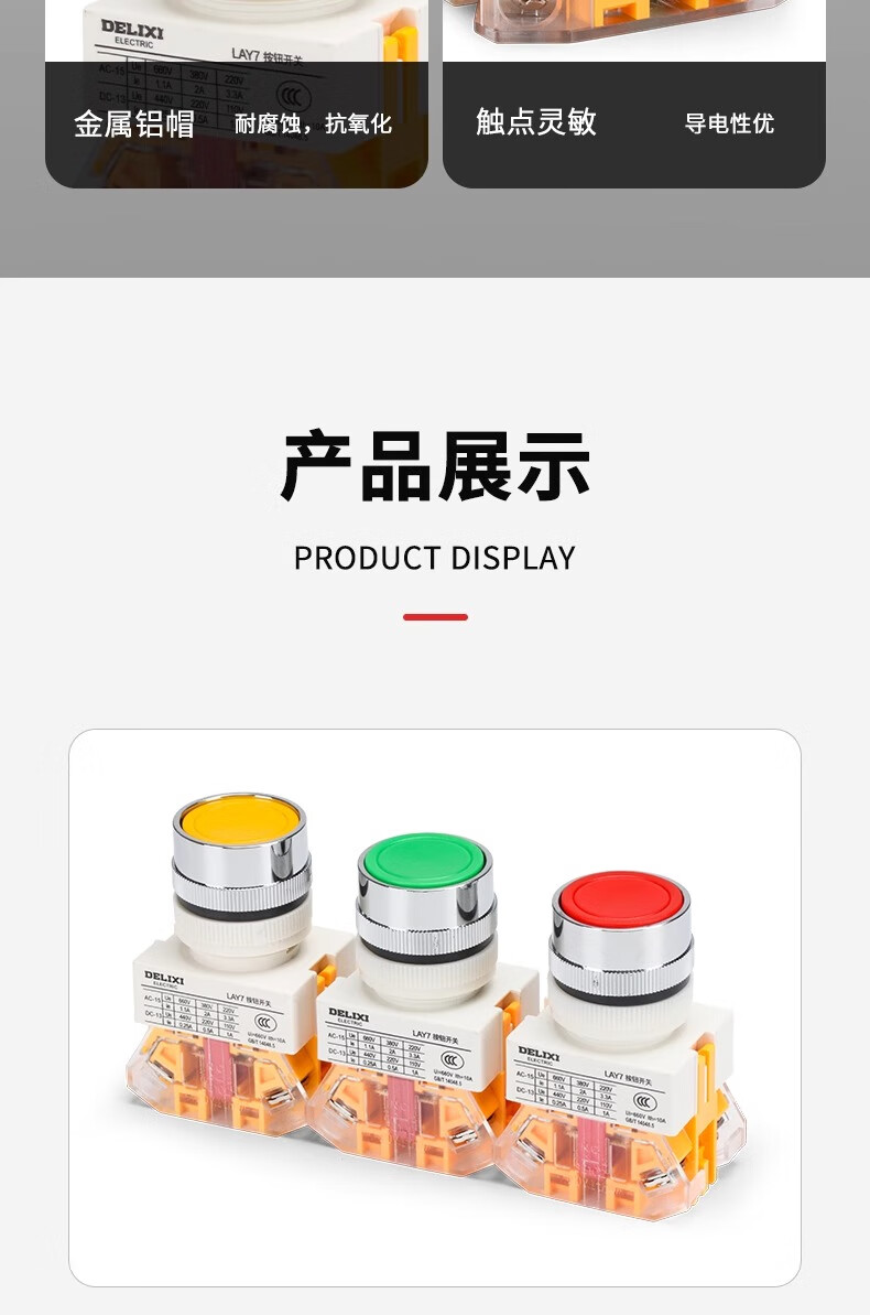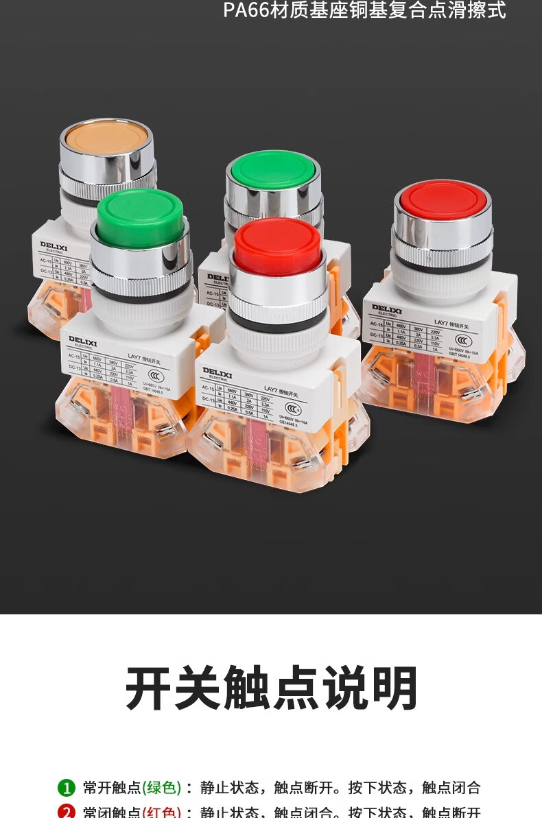 Delixi LAY7-11BN switch button power supply self-resetting push-type self-locking start flat knob with light LAY7-11BN red self-resetting flat button
