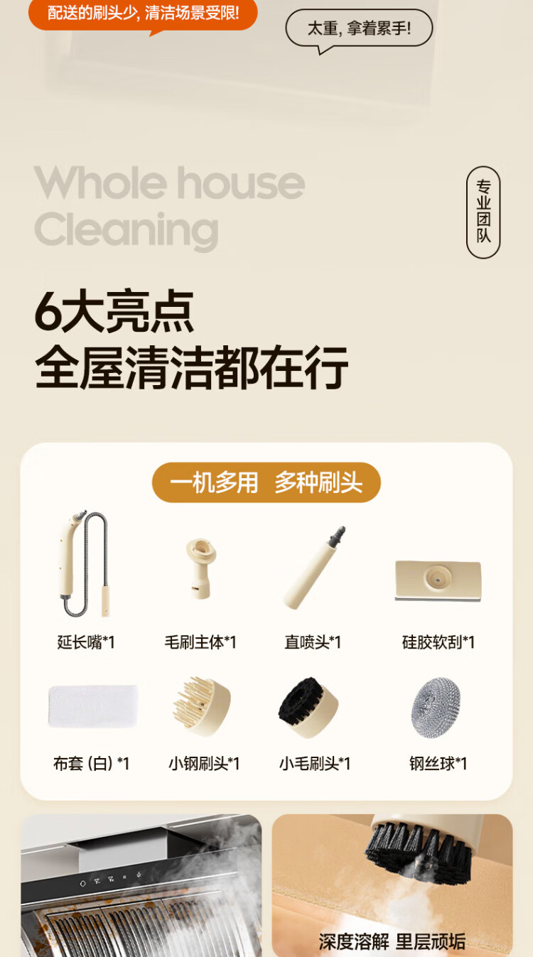 Mondorf high temperature and high pressure steam cleaner cleaning machine household multi-functional portable whole house kitchen range hood air conditioning cleaning machine multi-function all-in-one handheld steam mop high temperature steam five-in-one set one machine multi-purpose whole house cleaning