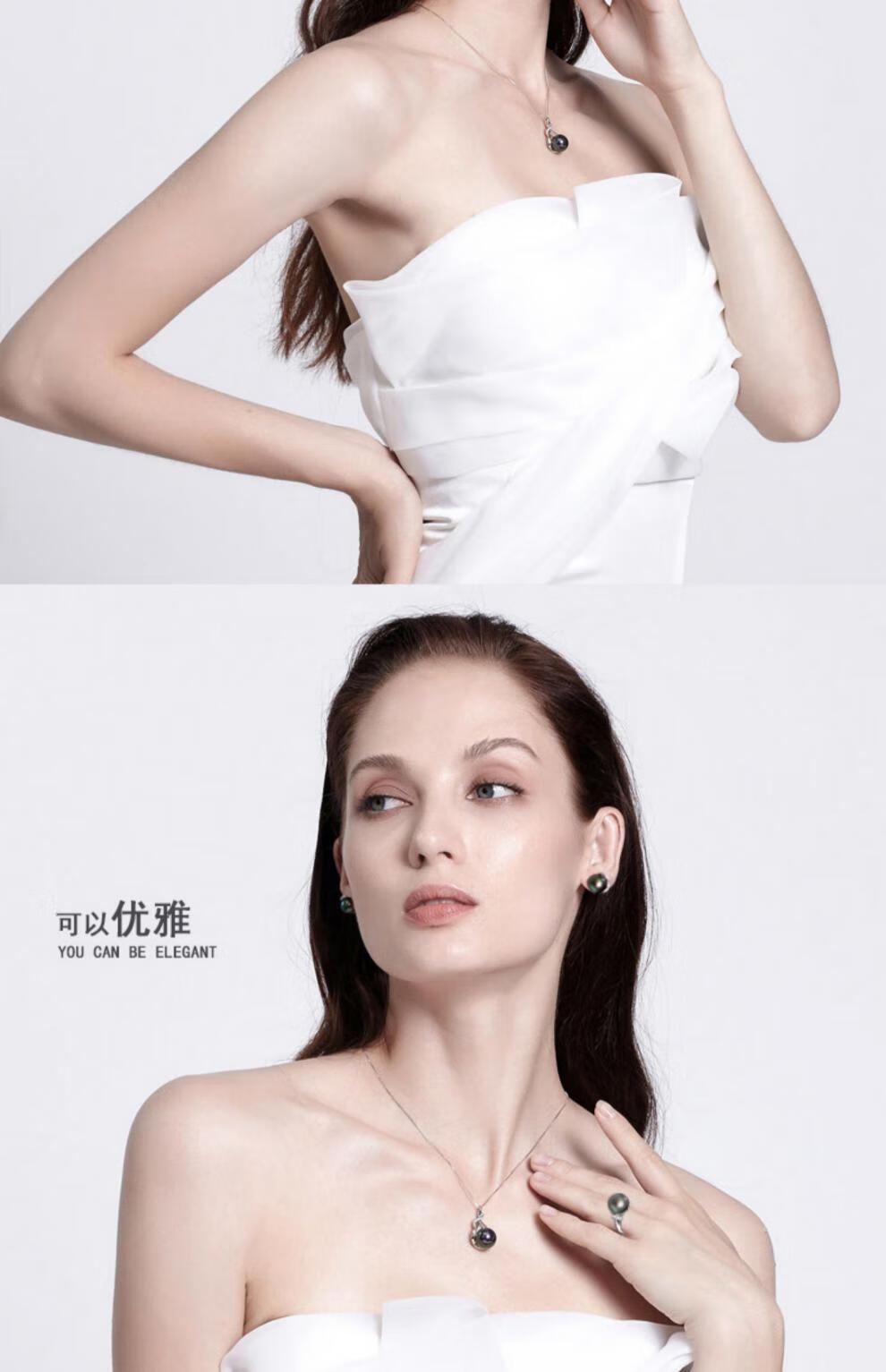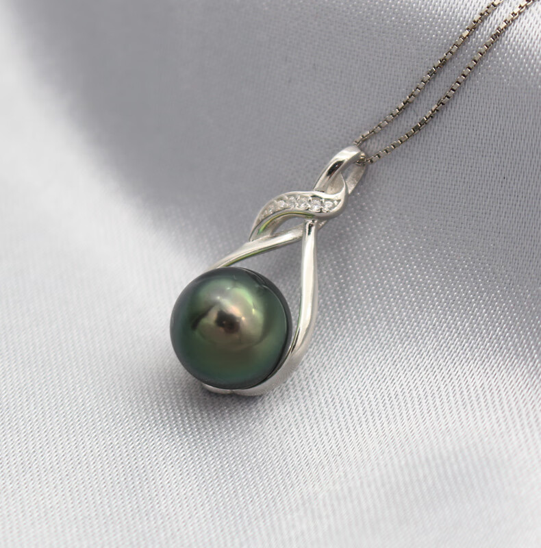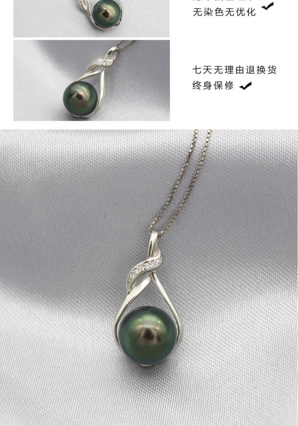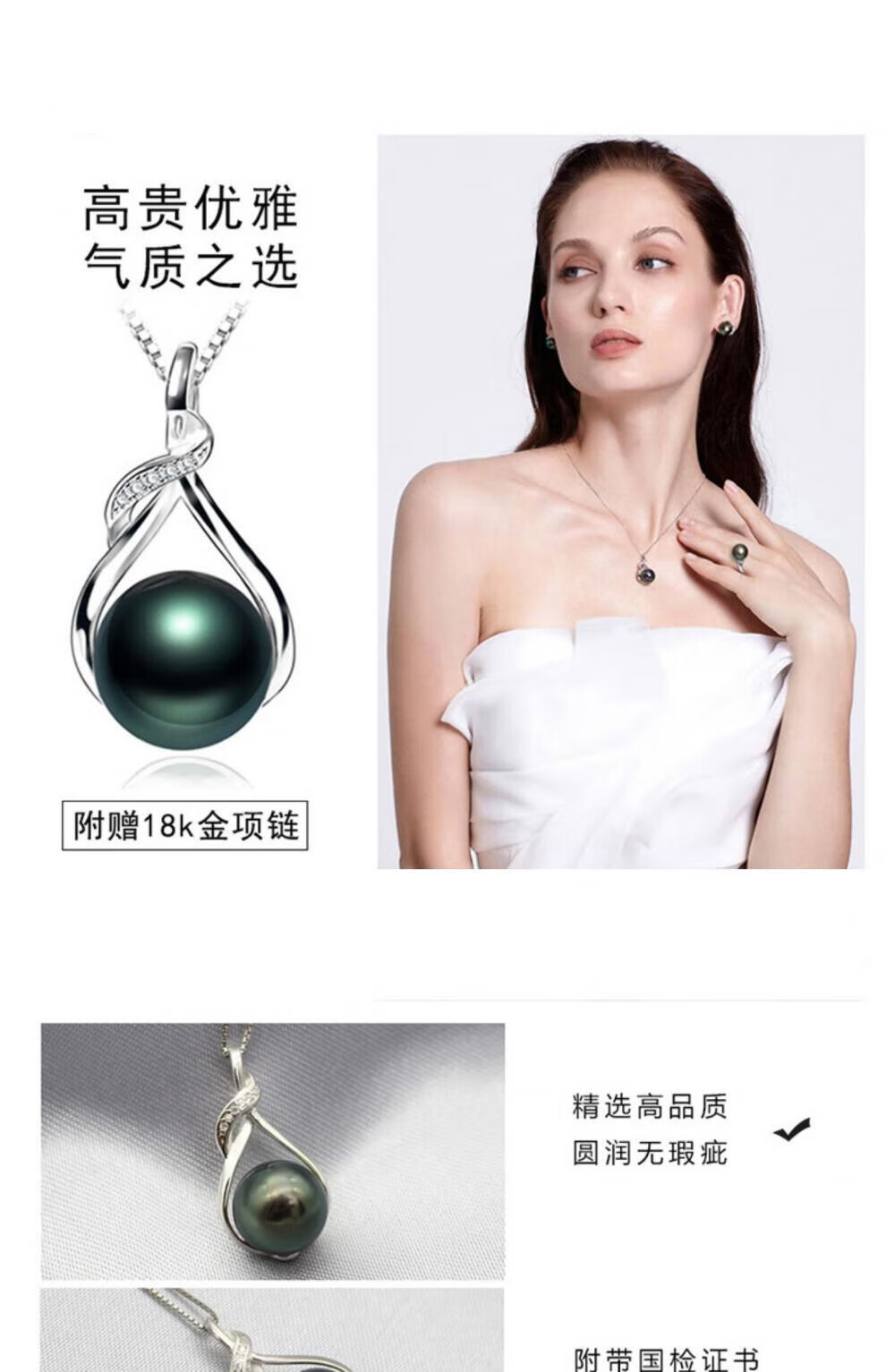 Hande Tahitian seawater black pearl pendant with 18k gold necklace, gift for lover or mother, about 11mm, comes with 18 items, necklace + gift box