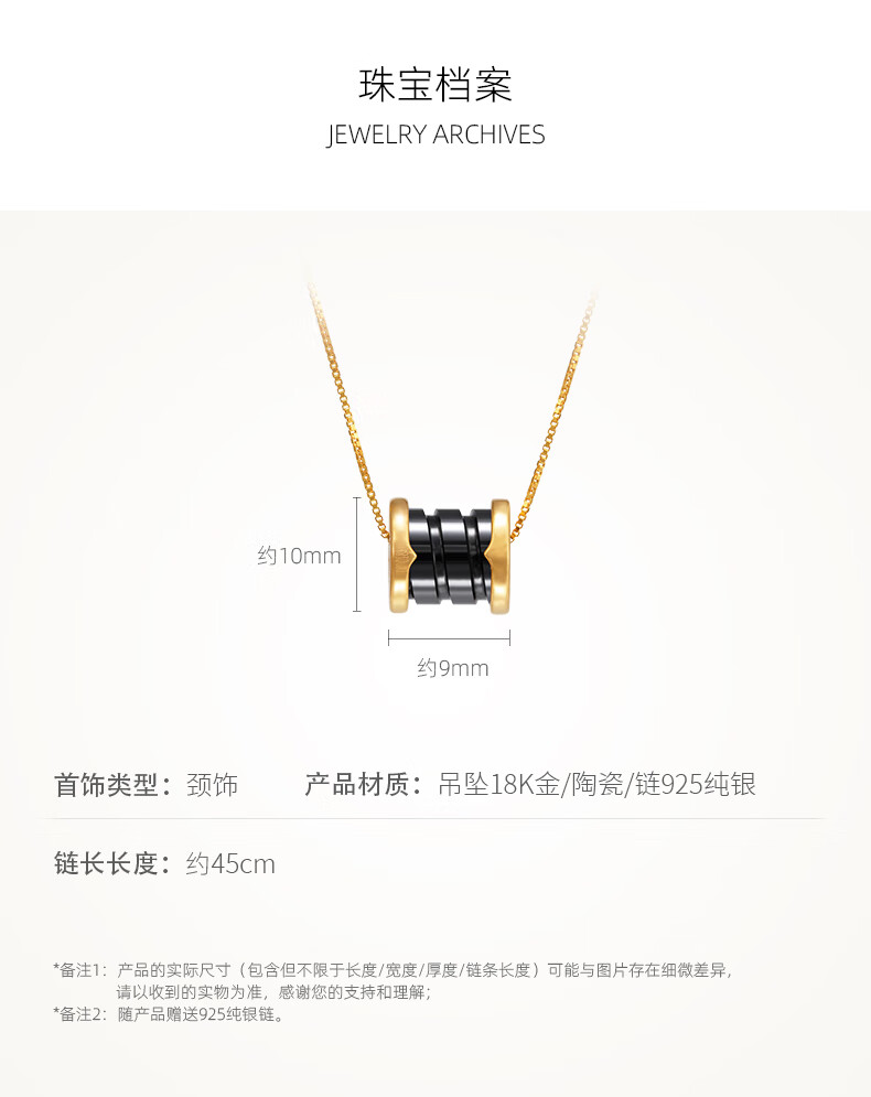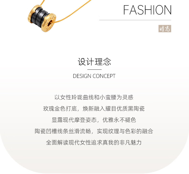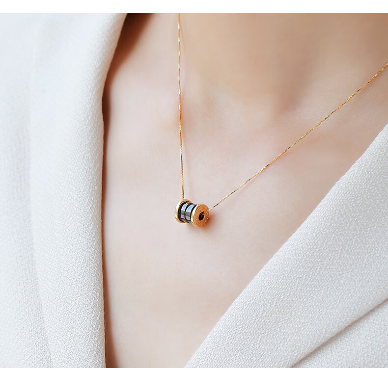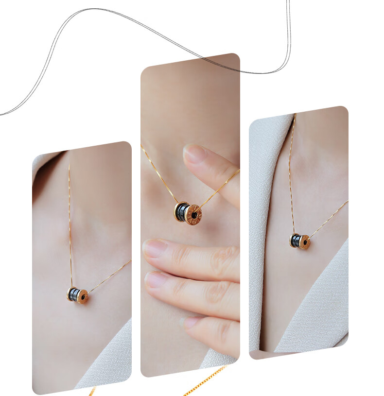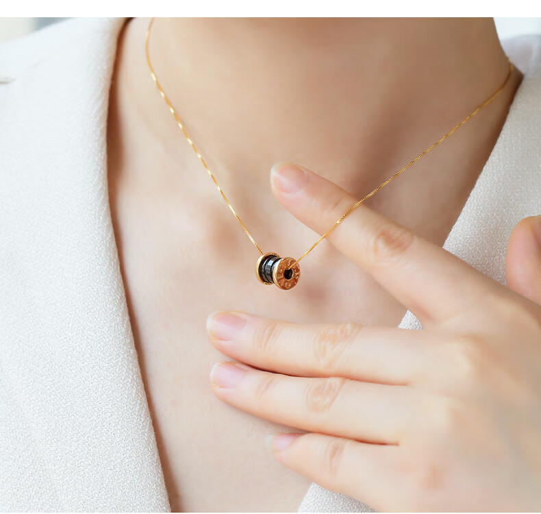 Mi Yanruien Diamond 18k Rose Gold Black Ceramic Small Waist Pendant Color Gold Necklace Women's Clavicle Chain