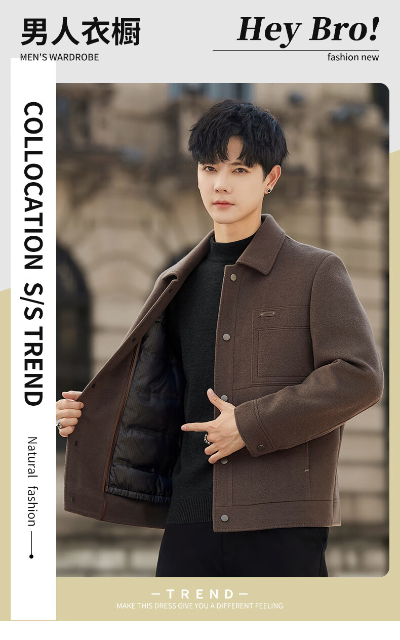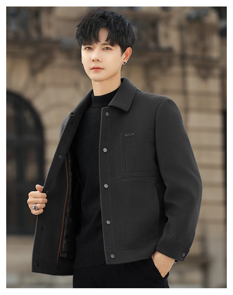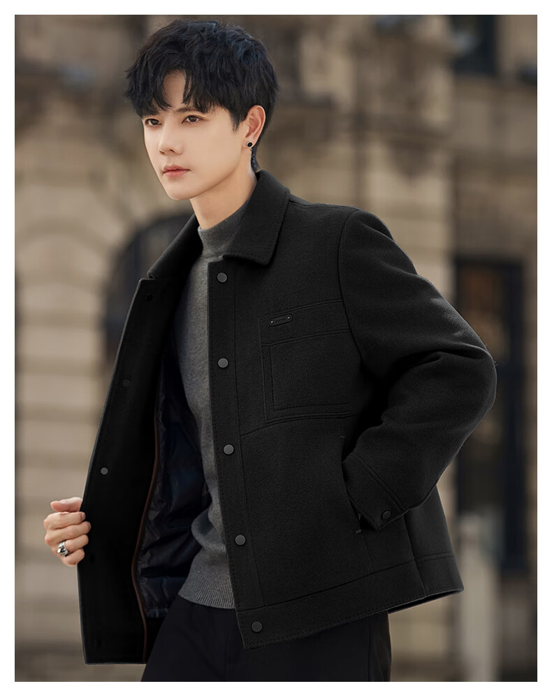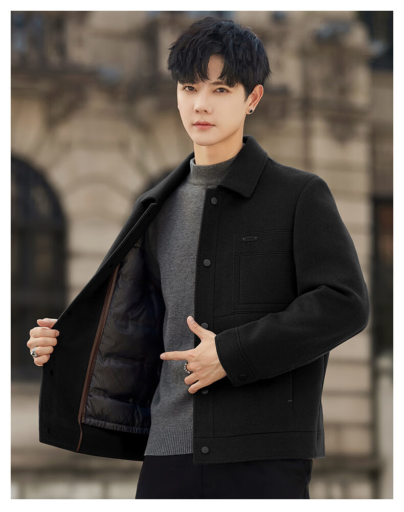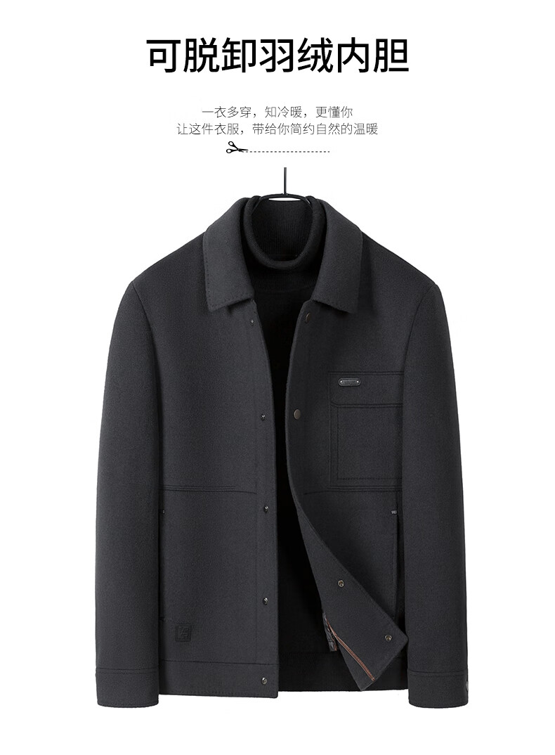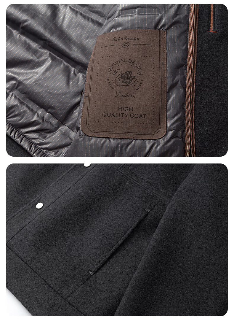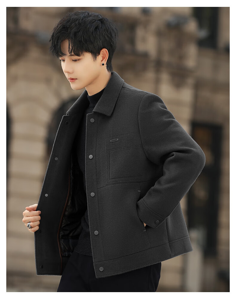 ROMON Woolen Coat Men's Autumn and Winter Down Jacket Men's Business Casual Removable Duck Down Liner Wool Wool Coat Men Caramel Color Removable Duck Down Liner 52/180