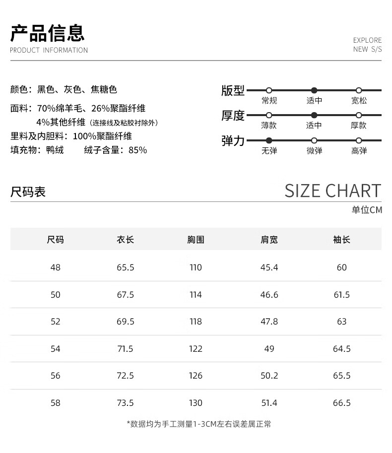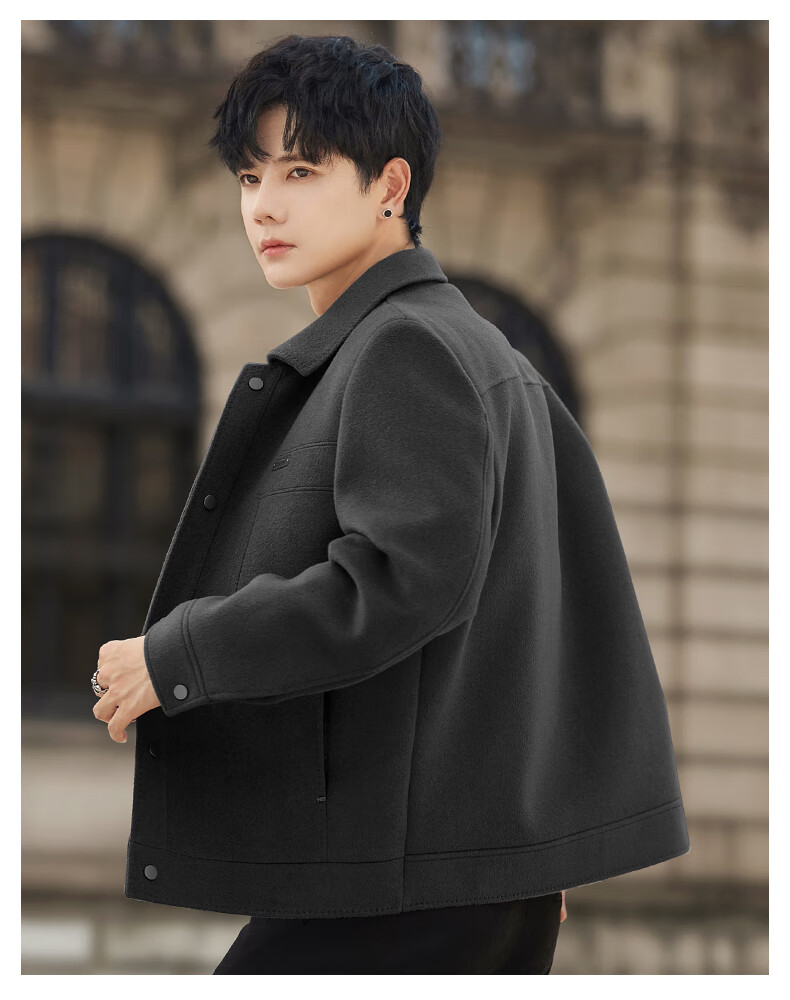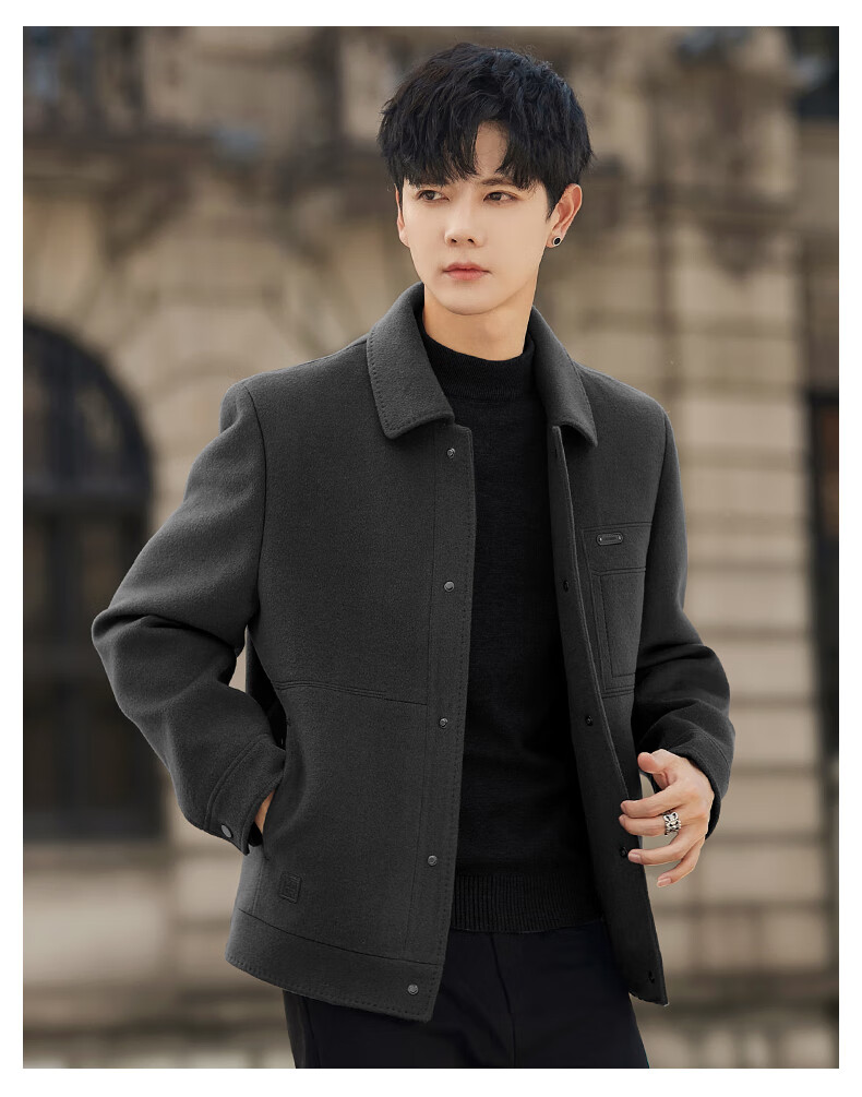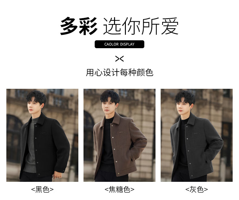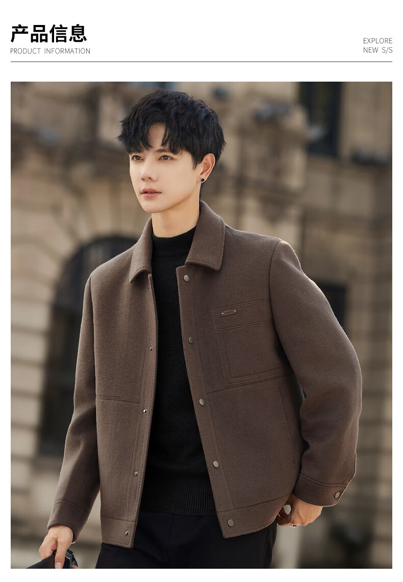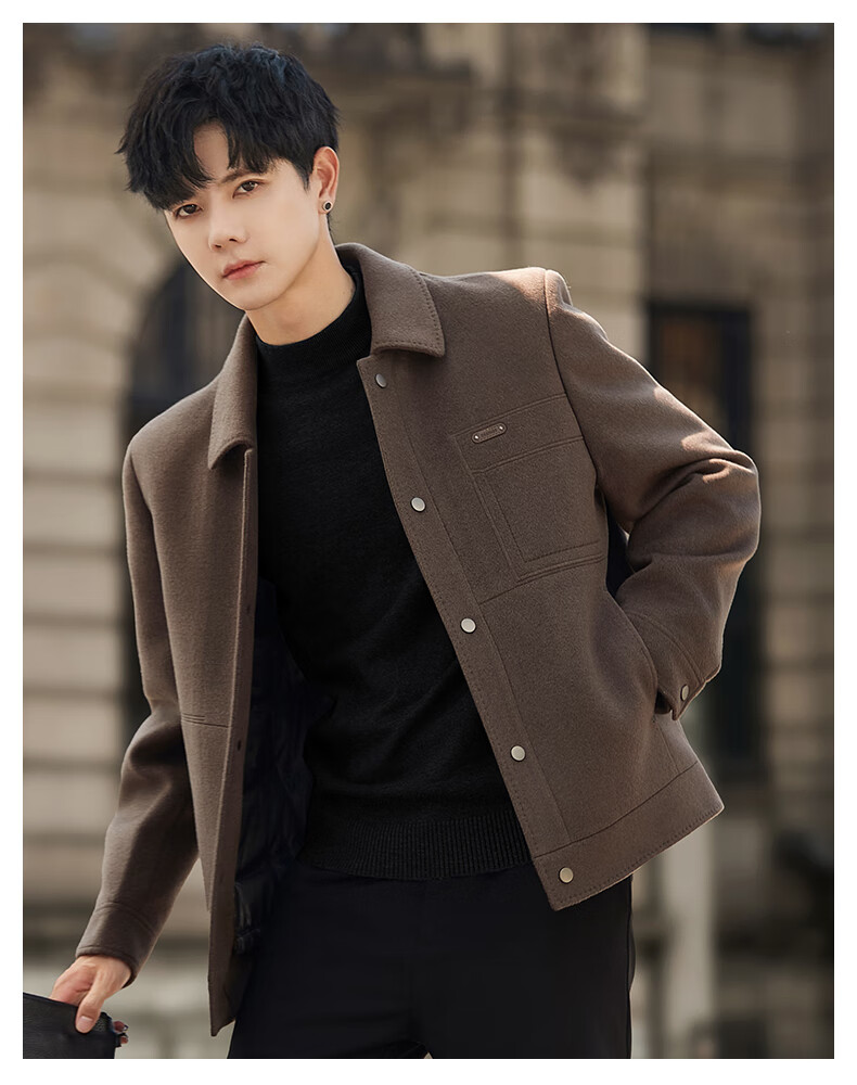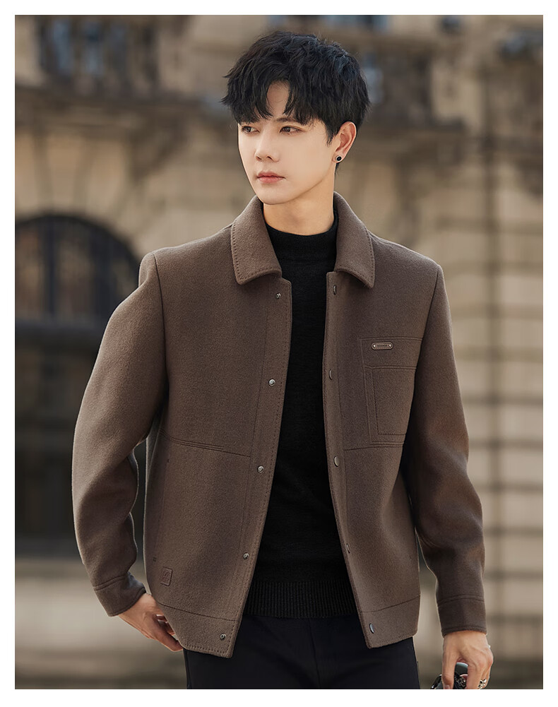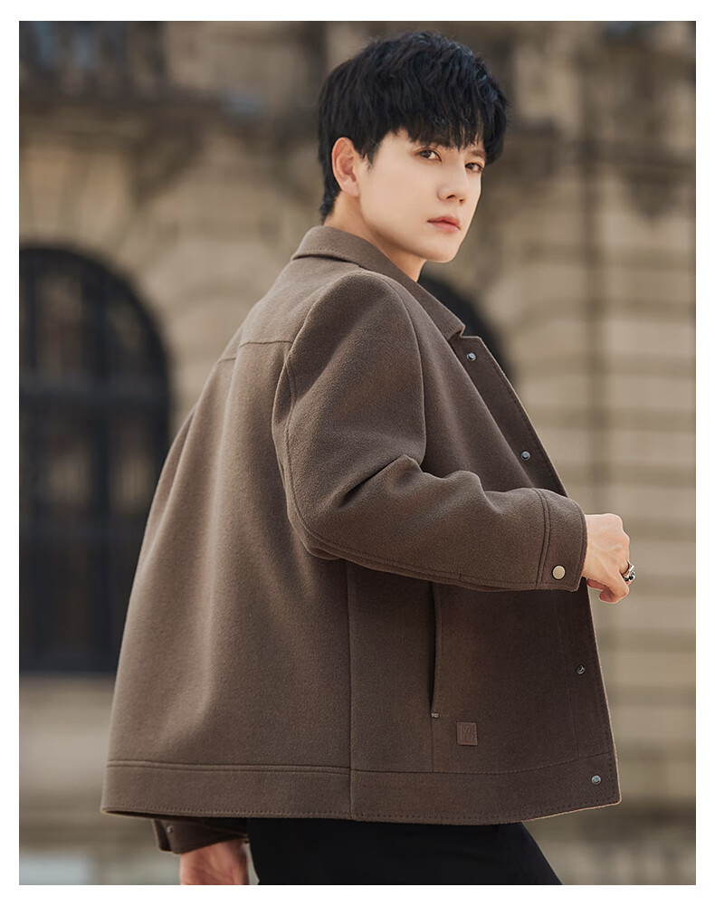 ROMON Woolen Coat Men's Autumn and Winter Down Jacket Men's Business Casual Removable Duck Down Liner Wool Wool Coat Men Caramel Color Removable Duck Down Liner 52/180
