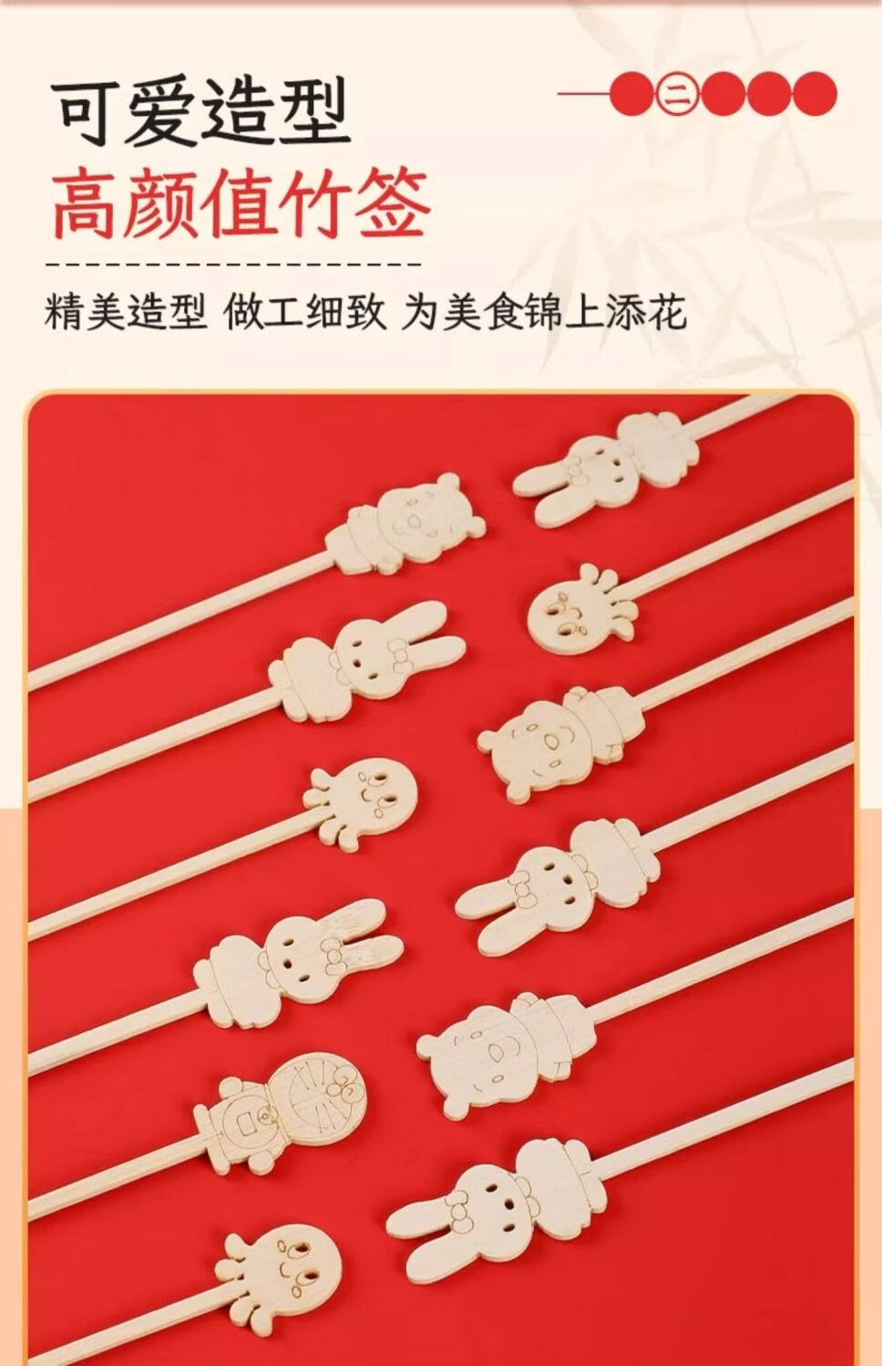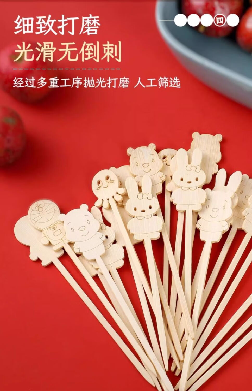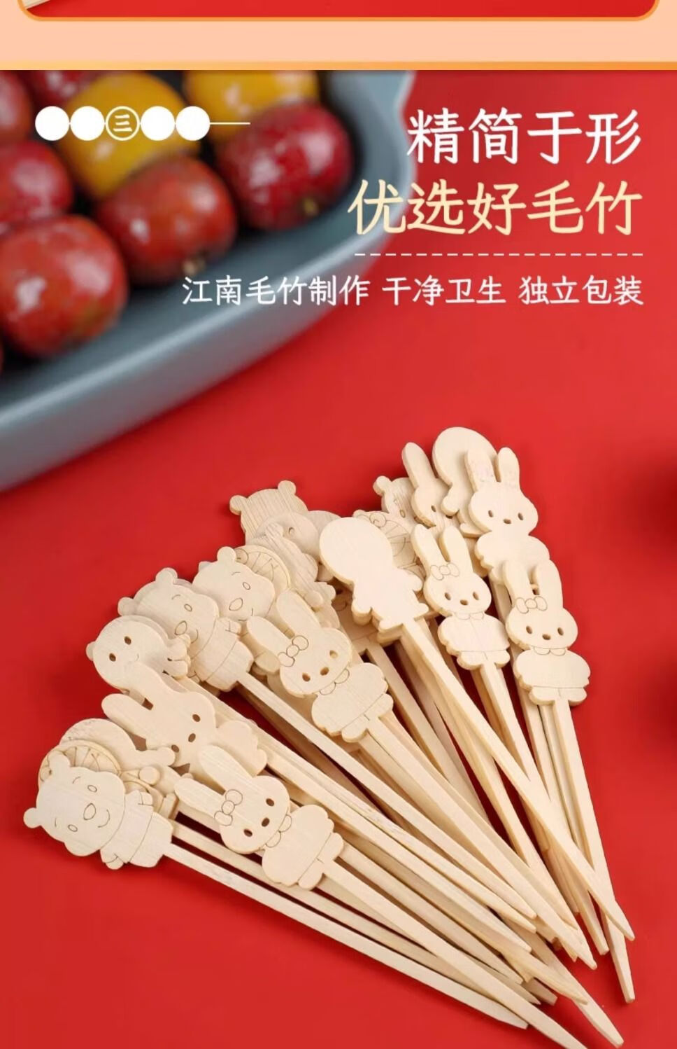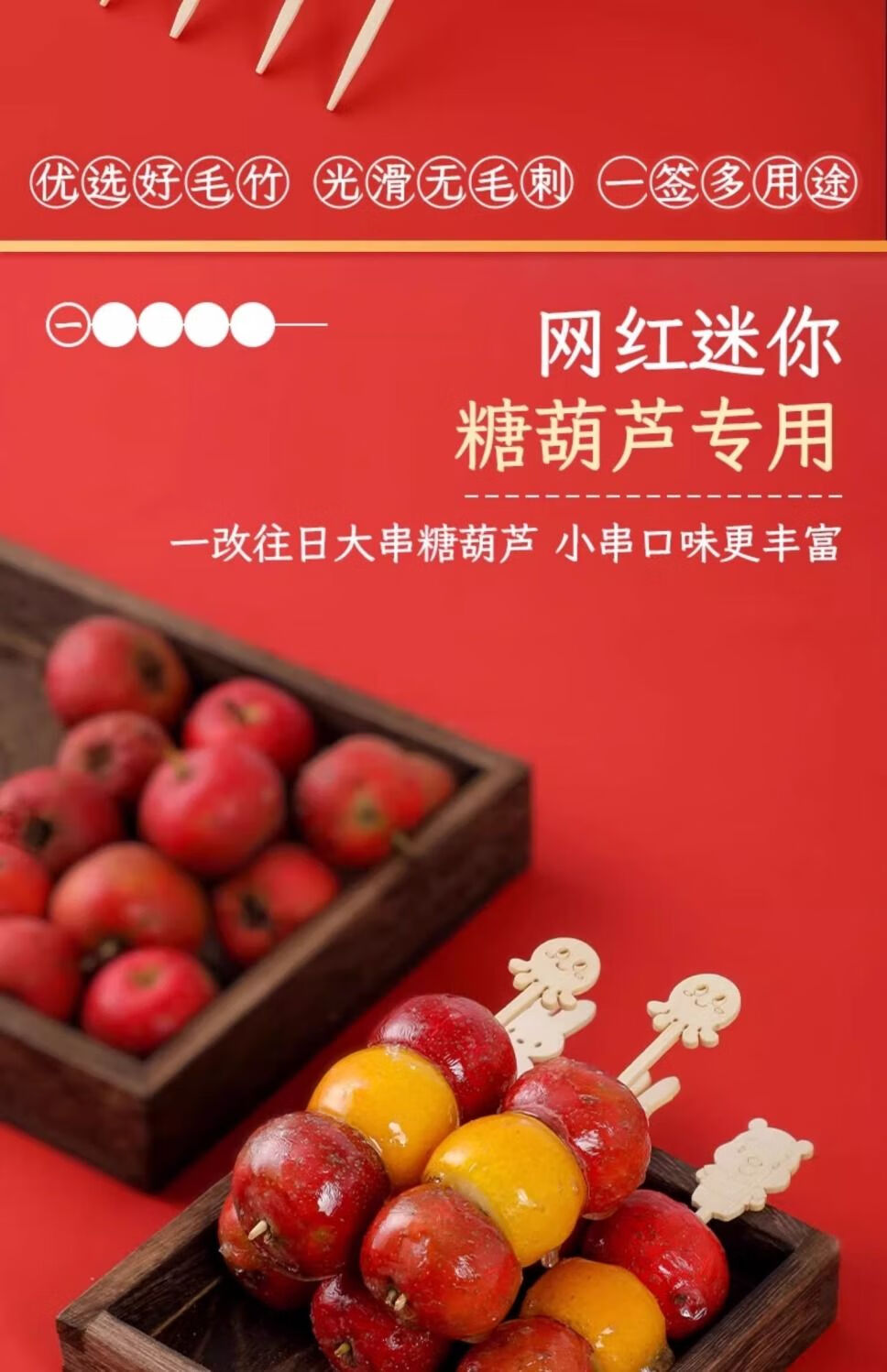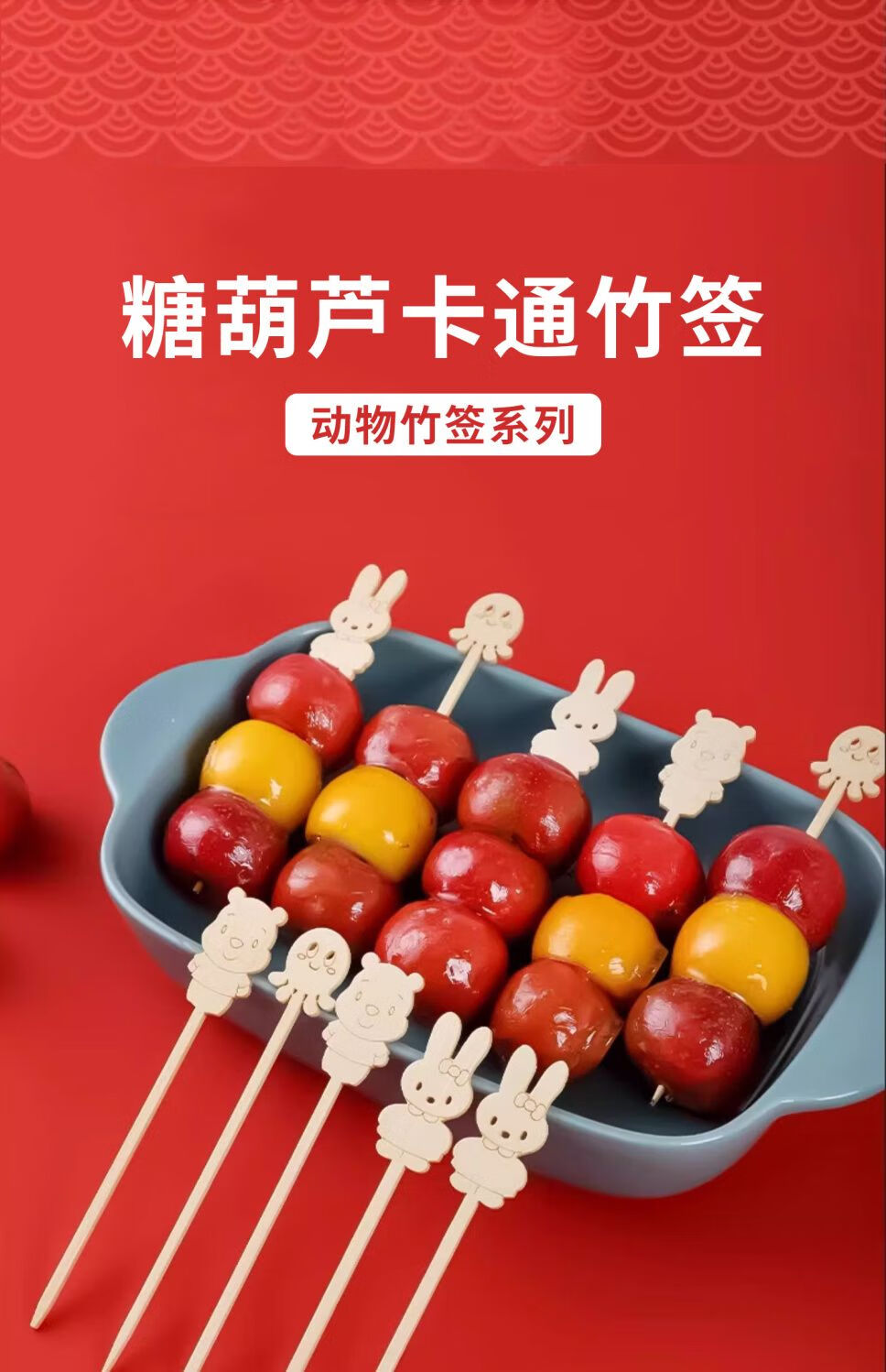 Yuexinke Cute Cartoon Bamboo Sticks Candied Haws Skewers Candied Haws Making Materials Children's Small Skewers Disposable Fruit Sticks Upgraded Cartoon Style 12cm Bamboo Sticks 50 Pieces + Packing Bag + Wire 3-piece Set