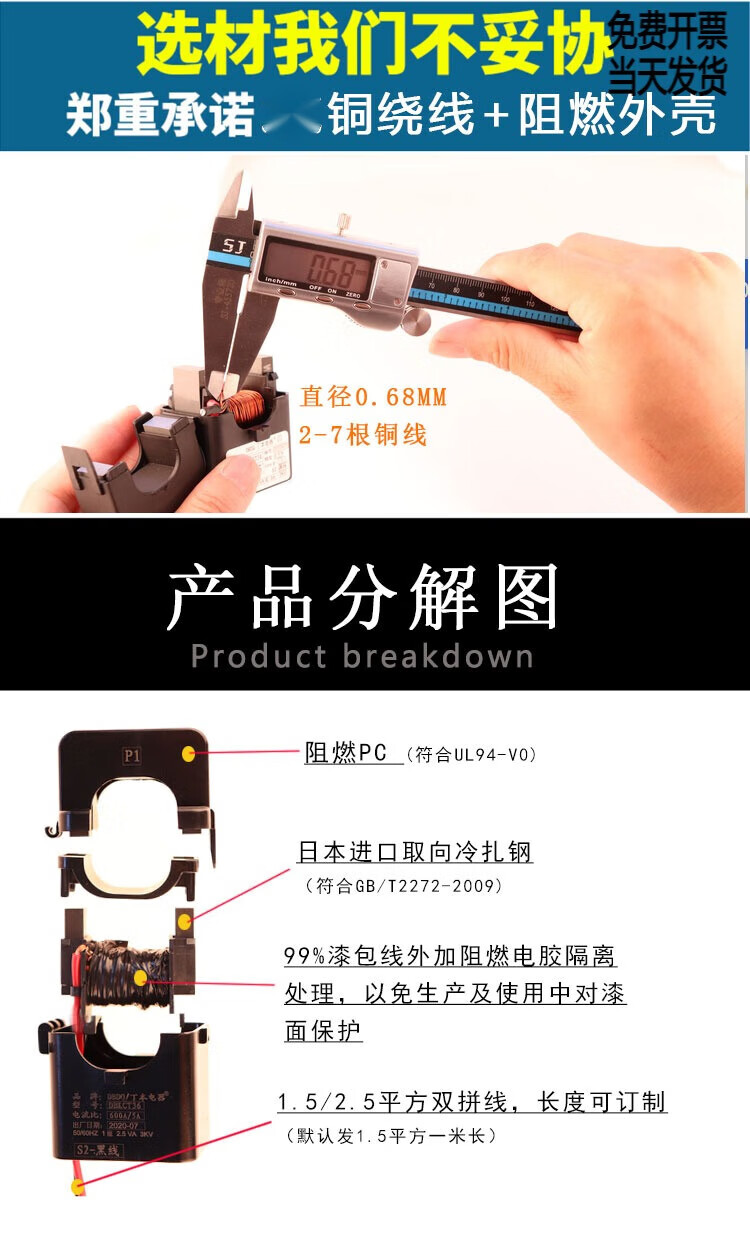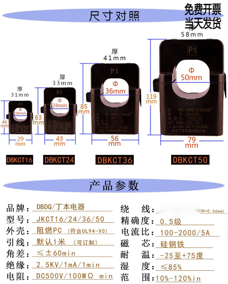 Dingben open type current transformer open and close type open card three-phase 0.5 level measurement DBKCT16/24/36 aperture 16mm-50/5