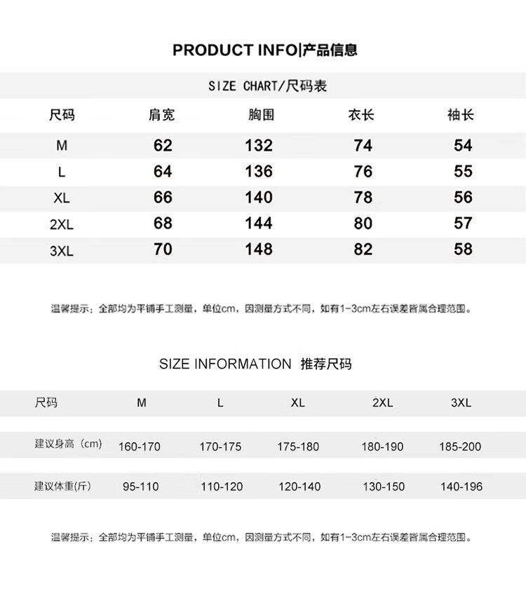 China (cm) 165 / 88-90 170 / 96-98 175 / 108-110 180 / 118-122 185 / 126-130