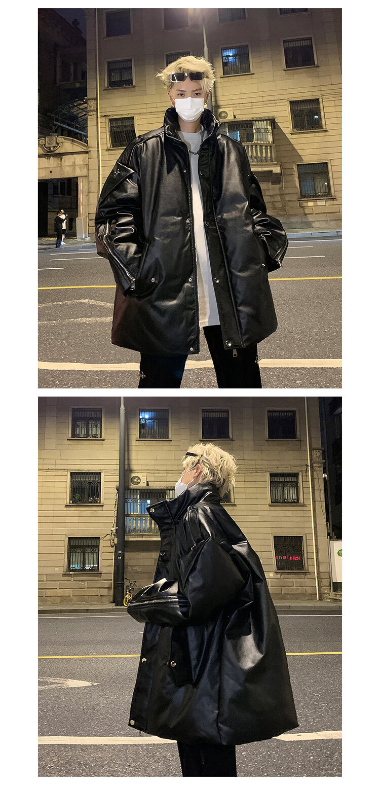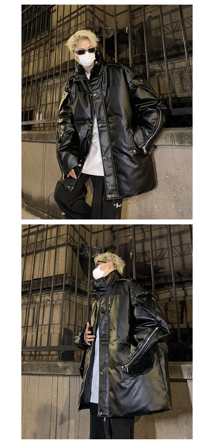 Zhiwei white PU leather cotton jacket men's winter American high street zipper design jacket oversize niche stand collar cotton jacket white 3XL recommended 140-196Jin Jin equals 0.5 kg