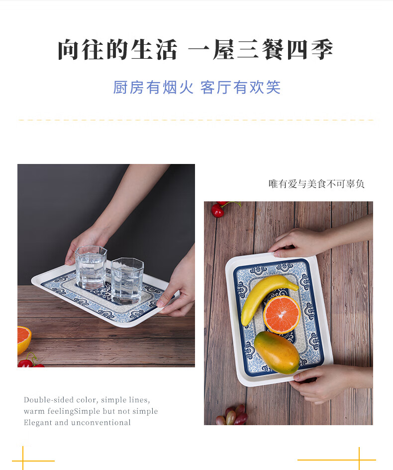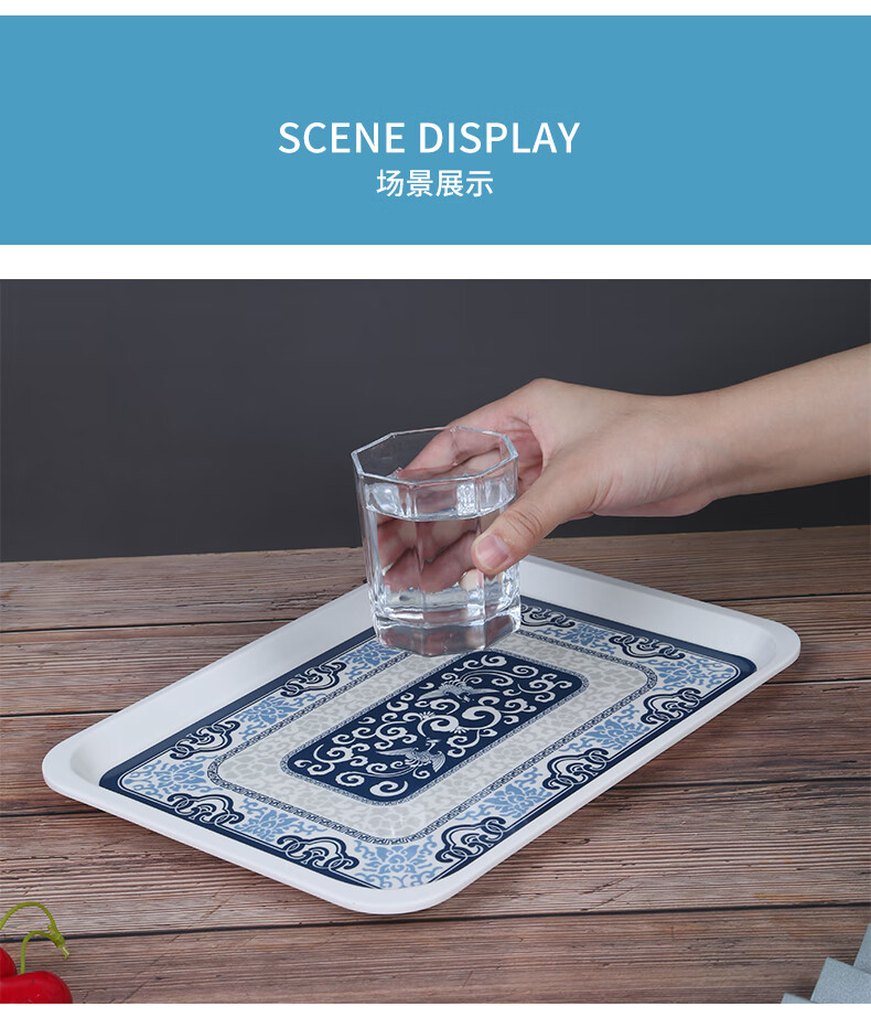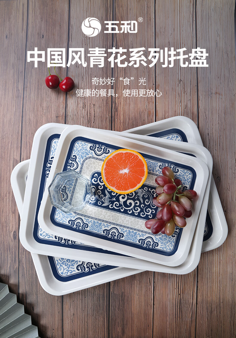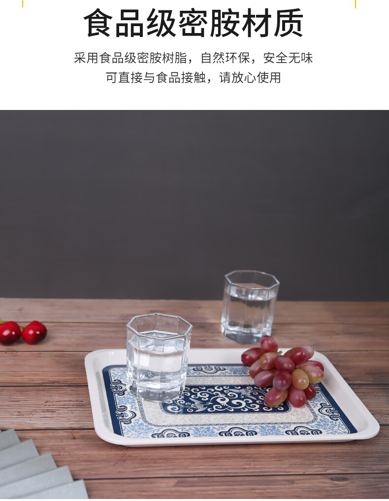 Wuhe (WUHE) household tray rectangular living room water cup tray tea tray Nordic cup tray melamine children's fruit tray blue and white tray (39.5*28.2*2.0 CM)