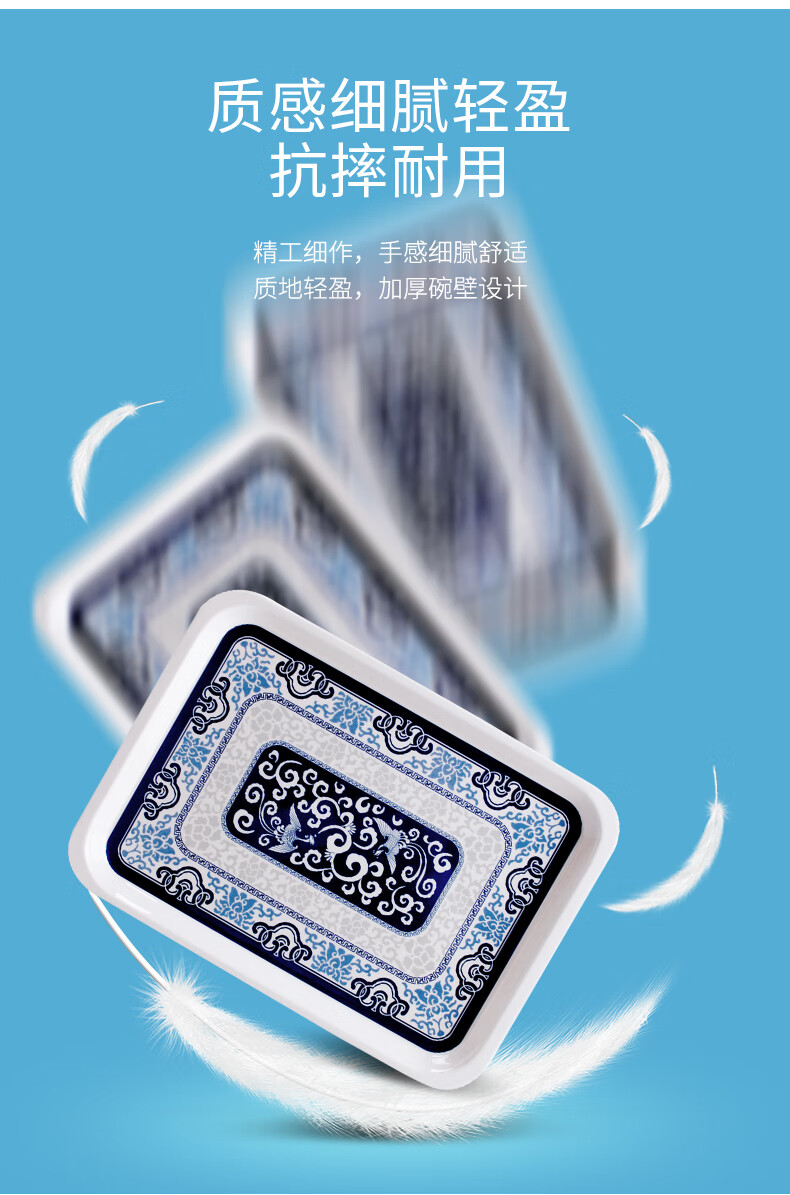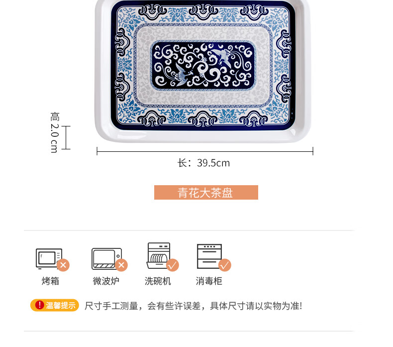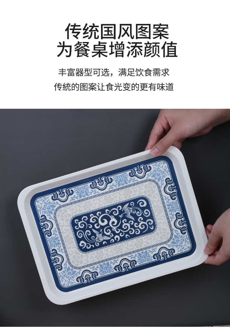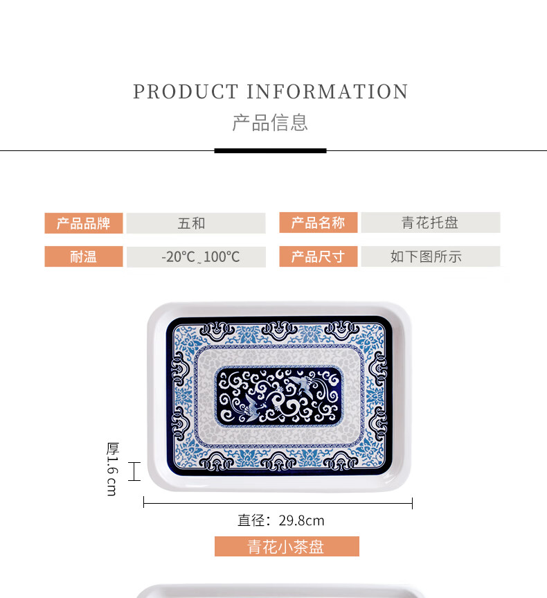 Wuhe (WUHE) household tray rectangular living room water cup tray tea tray Nordic cup tray melamine children's fruit tray blue and white tray (39.5*28.2*2.0 CM)